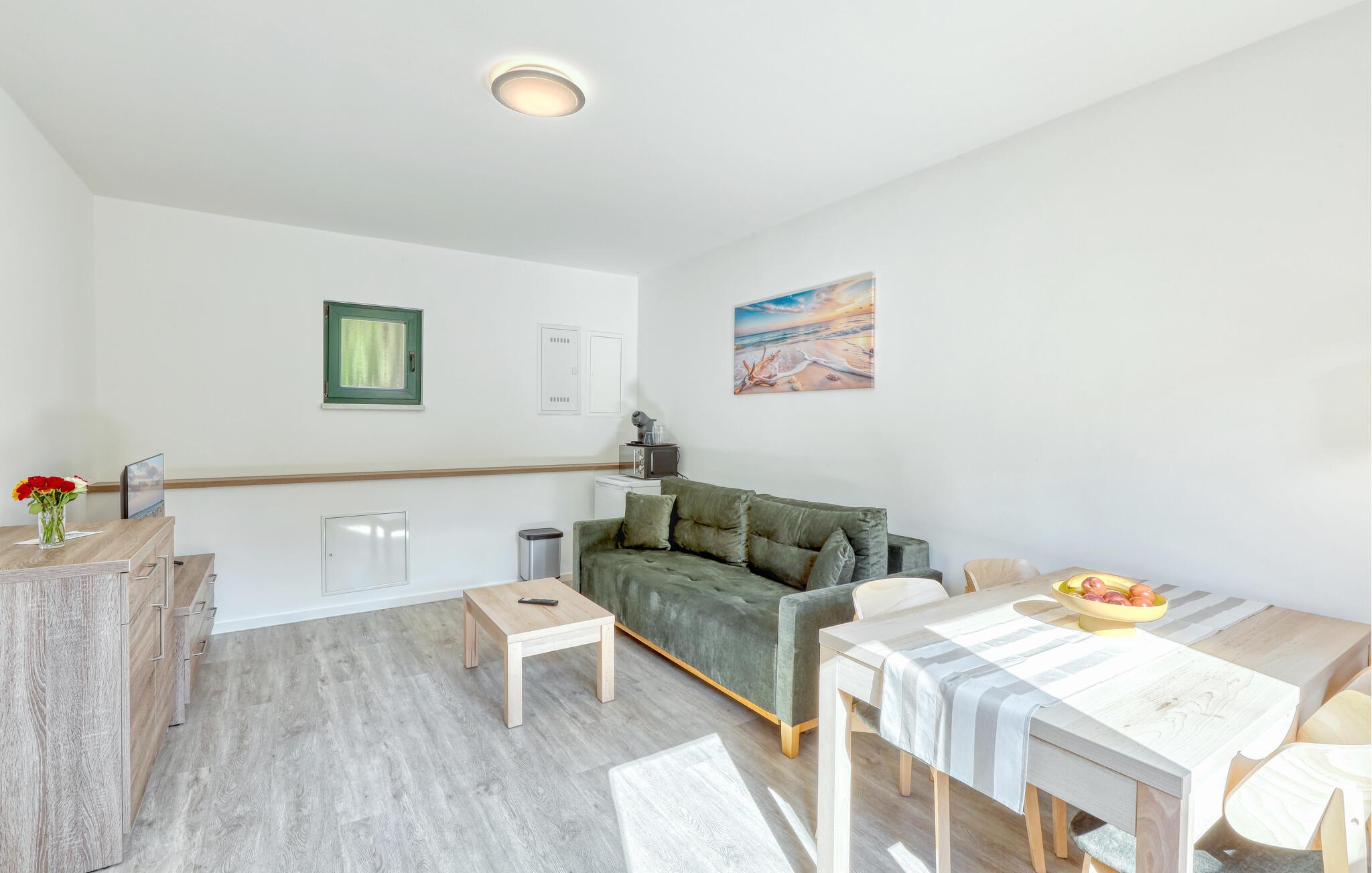 Der er lagt op til nogle fredfyldte dage i denne funktionelle og moderne lejlighed, der kun ligger et stenkast fra den smukke naturstrand. Feriekomplekset er smukt placeret mellem fyrreskov og klitter, ideelt til afslappende dage ved havet eller aktiv rekreation midt i naturen. Efter en begivenhedsrig dag kan I vende tilbage til de lyse værelser, sætte jer til rette i de komfortable siddepladser og snakke længe.