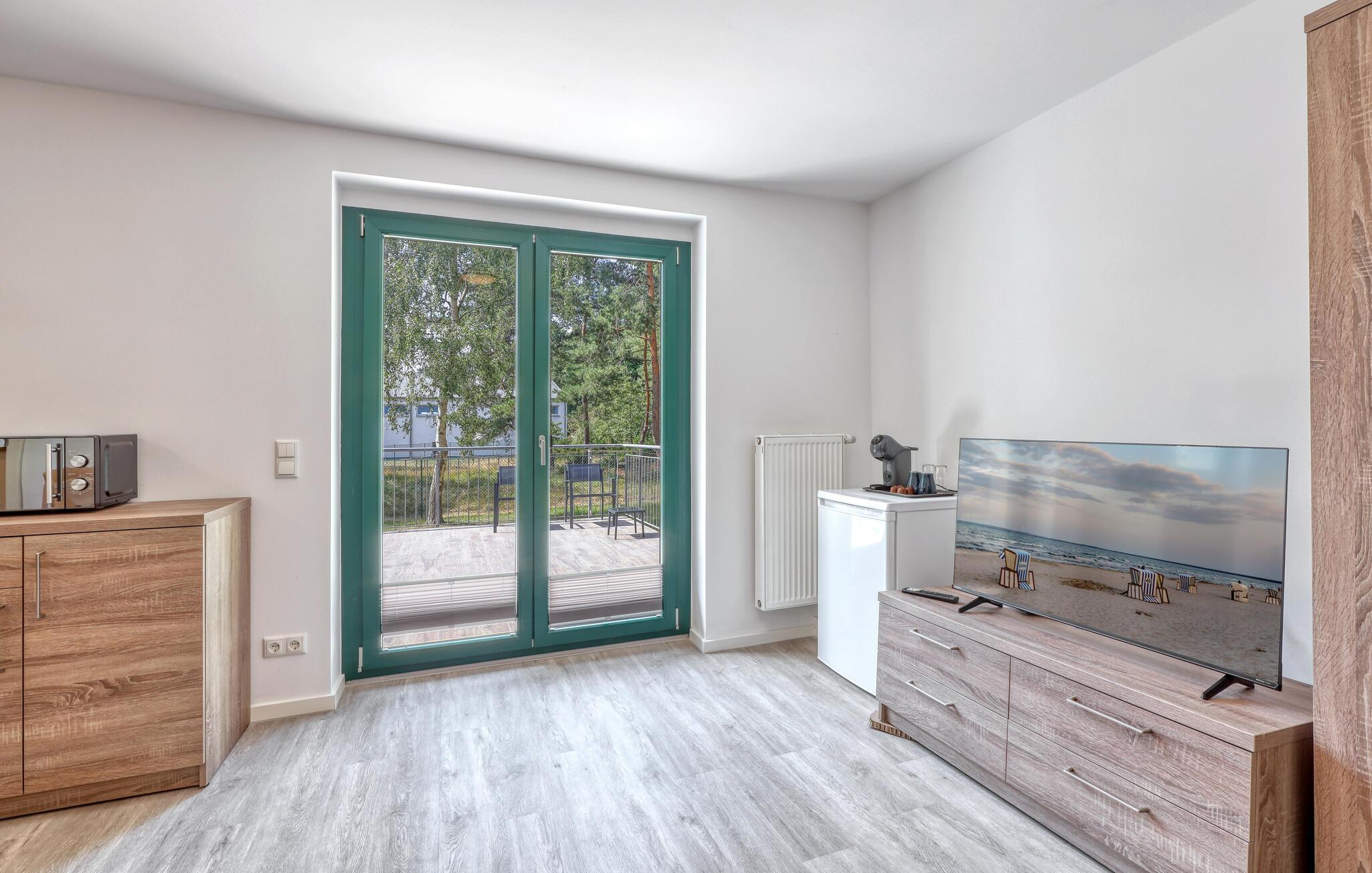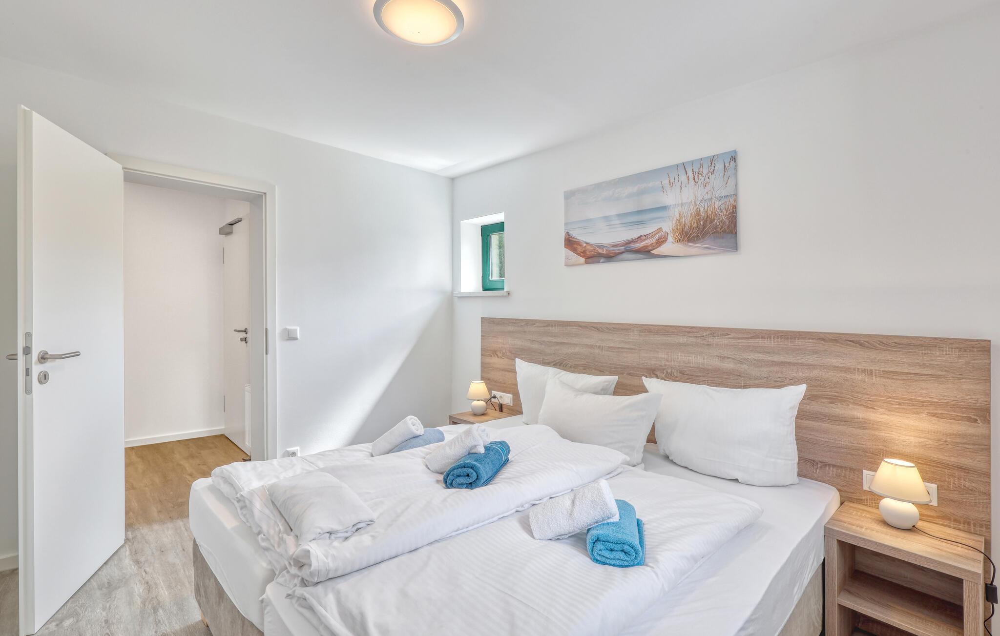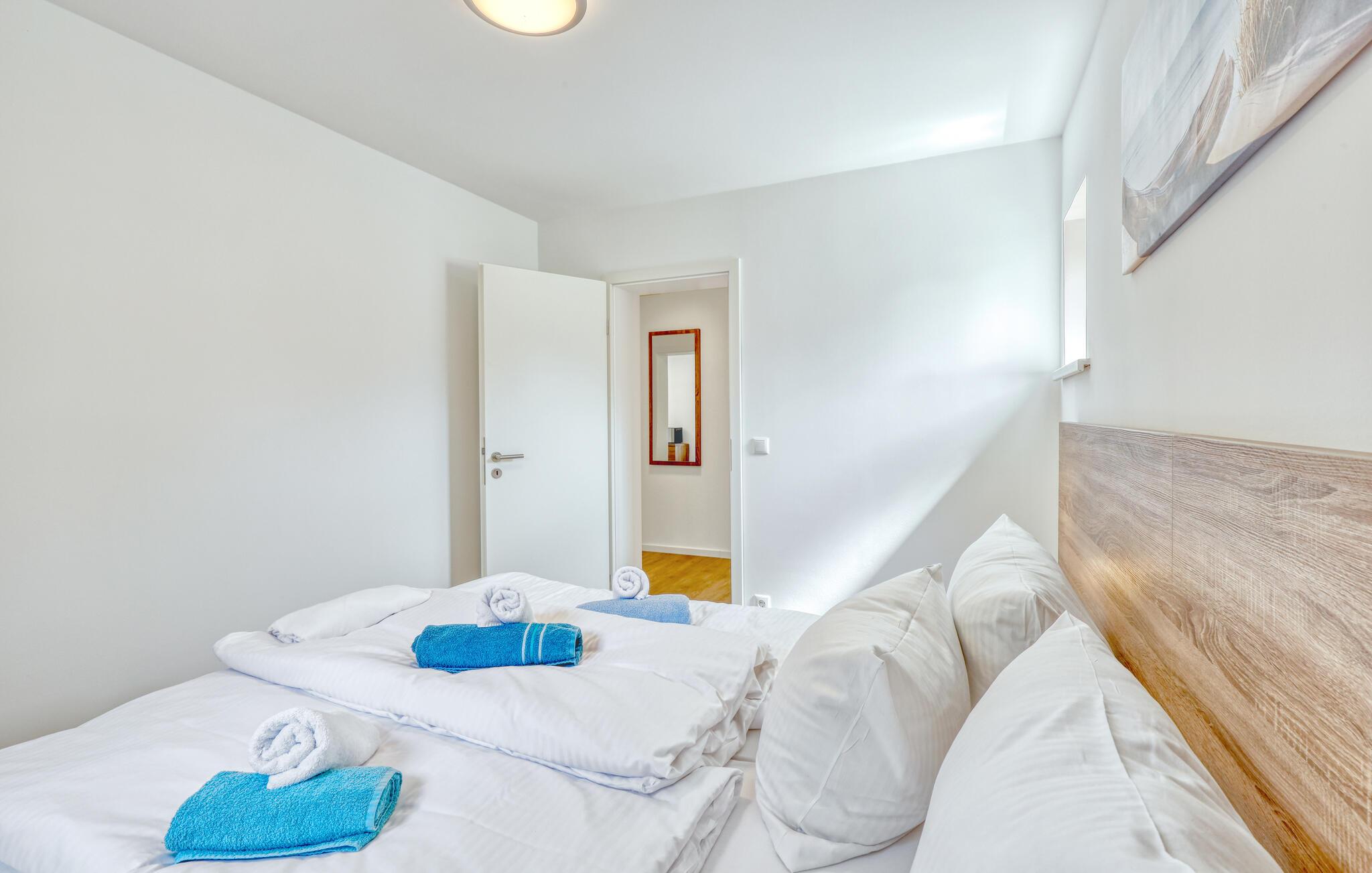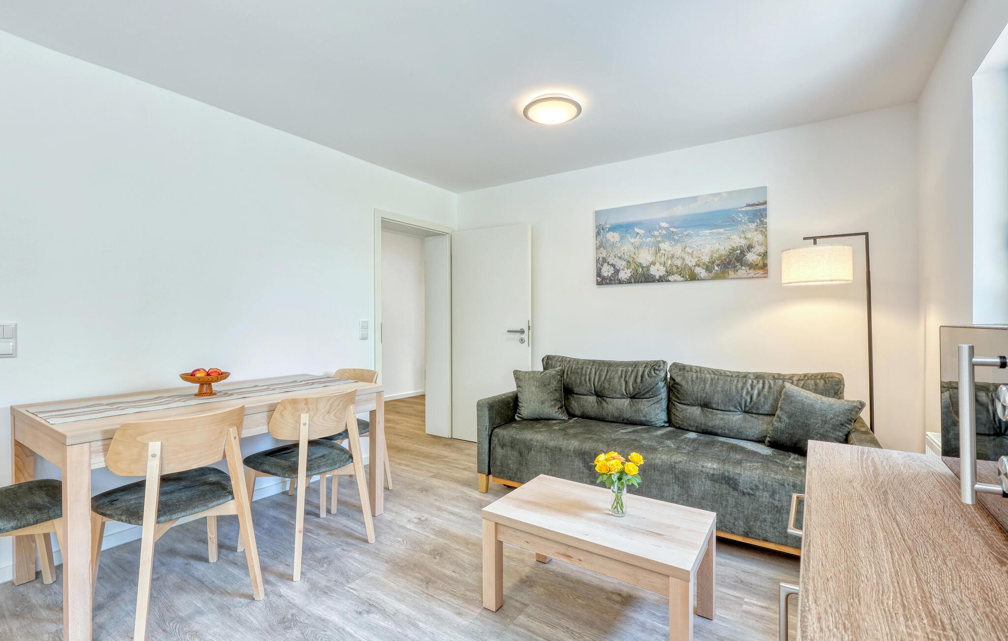 Der er lagt op til nogle fredfyldte dage i denne funktionelle og moderne lejlighed, der kun ligger et stenkast fra den smukke naturstrand. Feriekomplekset er smukt placeret mellem fyrreskov og klitter, ideelt til afslappende dage ved havet eller aktiv rekreation midt i naturen. Efter en begivenhedsrig dag kan I vende tilbage til de lyse værelser, gøre jer komfortabel i de komfortable siddepladser og snakke længe.
