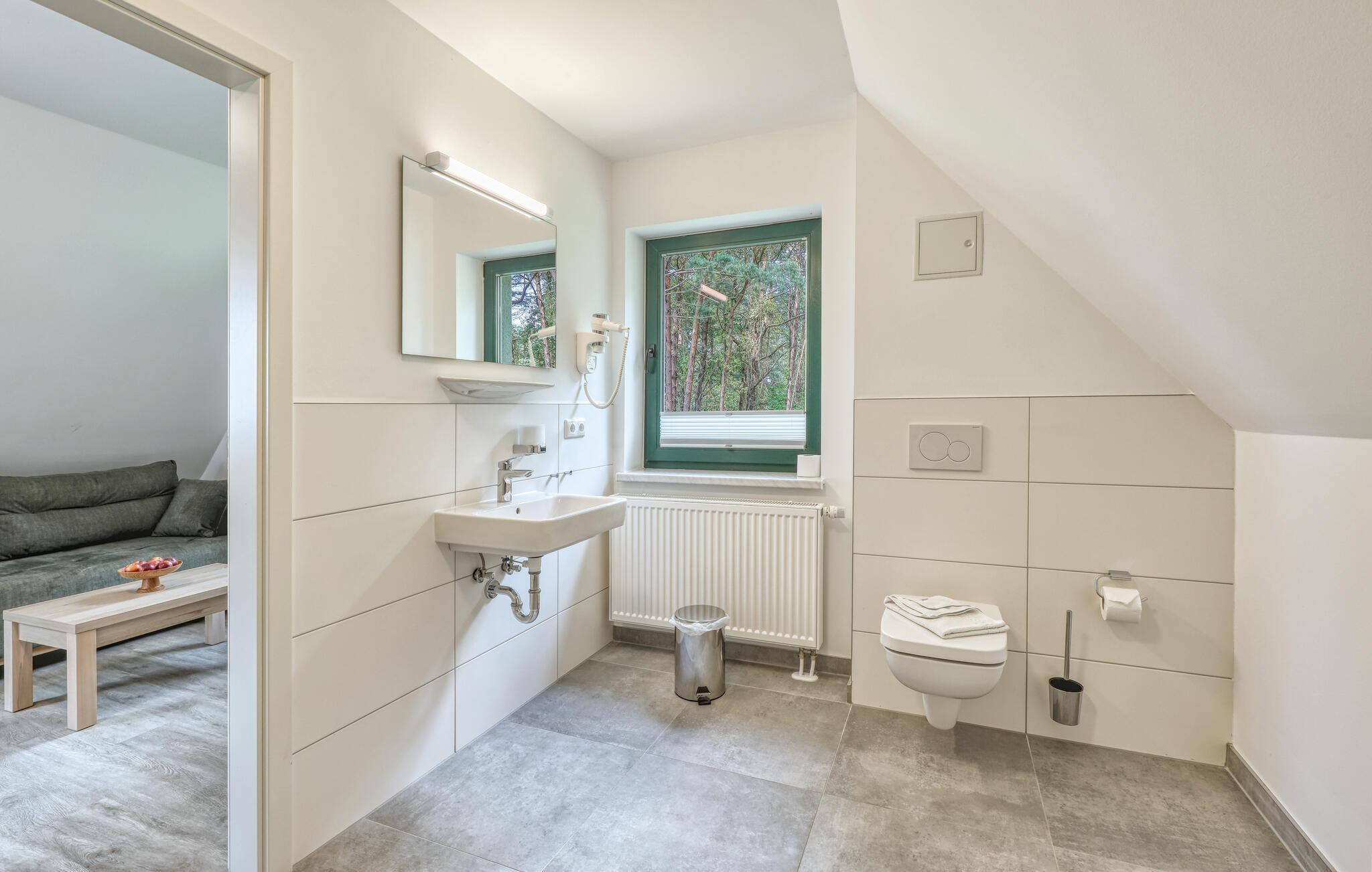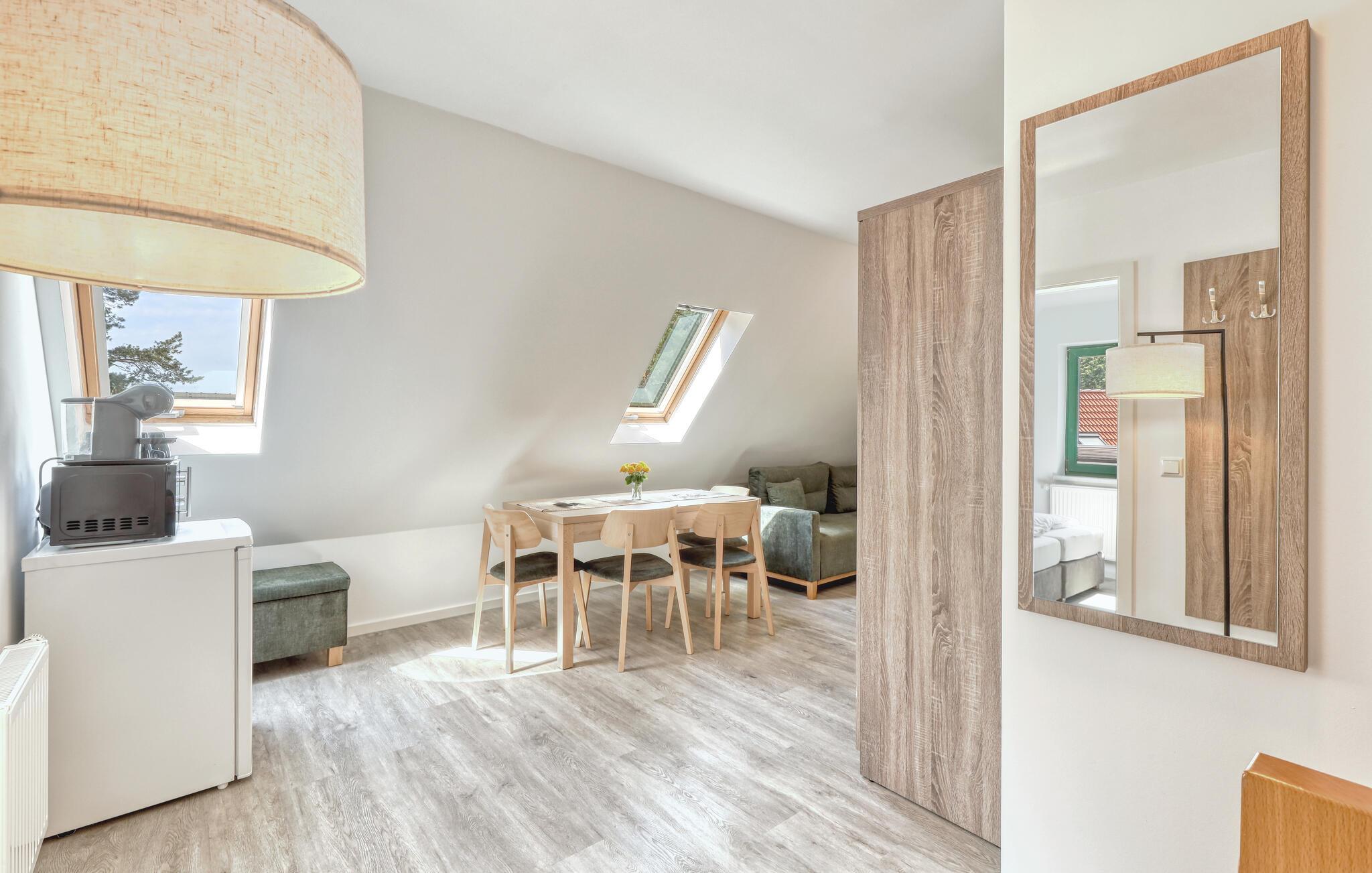 Der er lagt op til nogle fredfyldte dage i denne funktionelle og moderne lejlighed, der ligger nogle få skridt fra den smukke naturstrand. Her er der gode rammer til par, familier eller venner på tur. Feriekomplekset ligger idyllisk placeret mellem fyrreskove og klitter, ideelt til afslappende dage ved havet eller aktiv rekreation midt i naturen. Efter en begivenhedsrig dag kan I vende tilbage til de lyse rum, sætte jer til rette i de behagelige møbler og snakke længe.