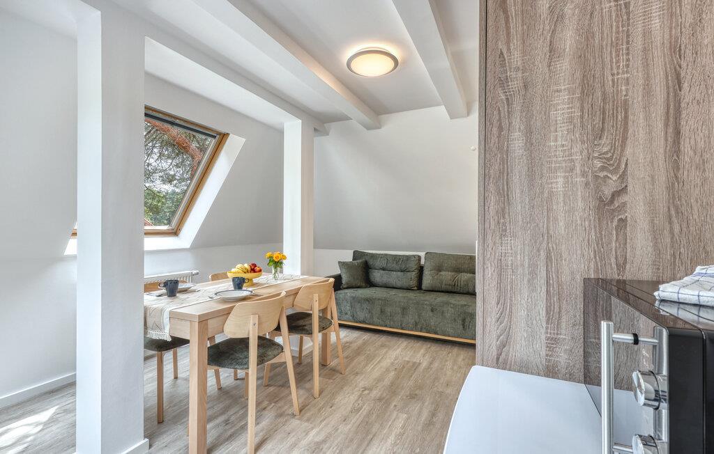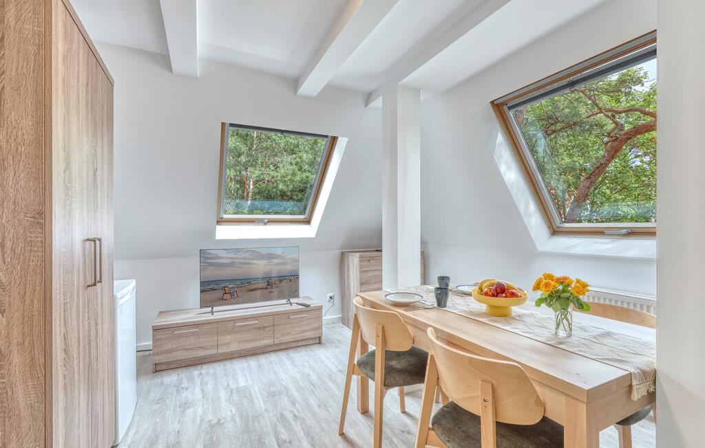 Der er lagt op til nogle fredfyldte dage i denne funktionelle og moderne lejlighed, der kun ligger et stenkast fra den smukke naturstrand. Feriekomplekset er smukt placeret mellem fyrreskov og klitter, ideelt til afslappende dage ved havet eller aktiv rekreation midt i naturen. Efter en begivenhedsrig dag kan I vende tilbage til de lyse værelser, sætte jer til rette i de komfortable siddepladser og snakke længe.