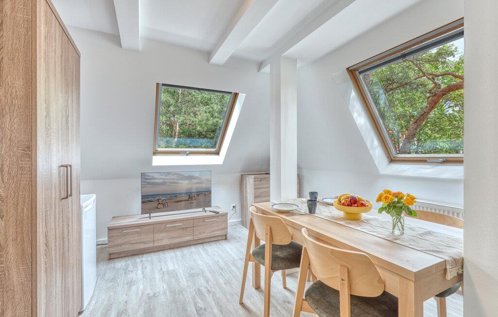 Der er lagt op til nogle fredfyldte dage i denne funktionelle og moderne lejlighed, der kun ligger et stenkast fra den smukke naturstrand. Feriekomplekset er smukt placeret mellem fyrreskov og klitter, ideelt til afslappende dage ved havet eller aktiv rekreation midt i naturen. Efter en begivenhedsrig dag kan I vende tilbage til de lyse værelser, sætte jer til rette i de komfortable siddepladser og snakke længe.