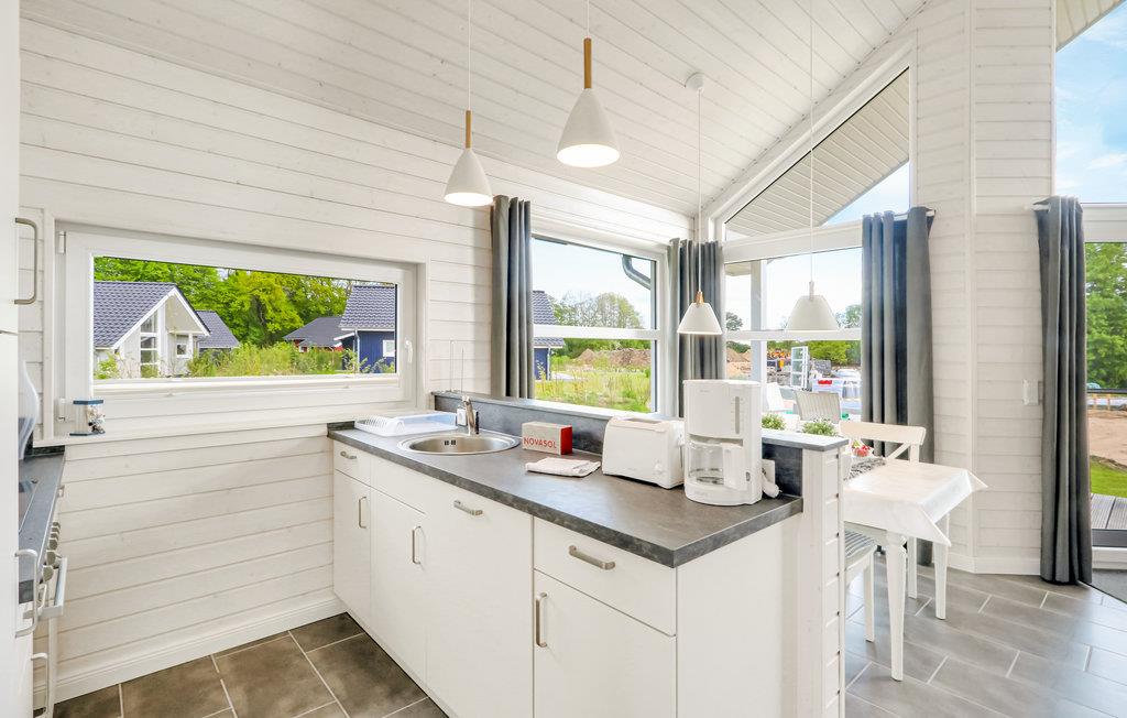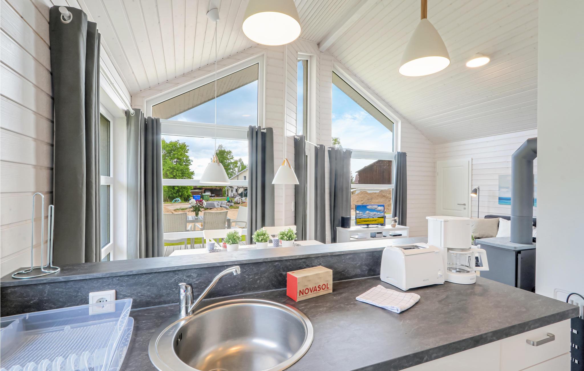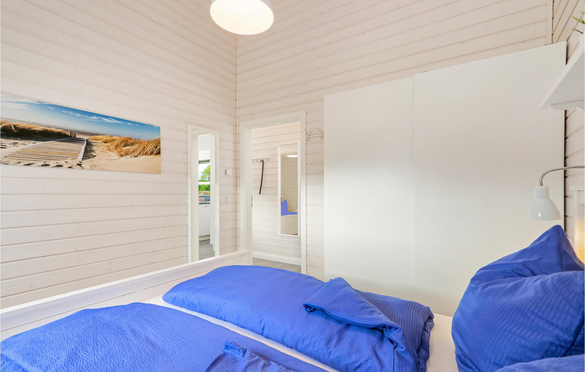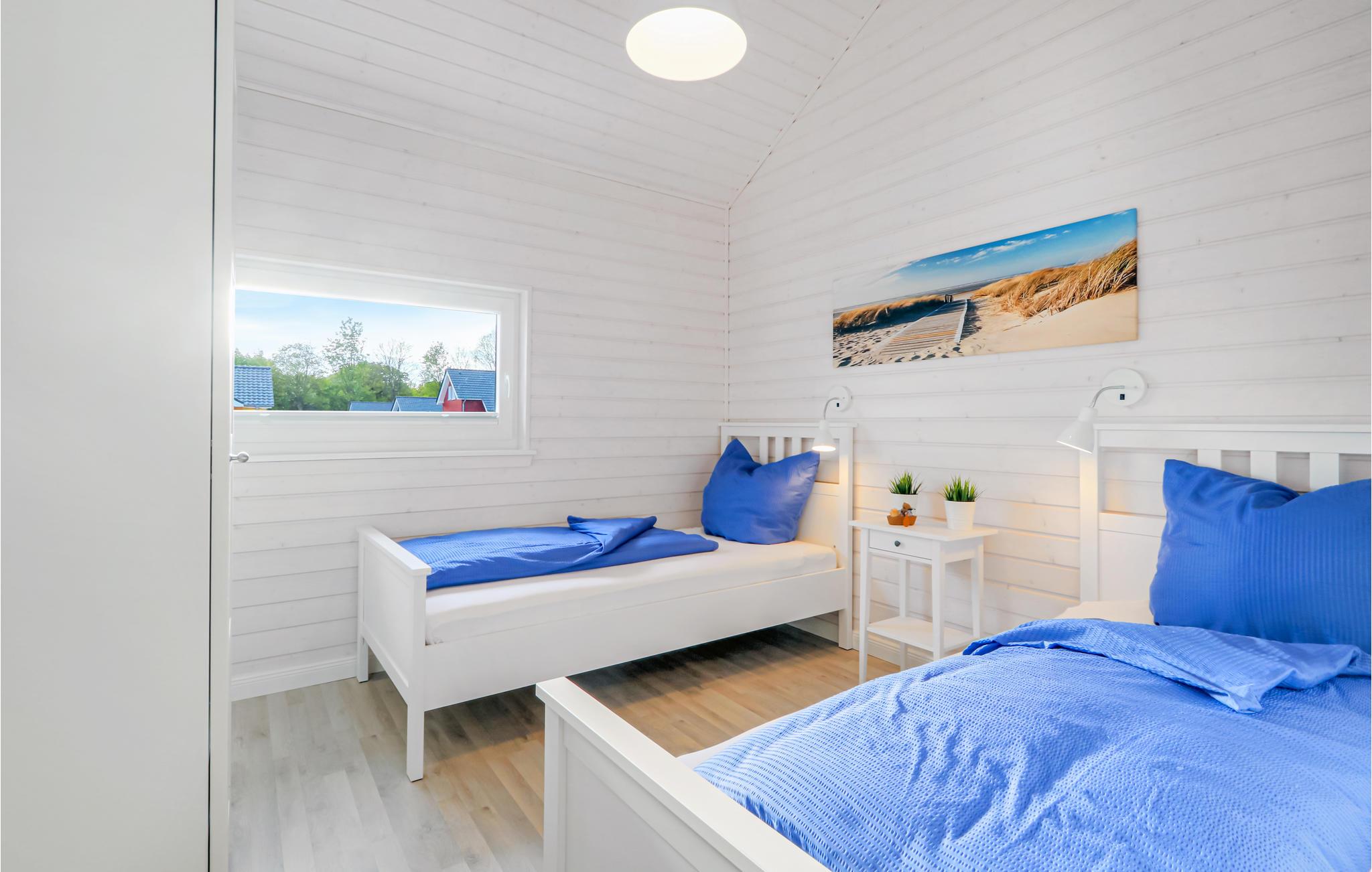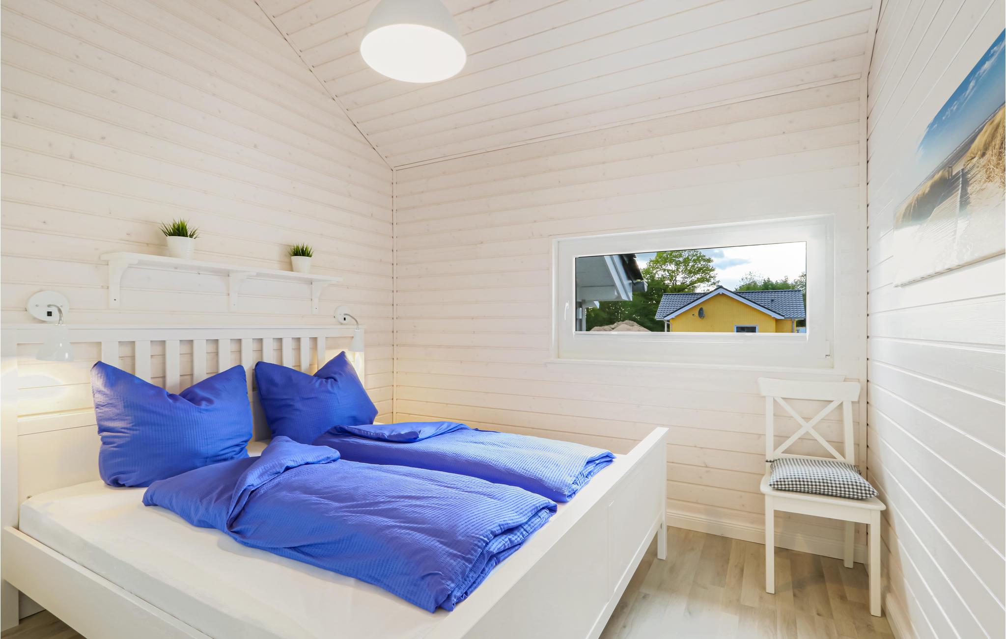 Dette moderne feriehus af træ Waldliebe giver god plads til fire voksne. Her er loft til kip og store vinduer, der giver en rummelig og lys atmosfære. Den maritime indretning i lyse farver bidrager også til den hyggelige stemning.
