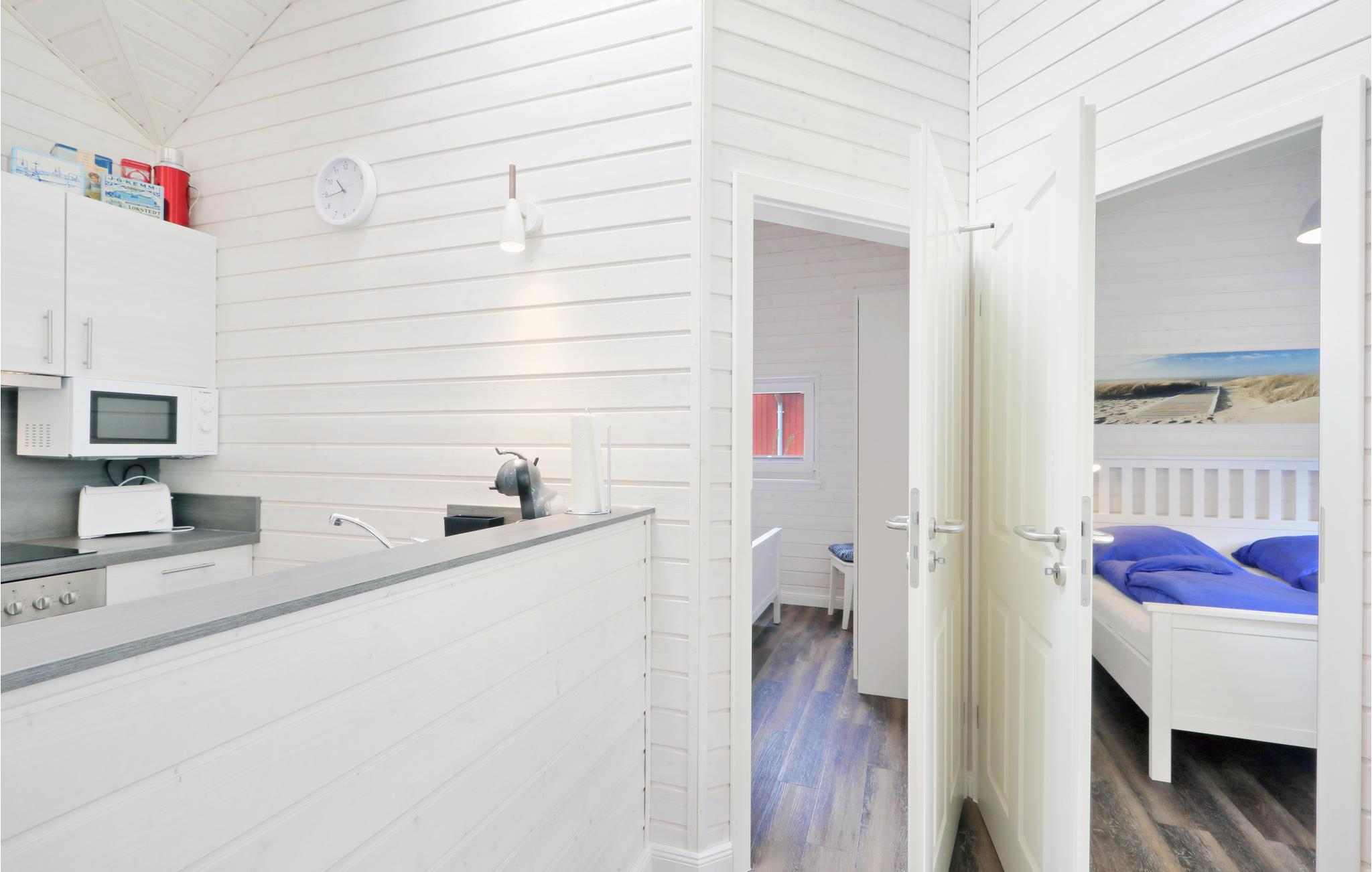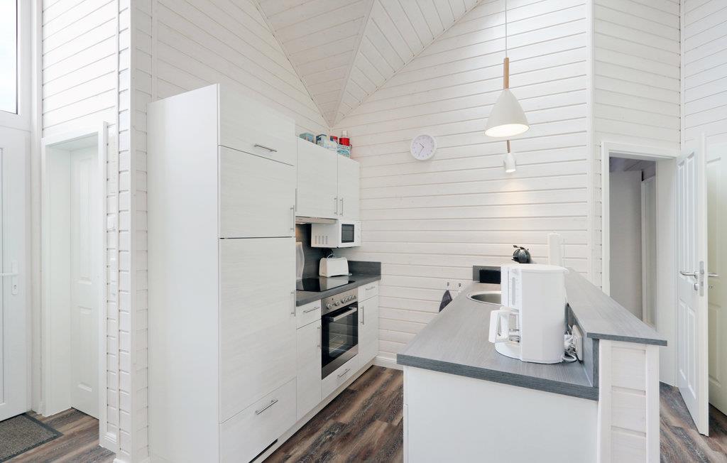 Dette moderne feriehus af træ 'Seezauber' giver god plads til seks voksne og et lille barn. Her er loft til kip og store vinduer, der giver en rummelig og lys atmodsfære.