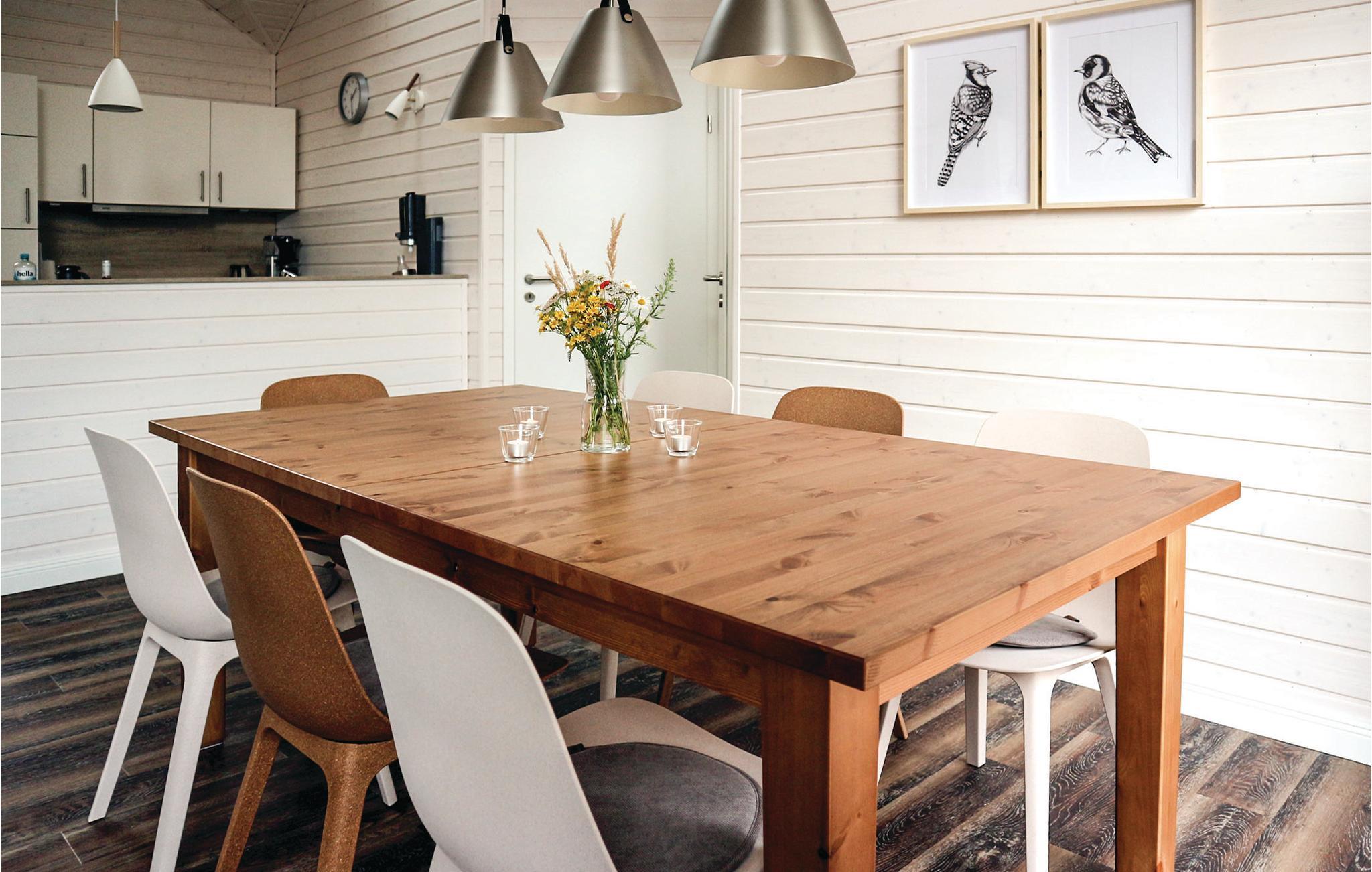Du kan slappe dejligt af på den rummelige terrasse og spise morgenmad med hele familien. På regnfulde dage kan du varme dig i saunaen og derefter gøre dig godt tilpas foran pejsen i opholdsstuen.