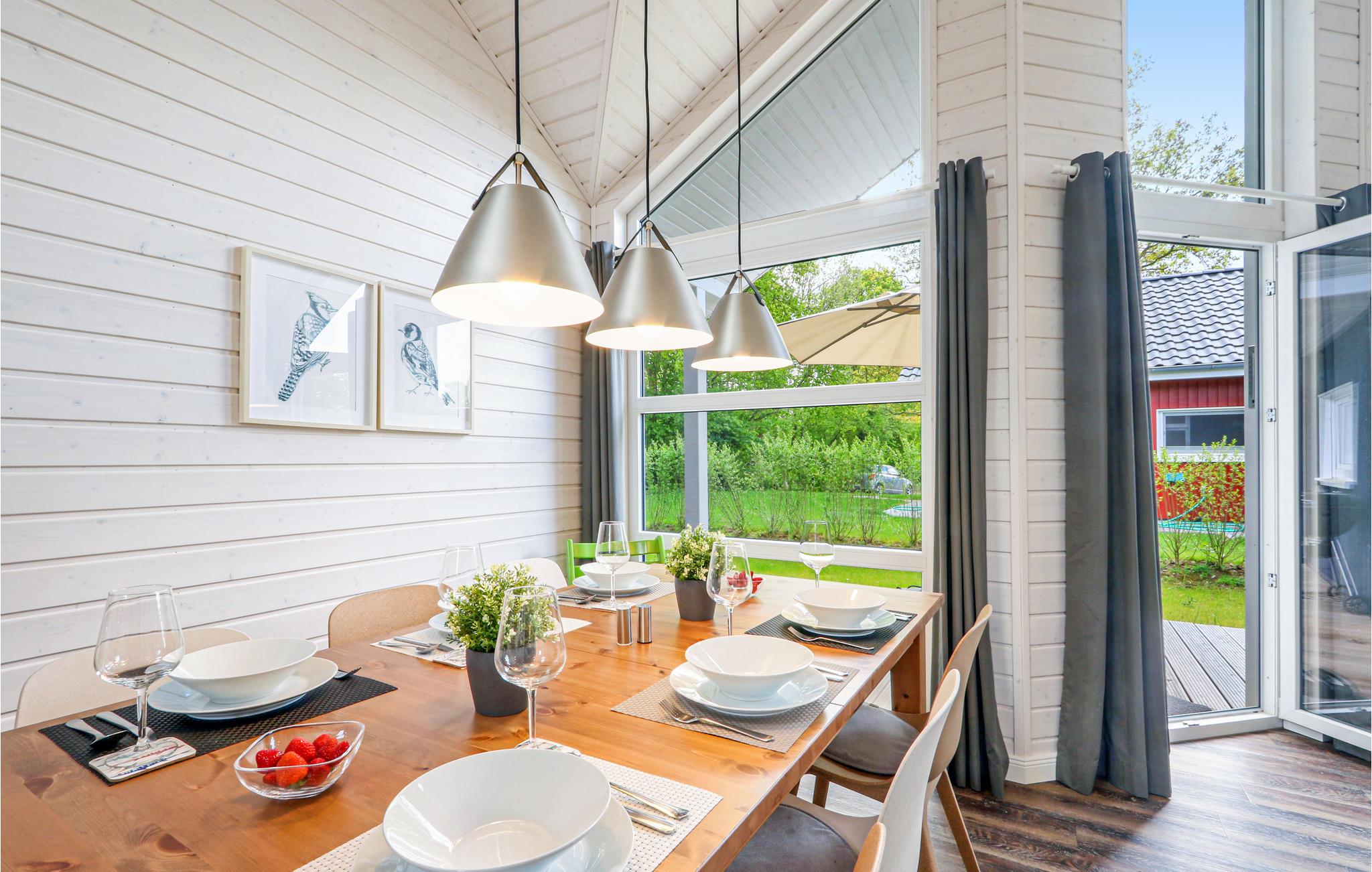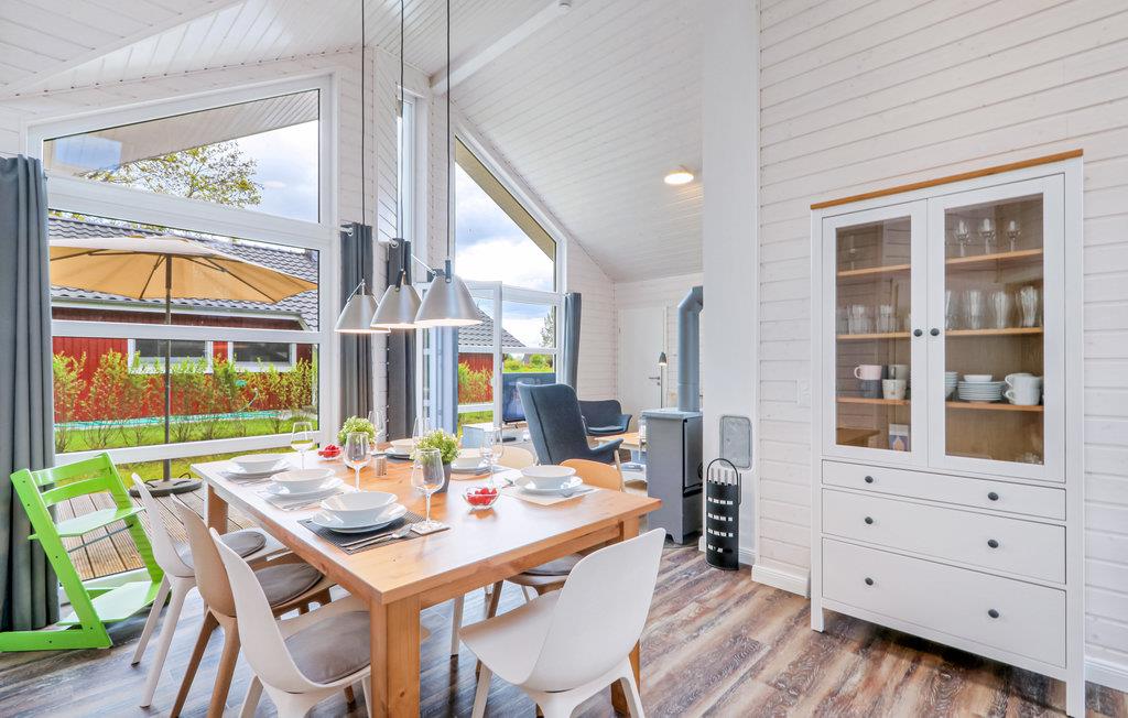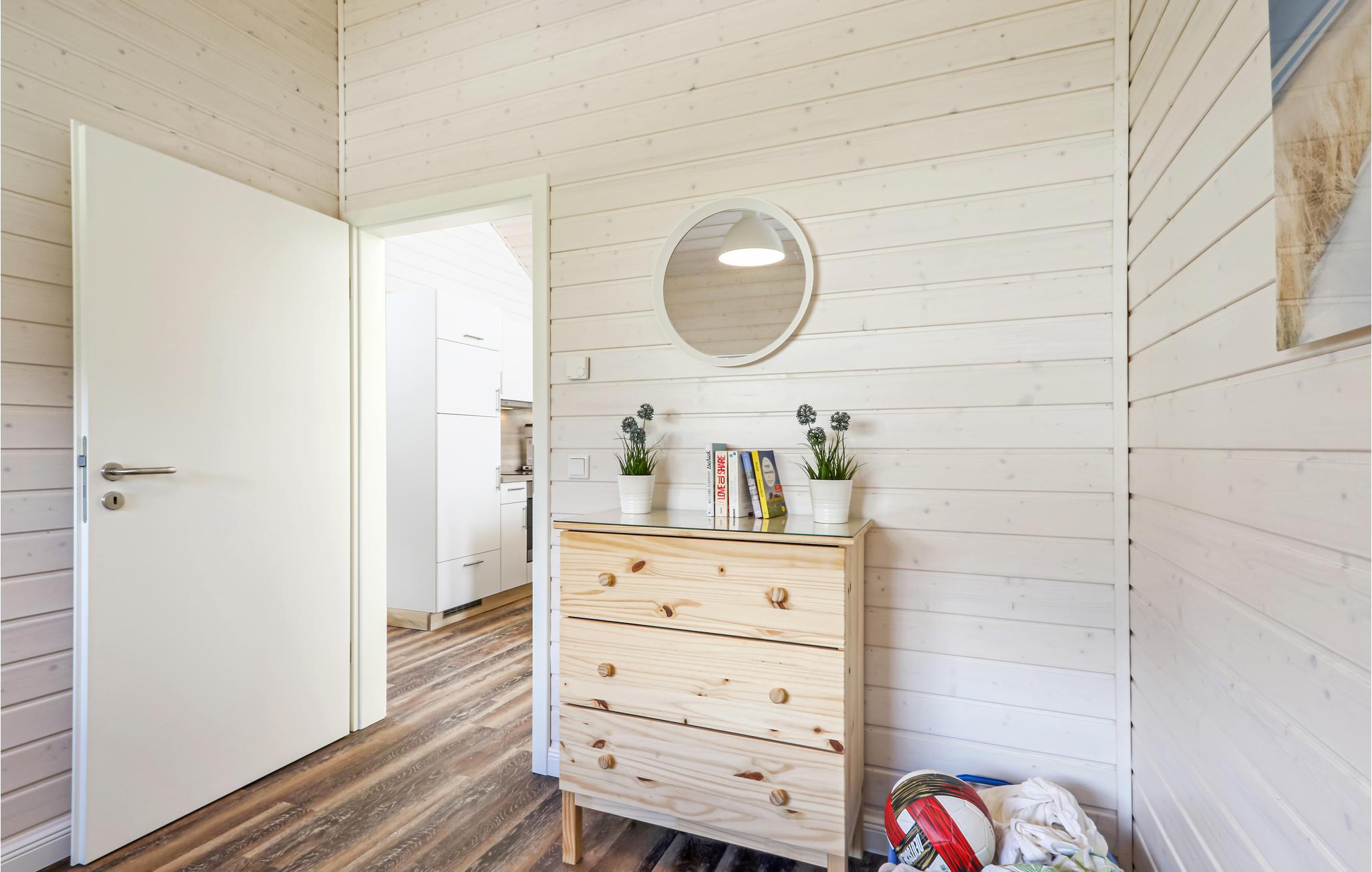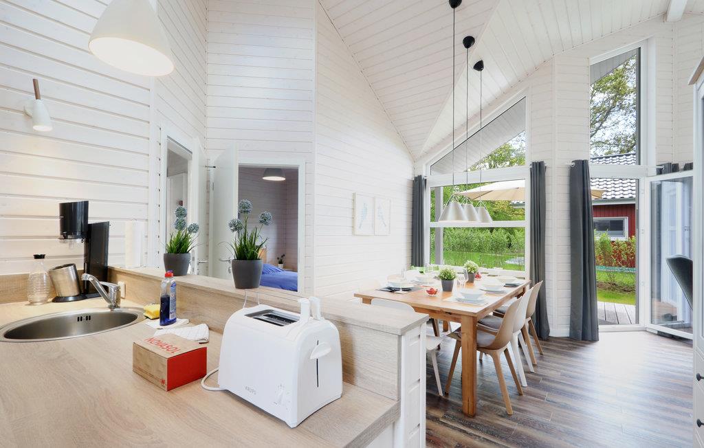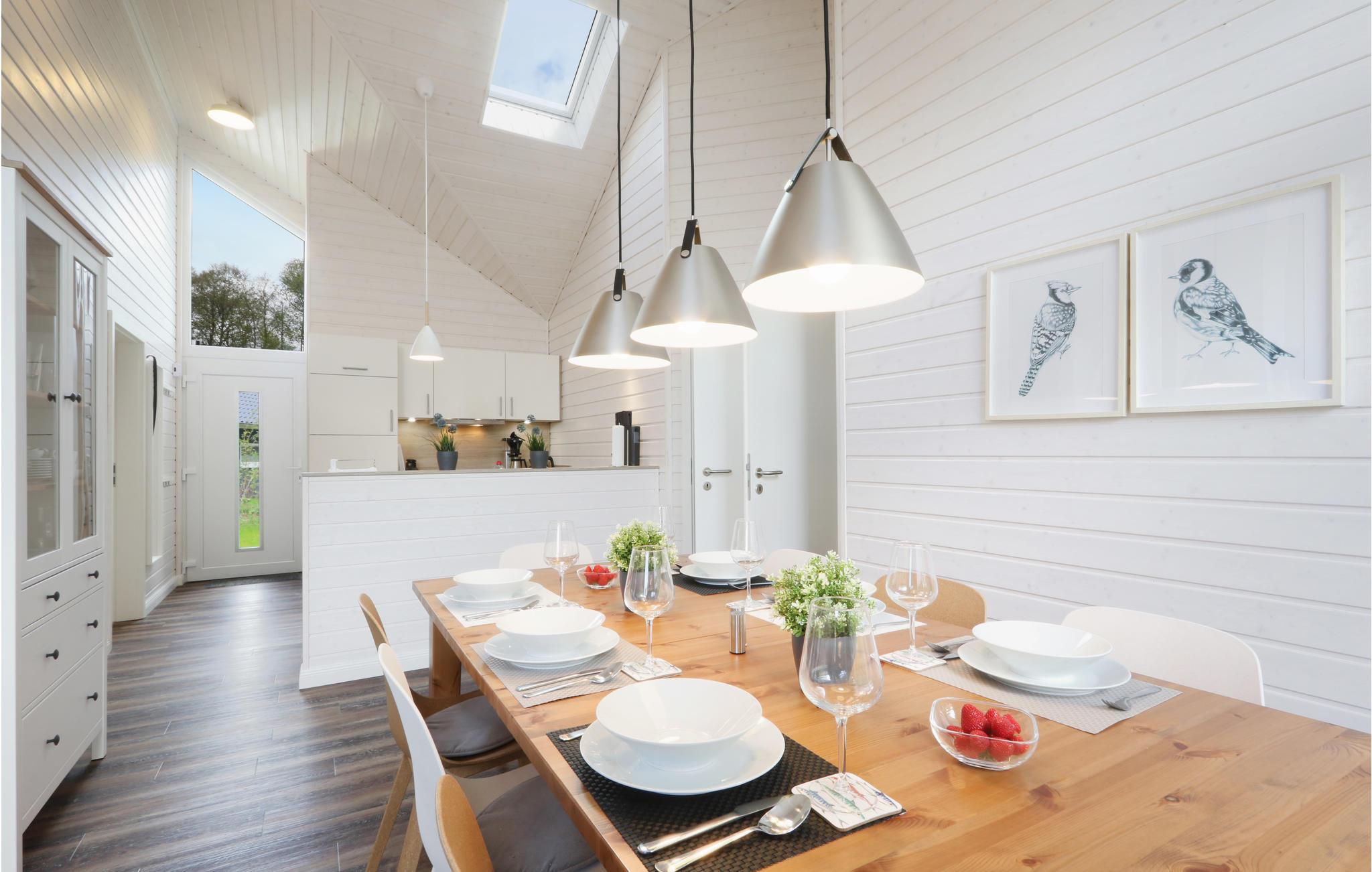 Det moderne træhus "Seezauber" imponerer med sin skandinaviske stil og byder på plads nok til 6 voksne og 2 børn. På grund af det første høje åbne loft kan du nyde en behagelig rumfornemmelse og lyse rum. Den maritime indretning i lyse toner bidrager til hyggen.