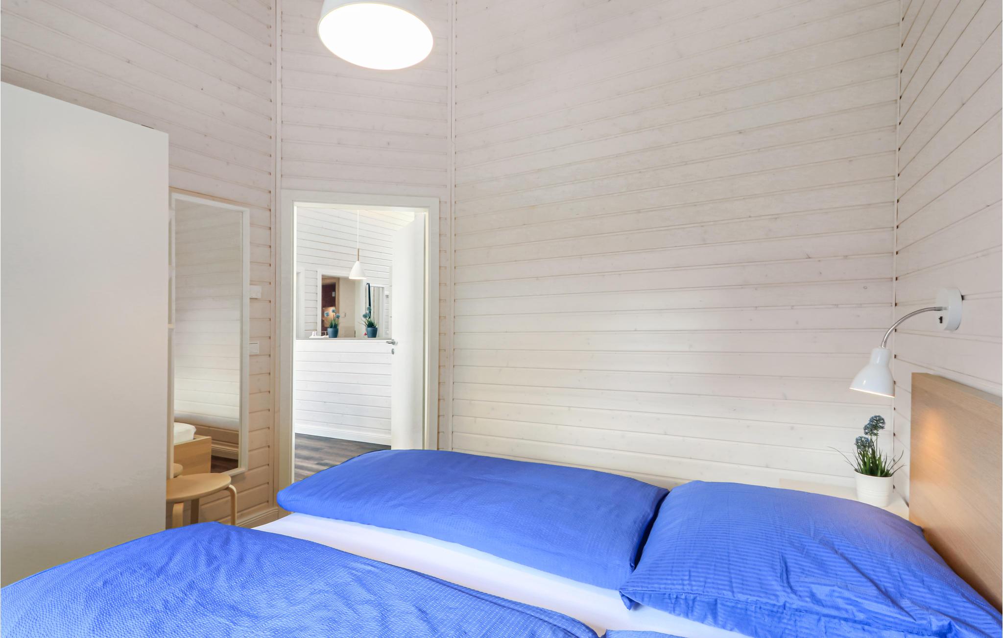 Det første soveværelse er indrettet med en dobbeltseng, det andet soveværelse har en dobbeltseng, der kan trækkes fra hinanden til to enkeltsenge. I det tredje soveværelse er der to enkeltsenge, som også kan stables til engangsbrug. Der er også en sovesofa til rådighed i stuen.