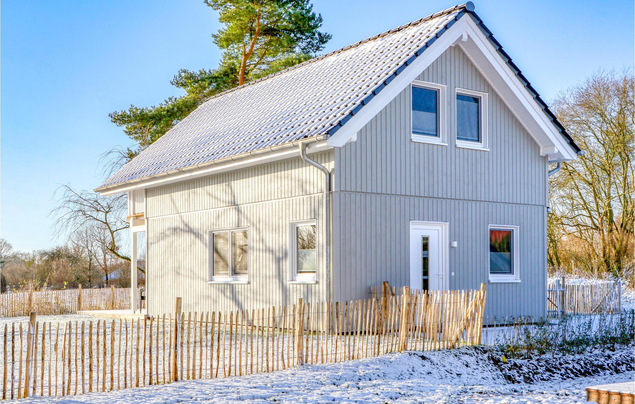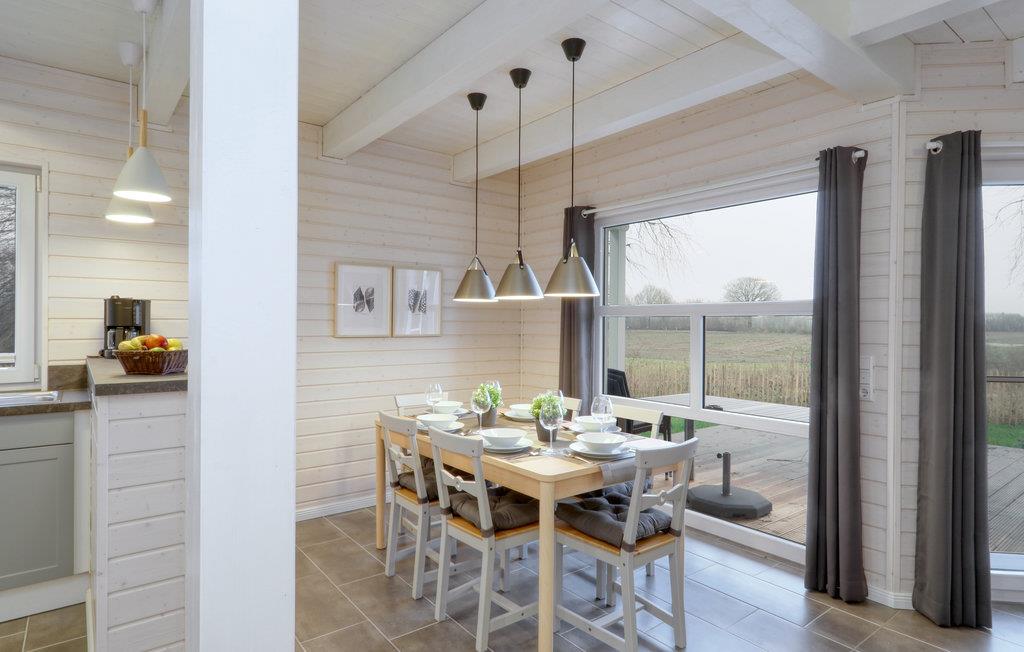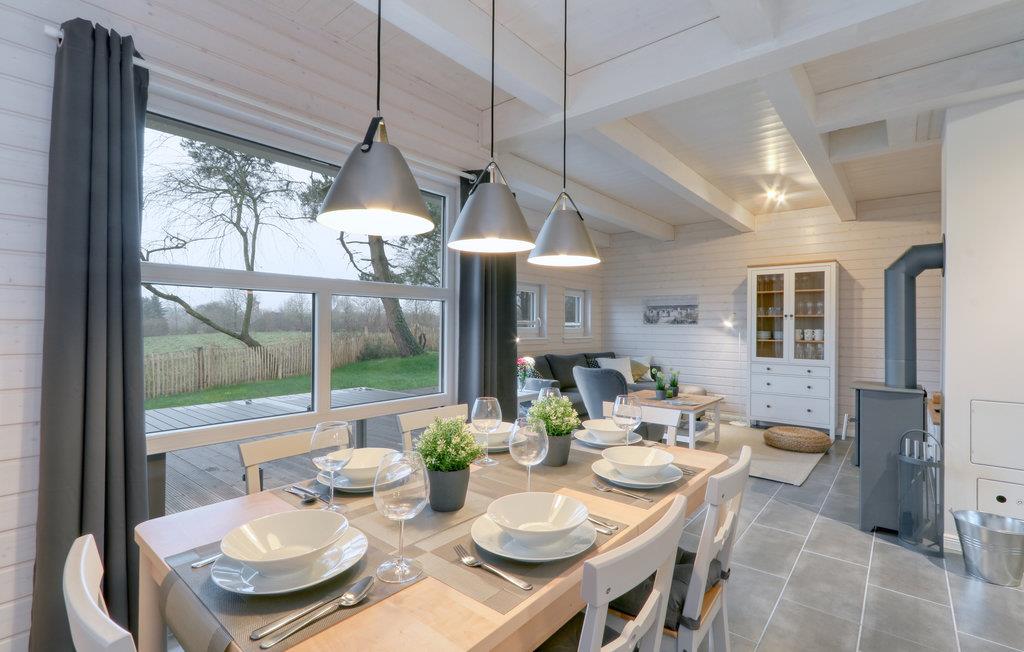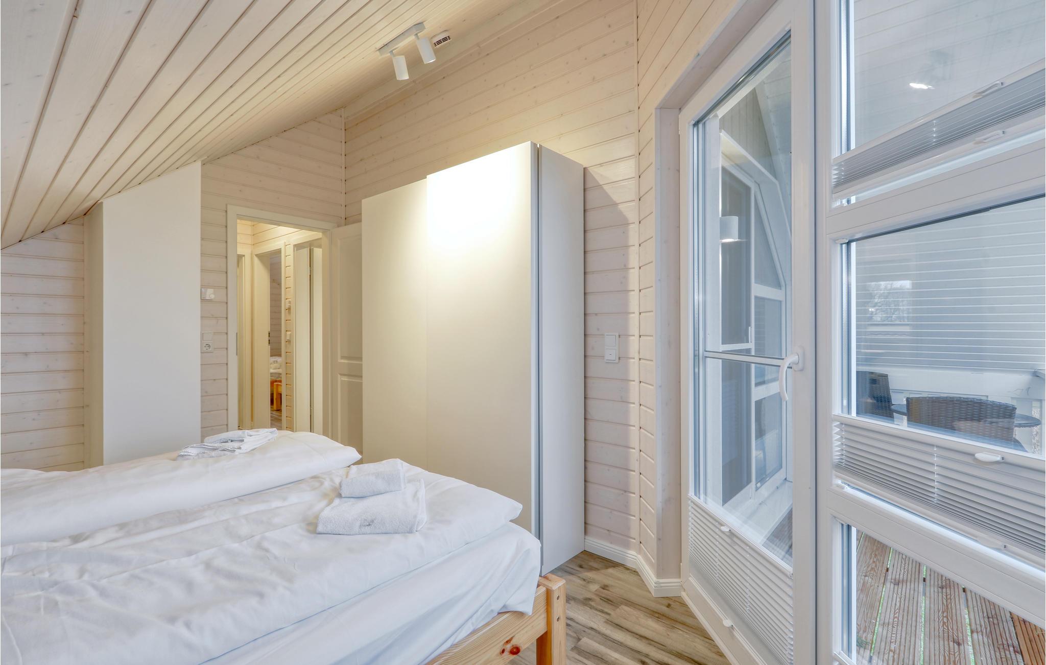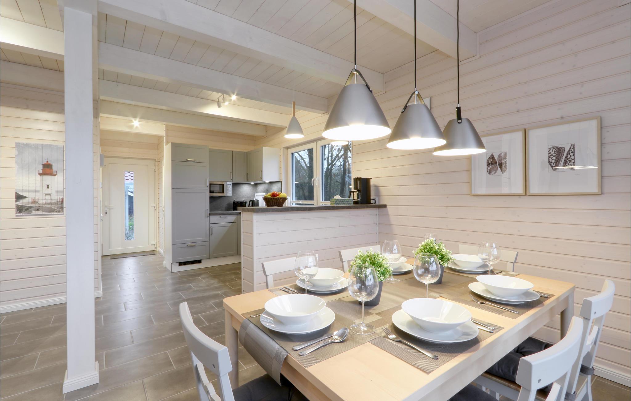 Dette moderne feriehus af træ Waldliebe giver god plads til otte voksne og et børn. Her er loft til kip og store vinduer, der giver en rummelig og lys atmosfære. Den maritime indretning i lyse farver bidrager også til den hyggelige stemning.