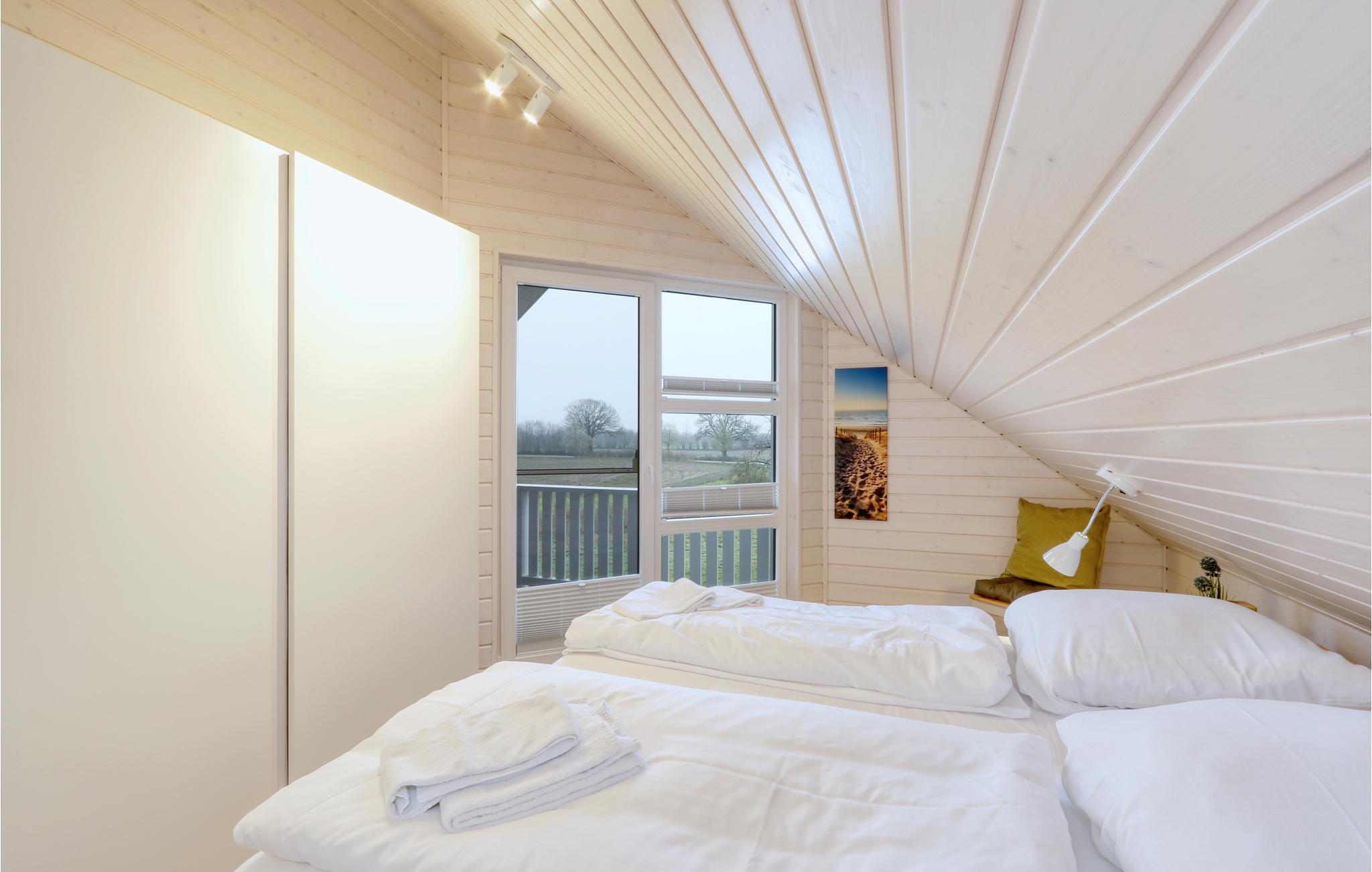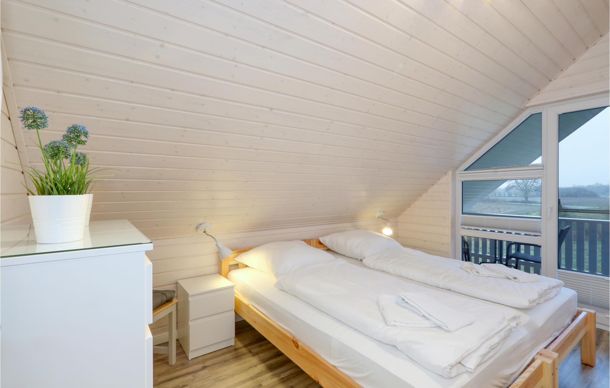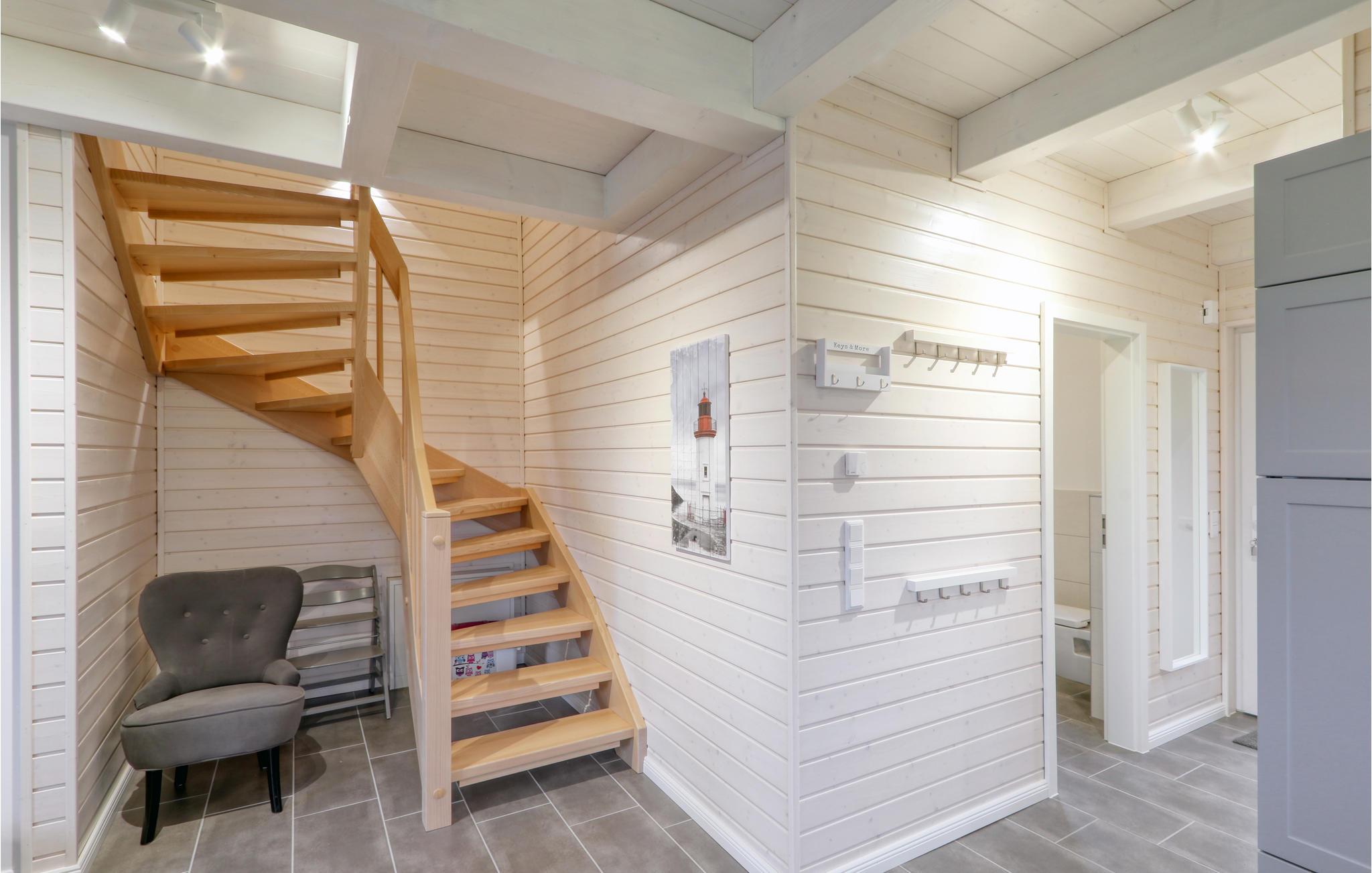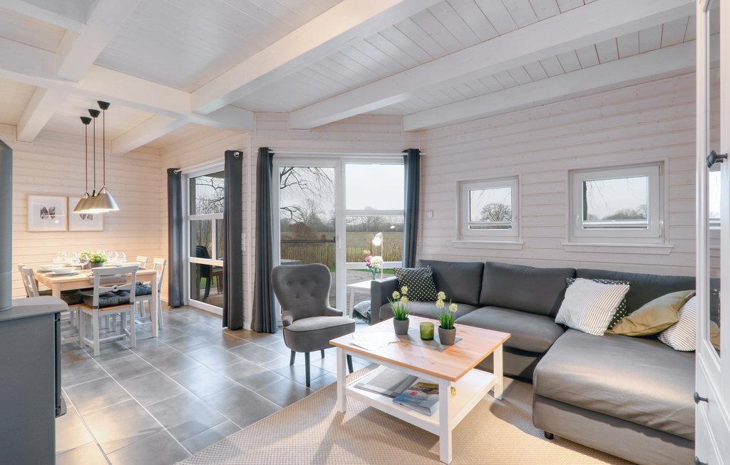 Dette moderne feriehus af træ Waldliebe giver god plads til otte voksne og et børn. Her er loft til kip og store vinduer, der giver en rummelig og lys atmosfære. Den maritime indretning i lyse farver bidrager også til den hyggelige stemning.