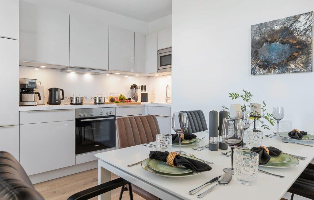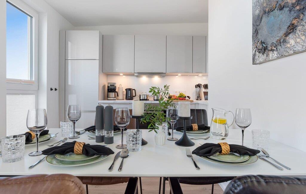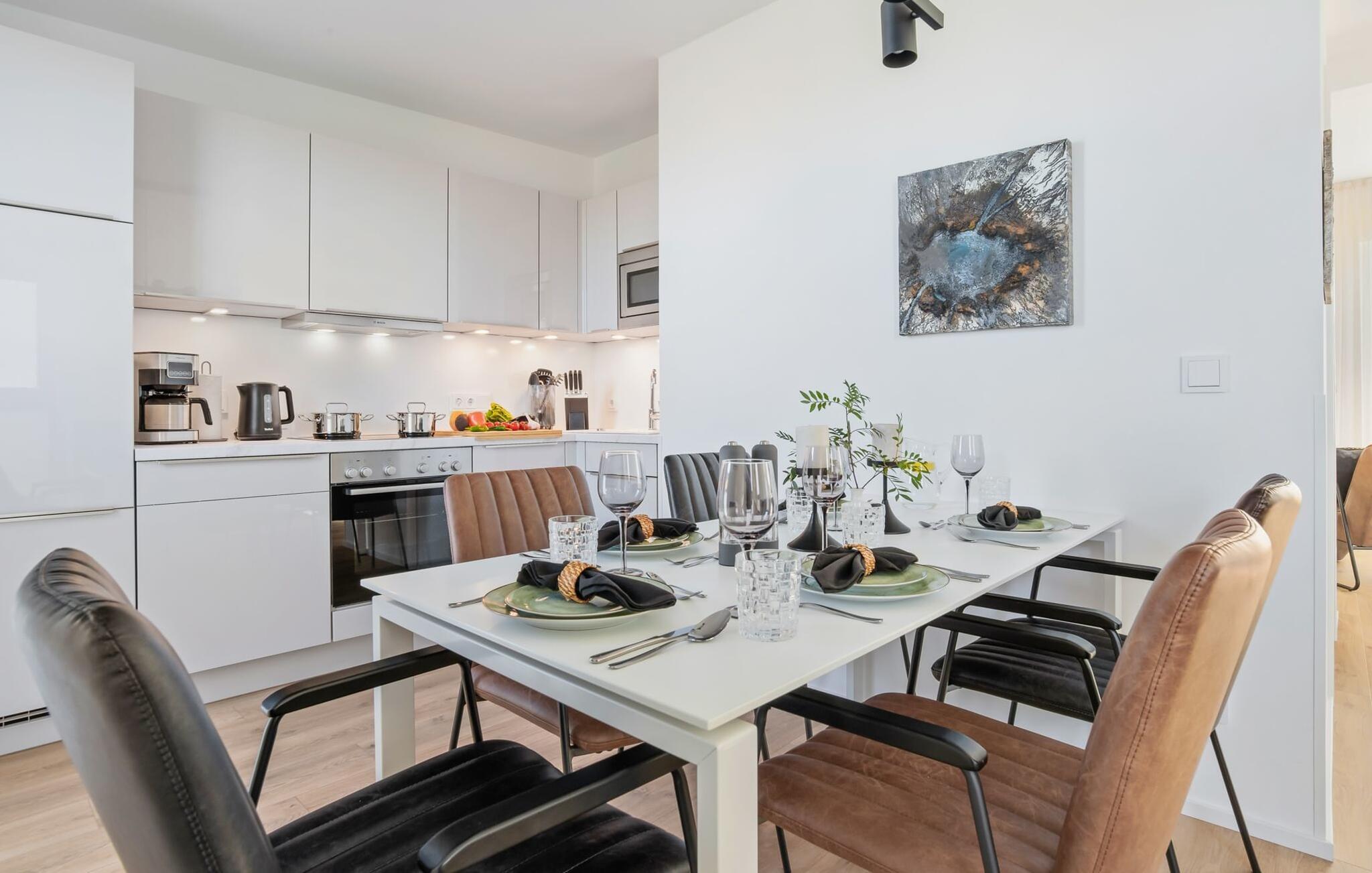 de magiske omgivelser i feriestedet Olpenitz ved Østersøen venter det eksklusive ferieloft Ines på dig, en rummelig etagelejlighed, der strækker sig over 1. og 2. sal og tilbyder et uforlignelig tilflugtssted for jeres ferie. Sandstranden Weidefelder med kiosk, restaurant og strandstole ligger i gåafstand og er et attraktivt rejsemål på alle tider af året. Minigolfbanen med maritimt tema ligger også i umiddelbar nærhed og nydes af både unge og gamle. Lystbådehavnen og havnepromenaden med supermarked og restaurant kan også nås på få minutter til fods. I kommer ind på Ines feriehems på første sal, som rummer soveafdelingen. Tre smagfuldt designede soveværelser inviterer jer til at blive her, hvoraf to er udstyret med komfortable dobbeltsenge og det tredje med to enkeltsenge, der venter på at give jer en afslappende nat. Det rummelige badeværelse på denne etage imponerer ikke kun med et forfriskende brusebad, men også med en infrarød sauna (varmekabine), der lover afslapning og wellness. Den åbne stue åbner op på anden sal og venter på jer med et fuldt udstyret køkken til de højeste standarder. Køkkenet er hjertet af kulinariske lækkerier og hyggelige madlavningsaftener. I tilknytning til køkkenområdet ligger den hyggelige opholdsstue, som byder på en indbydende opholdsstue. Den smagfulde indretning i minimalistisk asiatisk stil giver hele hemsen en harmonisk og beroligende atmosfære. I alt fire fjernsyn, i hvert soveværelse og i stuen, tilbyder underholdning på højeste niveau. Udsigten fra stuen fører til en rummelig terrasse, hvorfra man kan overskue saltvandsengene med deres mangfoldige flora og fauna. Med lidt held vil I opleve det naturlige liv og se hjorte eller kaniner i deres naturlige miljø. På denne etage finder I et andet badeværelse med badekar, som runder følelsen af og sikrer et afslappende ophold på alle tider af året. Ferienloft Ines ferielejlighed tilbyder også to private parkeringspladser direkte foran huset, som gør det muligt for jer at rejse komfortabelt. Den varme invitation går også til vores firbenede venner, da hunde er velkomne i denne eksklusive bolig. WiFi er også tilgængeligt i hele lejligheden, så I altid kan holde forbindelsen til verden. Ferieloftet Ines er ikke bare overnatning, men et sted, hvor luksus, natur og afslapning mødes i perfekt harmoni. Forkæl jer selv med et uforglemmeligt ophold ved Østersøen, og lad jer fortrylle af magien ved dette ekstraordinære ferieloft. Vores favoritsted Nyd Østersøbrisen med hele familien på terrassen og reflekter over dagen. Bemærk venligst: OstseeResort Olpenitz er meget populært, og der bygges fortsat i parken. Ikke desto mindre kan I se frem til en 5-stjernet standard og et førsteklasses ophold. Byggeaktiviteterne kommer ikke til at forstyrre jer på ferien, og derfor gives der ikke yderligere afslag i prisen.