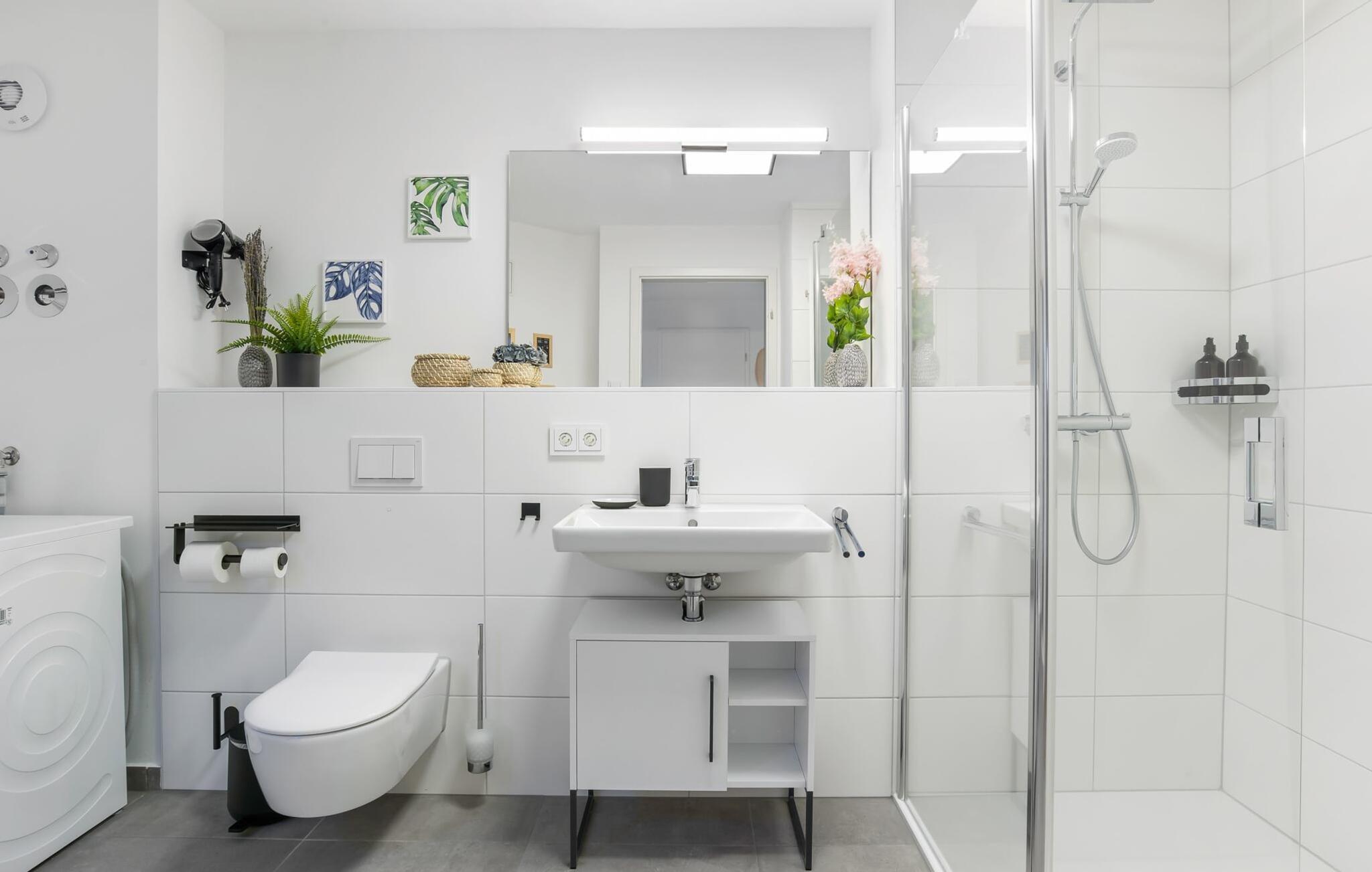 Badeværelse (nr. 1) - WC. Varmt og koldt vand. Bruser og badekar