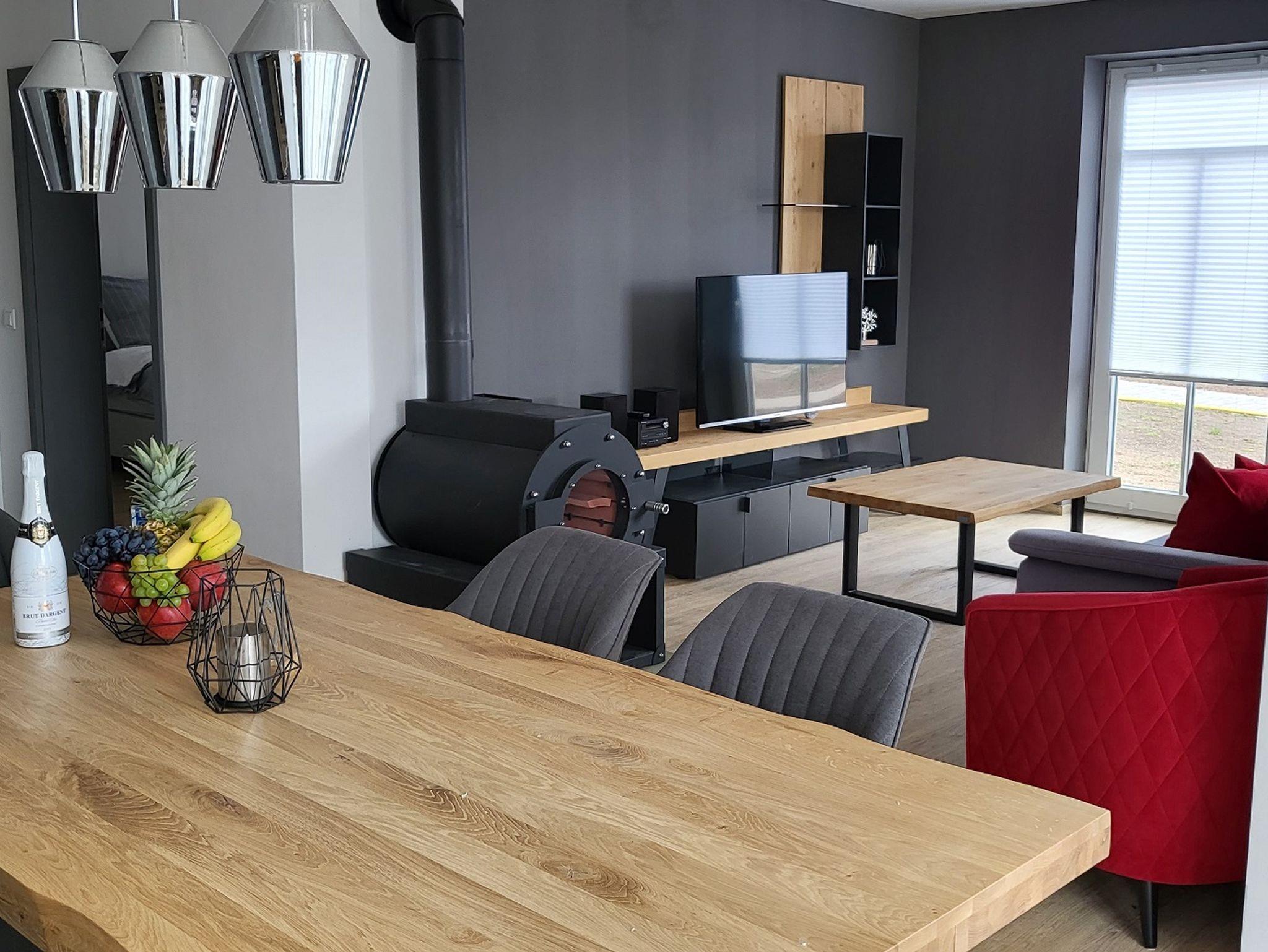An kalten Tagen sorgt der Kamin im unteren Wohnbereich für eine gemütliche Atmosphäre.