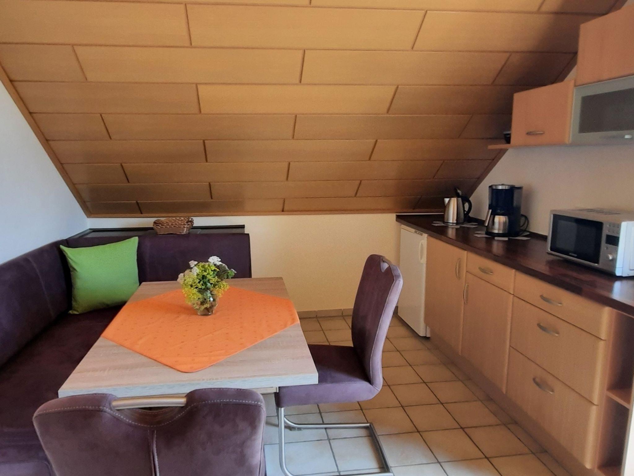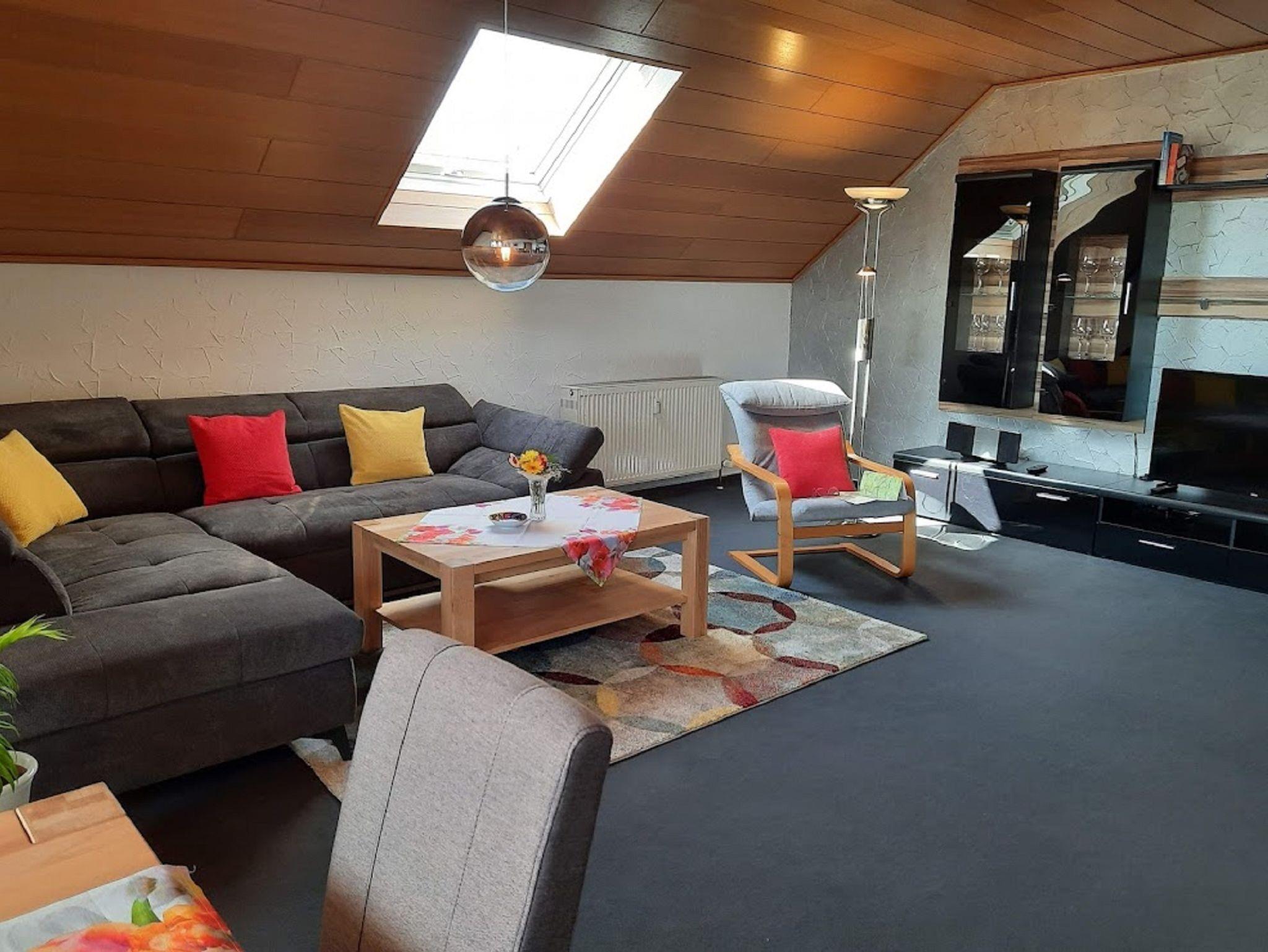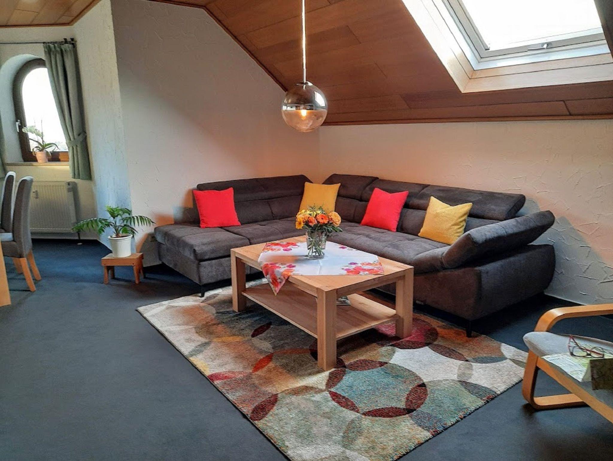 Wir bieten Ihnen eine ruhige, komfortable und gemütliche Nichtraucherferienwohnung (ca. 90 qm) für 2 – 4 Personen mit überdachtem Balkon zur Südseite in unmittelbarer Waldrandlage. Parkplätze befinden sich direkt vor dem Haus.
