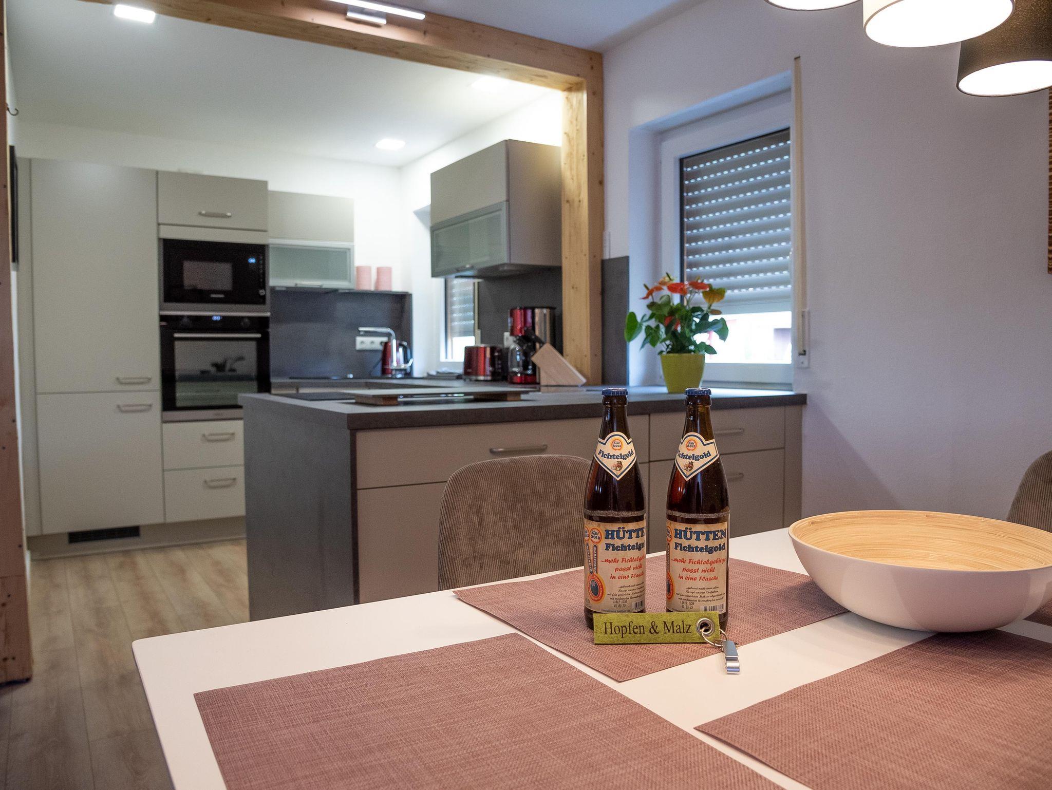 Die beiden Wohnungen Hopfen und Malz im Schneebergweg bieten Beide einen wunderschönen Blick auf das Wahrzeichen des Fichtelgebirges, den 1024 m hohen Ochsenkopf. Von hier aus sind es etwa 20 Gehminuten durch den Wald zum idyllischen und sagenumwobenen Fichtelsee. In die andere Richtung kann man zu Fuß oder mit dem Auto das Dorf mit seinen Einkaufsmöglichkeiten und seiner vielfältigen Gastronomie gut erreichen.
