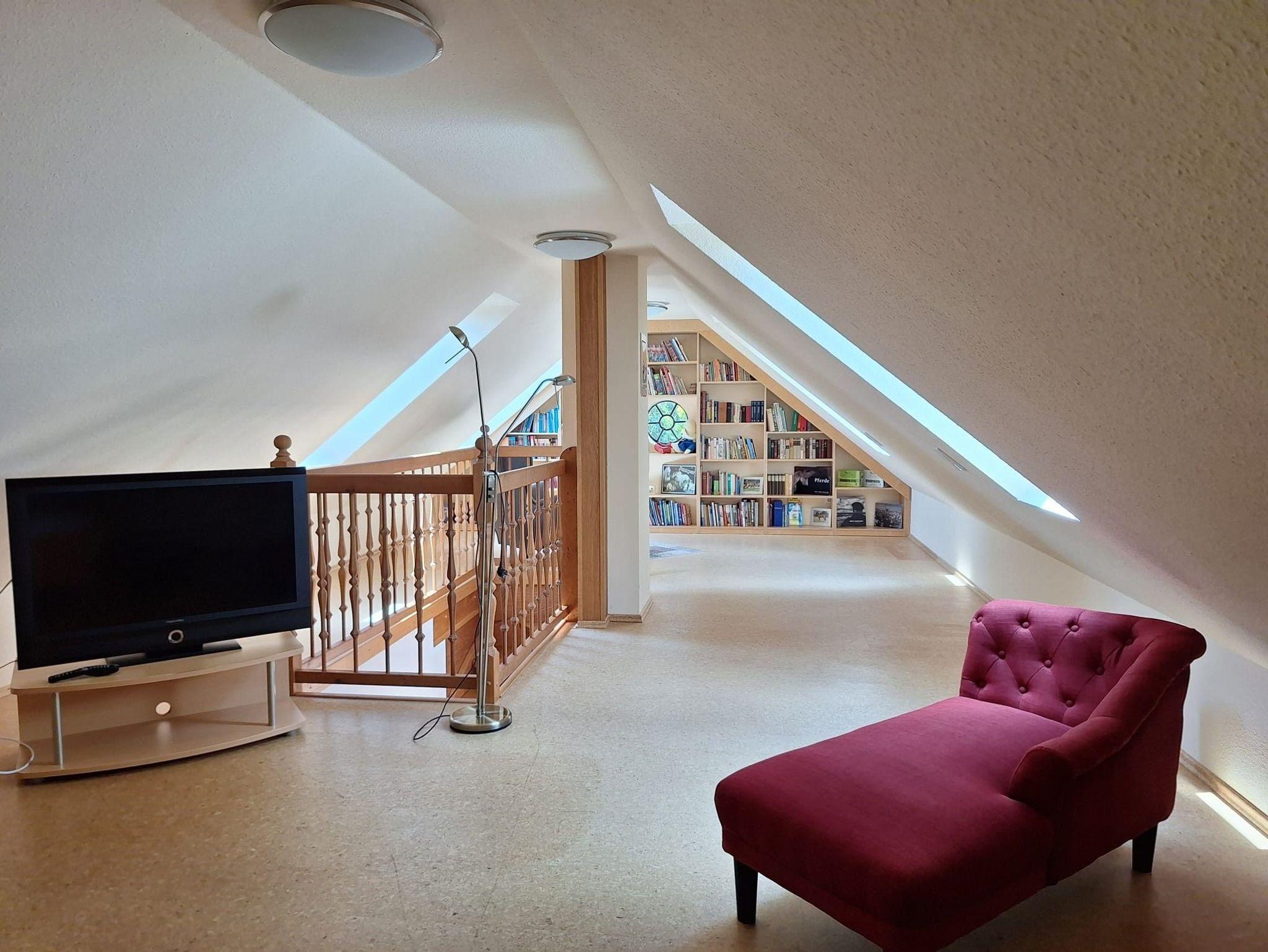 Separater Eingang, offenes Wohnzimmer mit komplett eingerichteter Küche (Ofen und Mikrowelle) und Essbereich, 2 Doppelschlafzimmer (1 Doppelbett ist 2,20 m lang), (1 x Dachboden), Dusche/WC (große Dusche/Wellnessdusche), TV und Radio, WLAN, Waschmaschine und Trockner nach Absprache benutzbar.