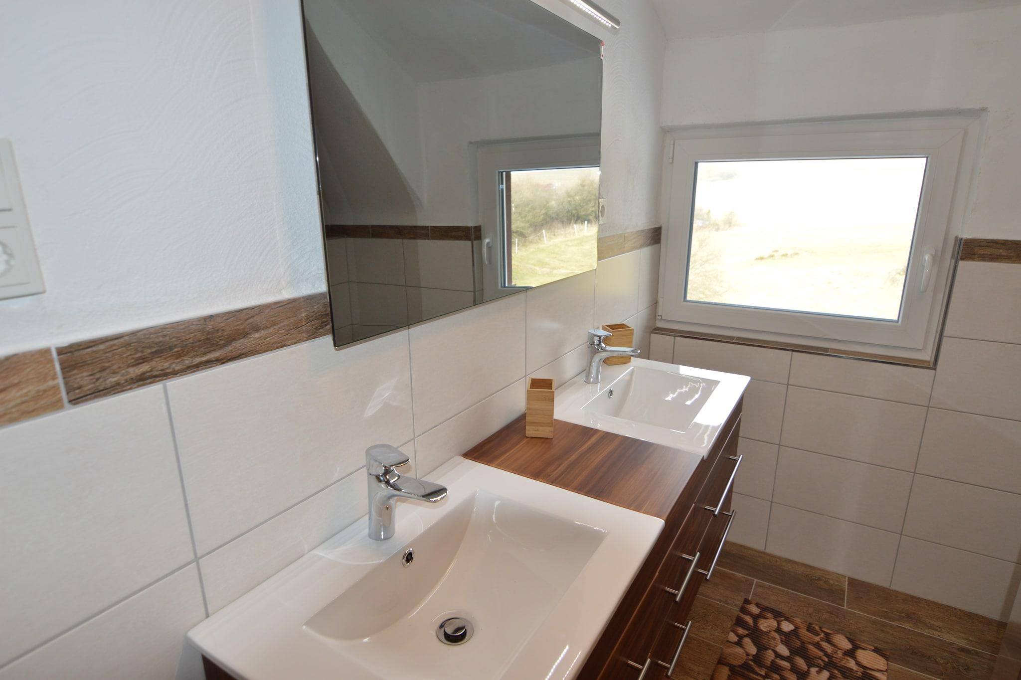 Dette hyggelige 3-værelses feriehus nær Filz tilbyder en fredelig tilflugtssted for op til 8 gæster, beliggende i udkanten af skoven og omgivet af enge. Terrassen med grill er perfekt til afslappede aftener, mens brændeovnen og læsekrogen indenfor skaber en varm og indbydende atmosfære. Familier vil sætte pris på de to barnesenge og høje stole, og hunde er også velkomne. Naturelskere kan hilse på græssende heste og hjorte i nærheden eller slappe af ved Vulkaneifel Therme i Bad Bertrich, Europas eneste Glauber salt termiske spa. Naturskønne vandrestier og vulkanske landskaber venter, og det vigtigste er kun 6 km væk, herunder supermarkeder som REWE og Lidl2. Til spisning tilbyder Alte Gutsschänke i Cochem (ca. 20 km) traditionel tysk mad med strålende anmeldelser. Uanset om du udforsker Eifel eller nyder roen i landskabet, kombinerer dette skovtilflugtssted komfort, natur og charme.