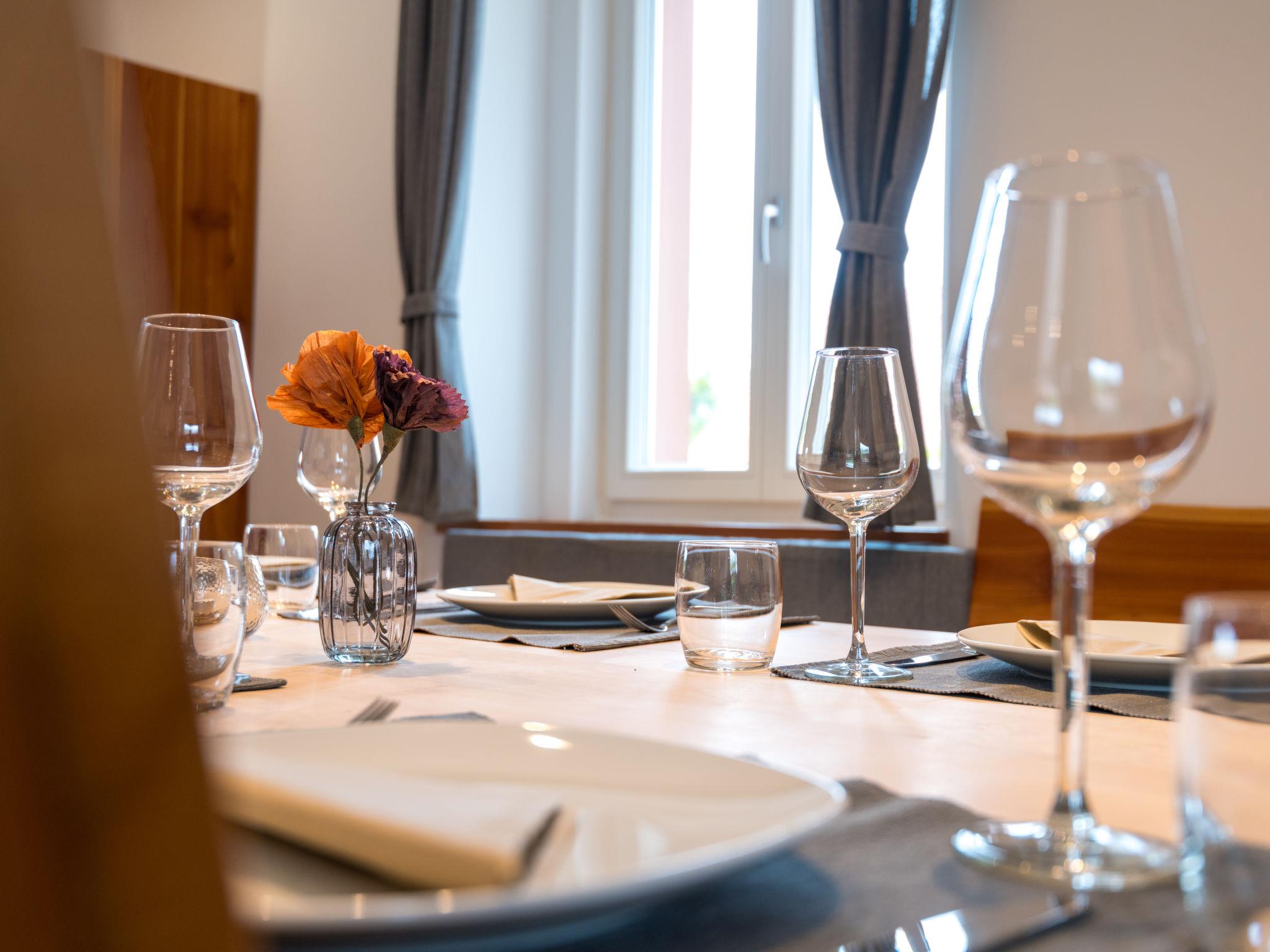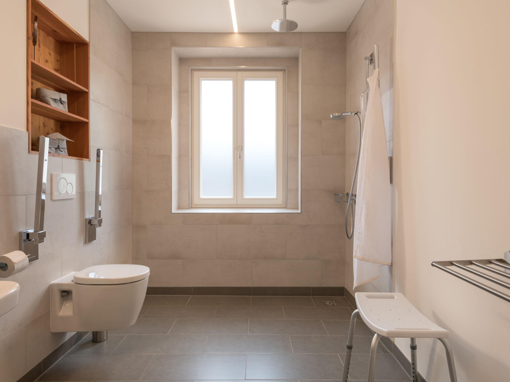 5-room apartment 180 m2, on the ground floor. Bright, fully renovated in 2018, comfortable and modern furnishings: large living room with cable TV (flat screen). Exit to the terrace. 4 rooms, each room with 1 double bed (2 x 90 cm, length 220 cm). Open kitchen (oven, dishwasher, 4 induction hot plates, toaster, kettle, microwave, electric coffee machine) with dining table. Shower/WC, bath/shower/WC. Heating. Solar power. Terrace. Terrace furniture. Facilities: Internet (WiFi, free). Parking (roofed, 1 car). Please note: non-smokers only. Smoke alarm. This apartment is barrier-free and you can enter the house via a ramp. One bathroom is barrier-free. Bookings accepted for holiday purposes only.
