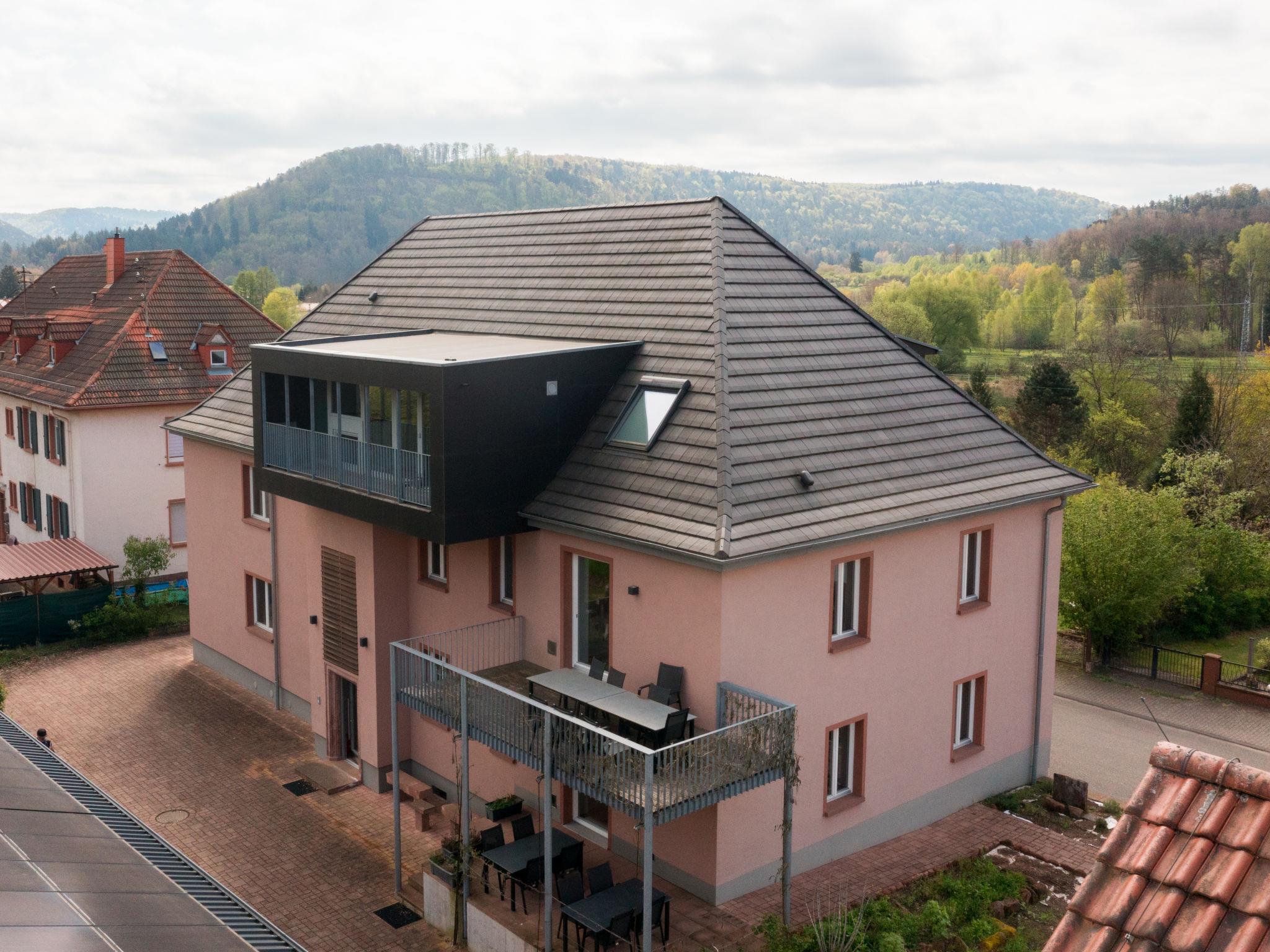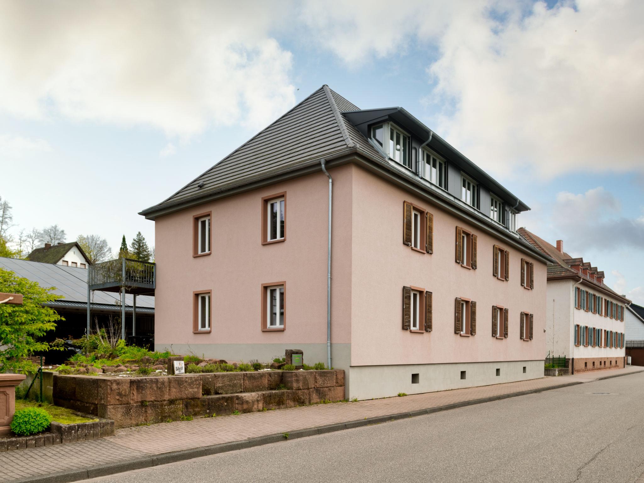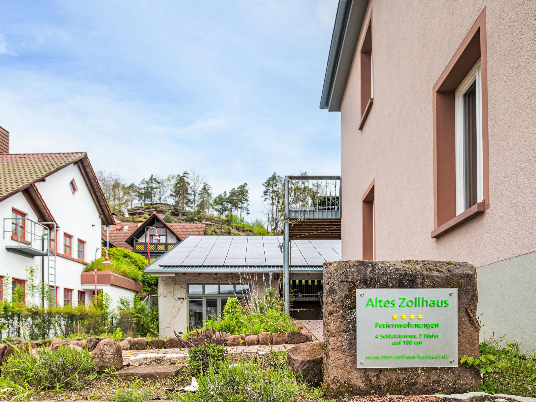 Large, beautiful house "Altes Zollhaus". 3 apartments in the property. On the outskirts, 400 m from the centre of Fischbach, 3 km from the lake. For shared use: planted inner courtyard. In the house: storage room for bicycles, washing machine, tumble dryer (for shared use). Parking on the premises. E-charging station. Grocery 400 m, bakery 350 m, café 500 m, 5 minute walk to the centre, bus stop "Feuerwehrhaus Fischbach bei Dahn" 600 m, thermal baths "Südpfalz Therme" 30 km, lake Mühlbachweiher 3 km. Golf course (18 hole) 40 km, children's playground 2 km. Nearby attractions: Biosphärenreservat mit Baumwipfelpfad 2 km, Burgruine Blumenstein 20 km, Barfußpfad Ludwigswinkel 3 km. Hiking paths: Dahner Felsenland 16 km. The owner does not accept any youth groups. The house has been renovated to be energy efficient and sustainable and is equipped with the latest environmental technology.