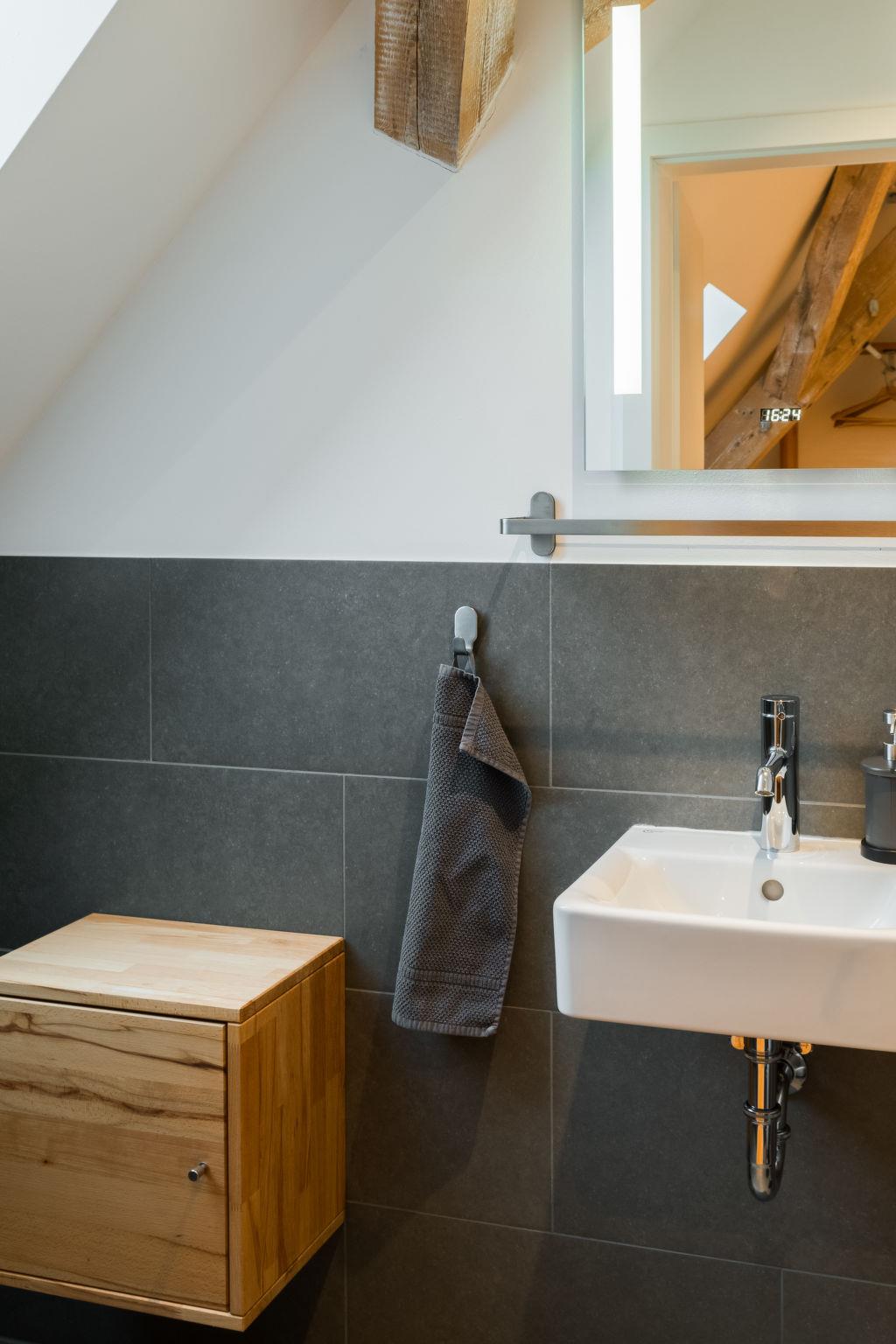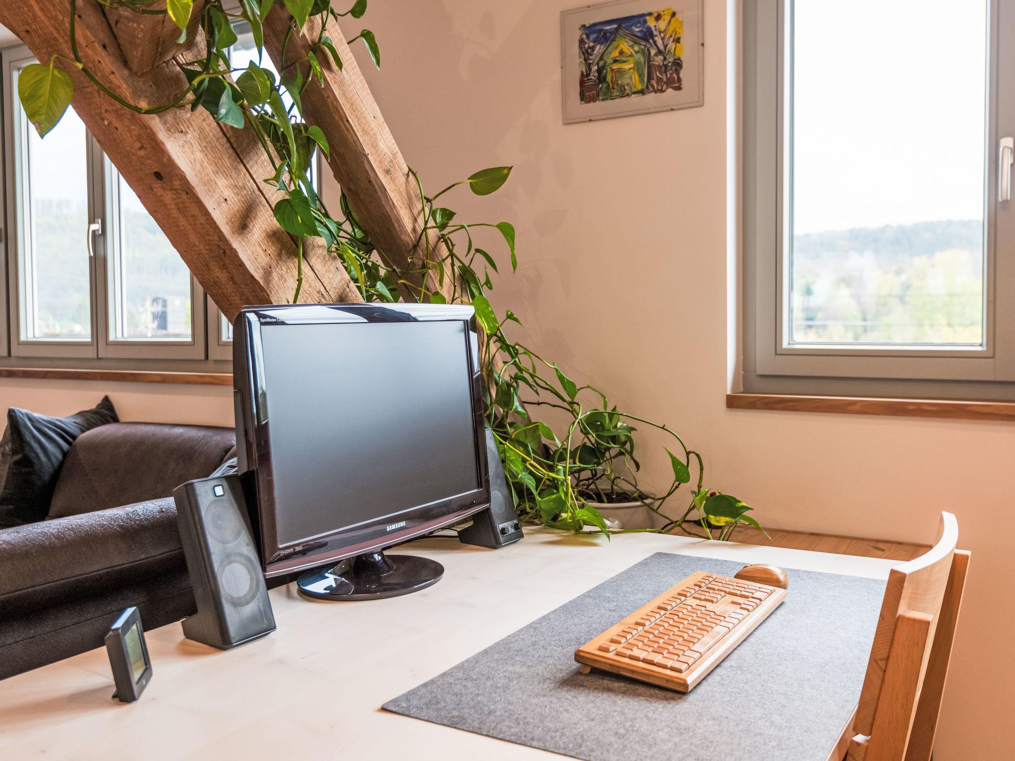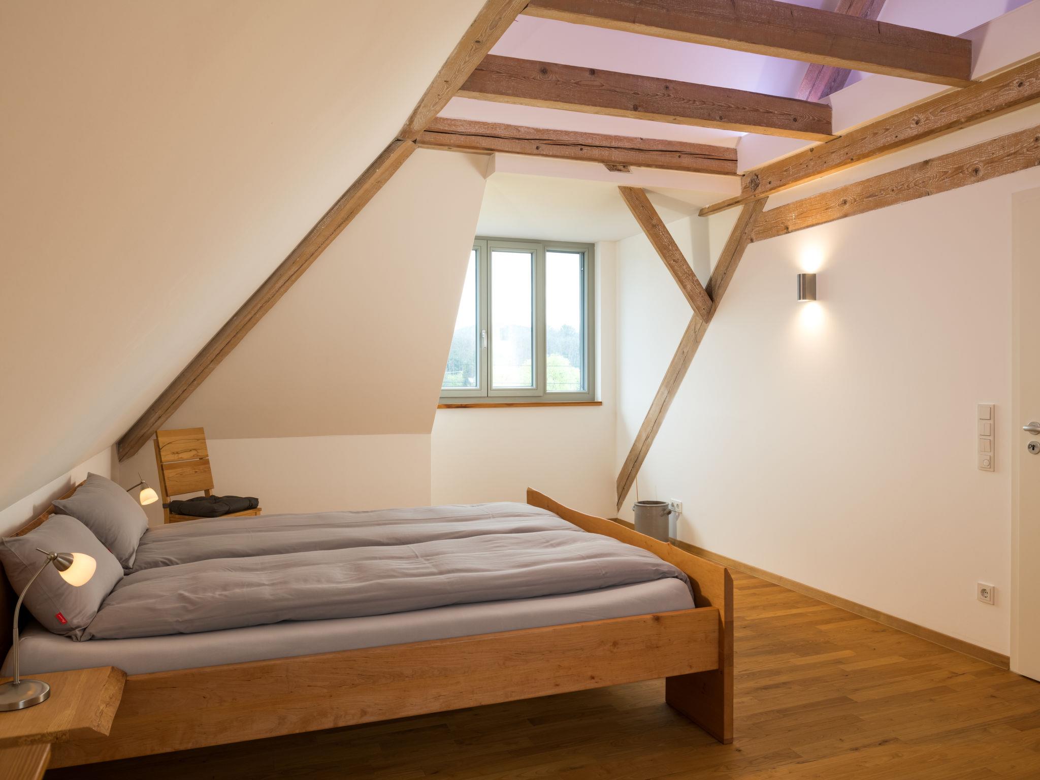 3-room Loft 130 m2 on 2nd floor. Bright, partly with sloping ceilings, fully renovated in 2018, comfortable and beautiful furnishings: open large living/dining room with dining table and cable TV (flat screen). Exit to the balcony. 1 room with 1 double bed (180 cm, length 220 cm). 1 room with 1 french bed (160 cm, length 200 cm). Open kitchen (oven, dishwasher, 4 induction hot plates, toaster, kettle, electric coffee machine). Sep. WC, bath/shower/WC. Underfloor heating. Solar power. Balcony. Balcony furniture. Facilities: Internet (WiFi, free). Parking (roofed, 1 car). Please note: non-smokers only. Smoke alarm. Bookings accepted for holiday purposes only. DE6696.100.3