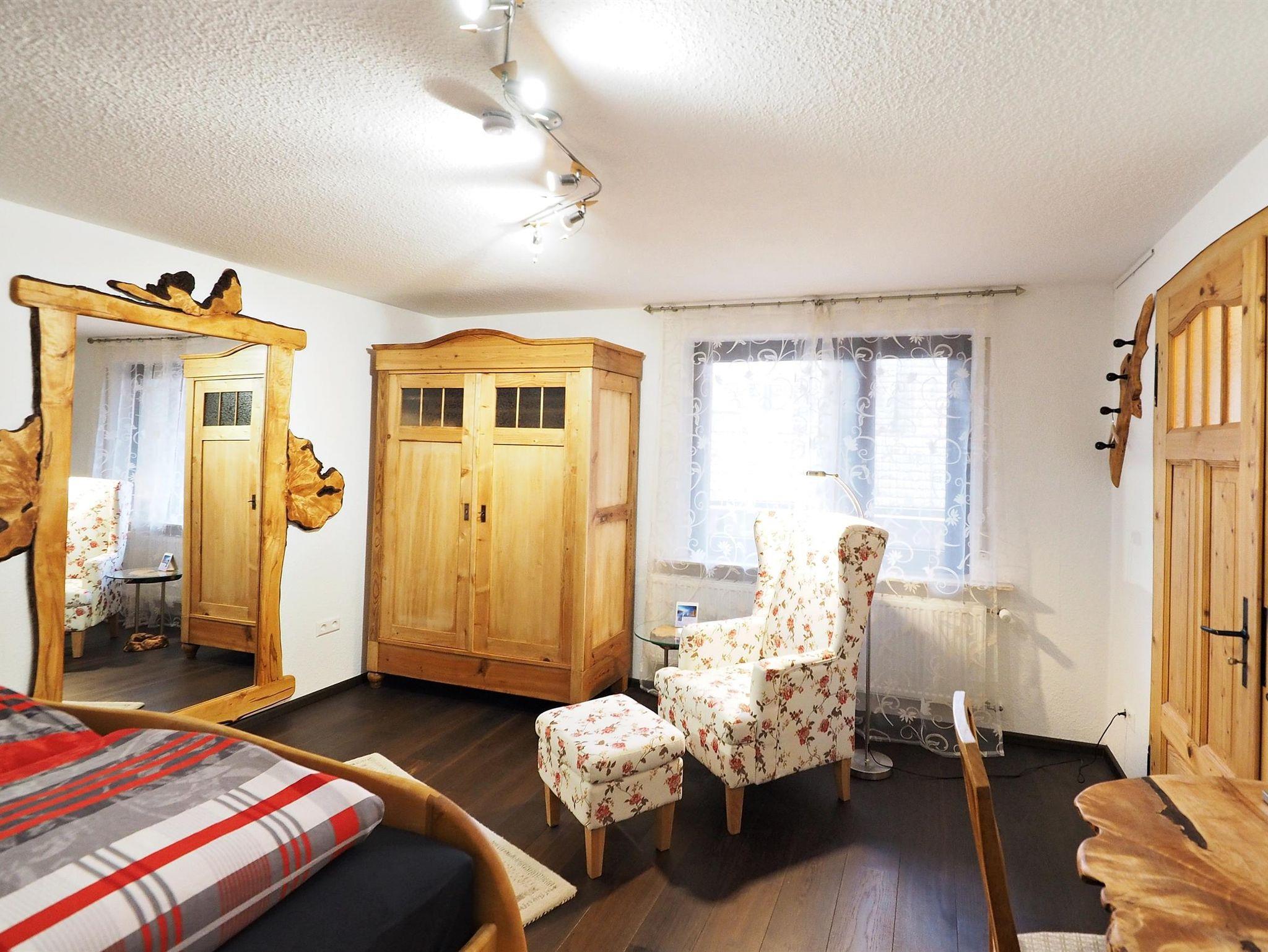 Unser mit vier Sternen ausgezeichnetes „HolzArt Apartment für Zwei“ ist mit Massivholzmöbeln, und mit Unikaten aus der Künstlerwerkstatt des Holzkünstlers Erwin Würth eingerichtet. Möbelhölzer und Parkett sind biologisch behandelt. Auf 45m² befinden sich die geflieste Wohnküche, das Schlafzimmer und das kleine Bad.