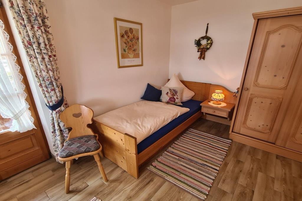 Ferielejligheden "Edelweiss" er på 60 kvadratmeter og er egnet til 2 til 4 personer. En hyggelig stue med fladskærms-tv og integreret køkken inviterer jer til at slappe af og nyde tiden sammen. Den komfortable dobbeltseng med allergivenligt sengetøj og tre forskellige puder inviterer jer til at drømme, ligesom soveværelset med to enkeltsenge. Badeværelset har bruser og toilet, hårtørrer og håndklæder. På jeres syd- og vestvendte balkon finder I et siddeområde med hynder. Her kan I nyde den storslåede udsigt over bjergene. Efter anmodning leverer vi friske rundstykker til jeres dør om morgenen.