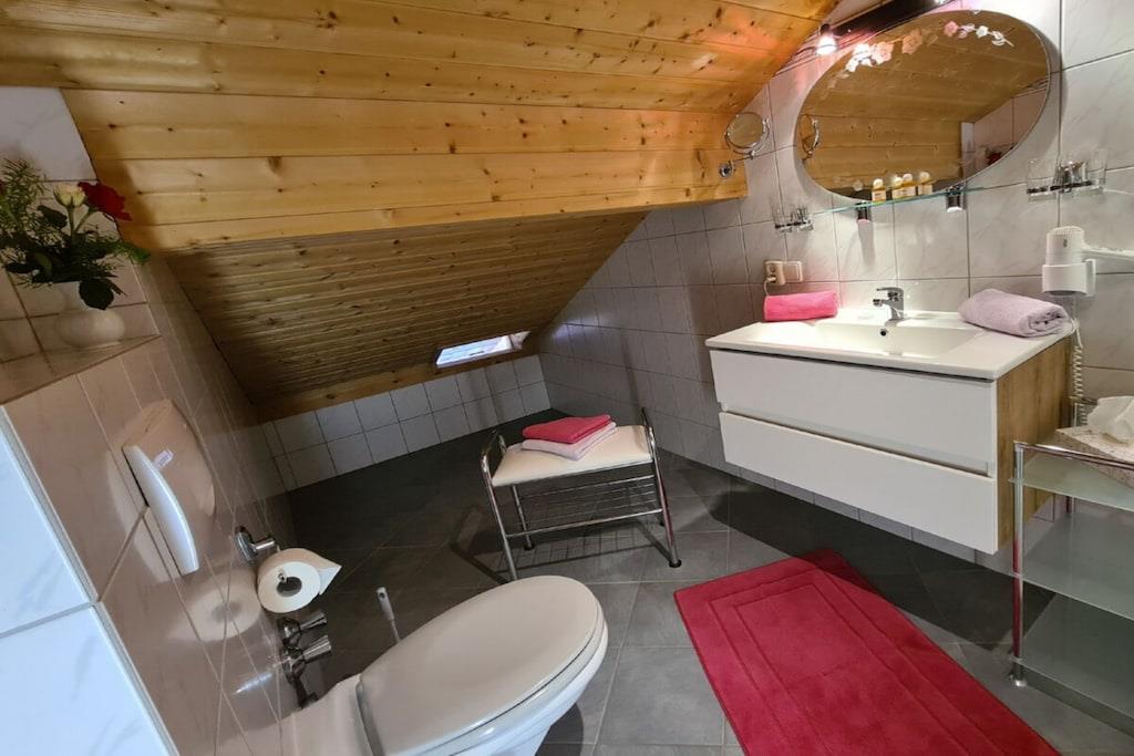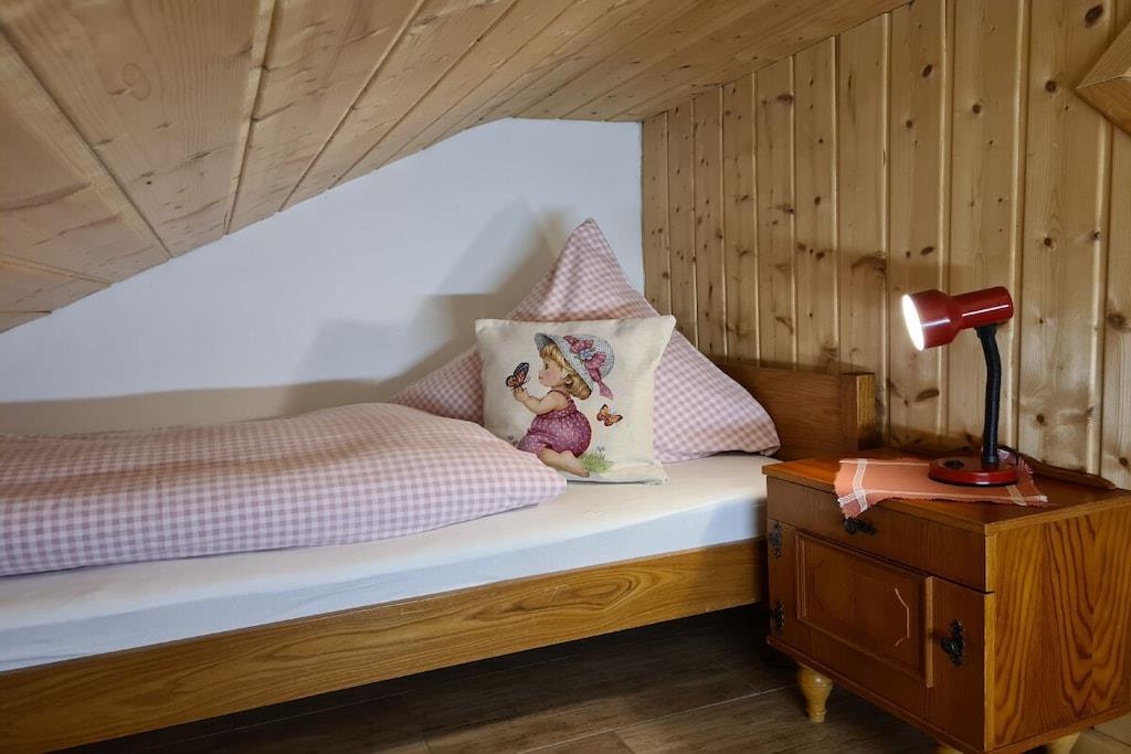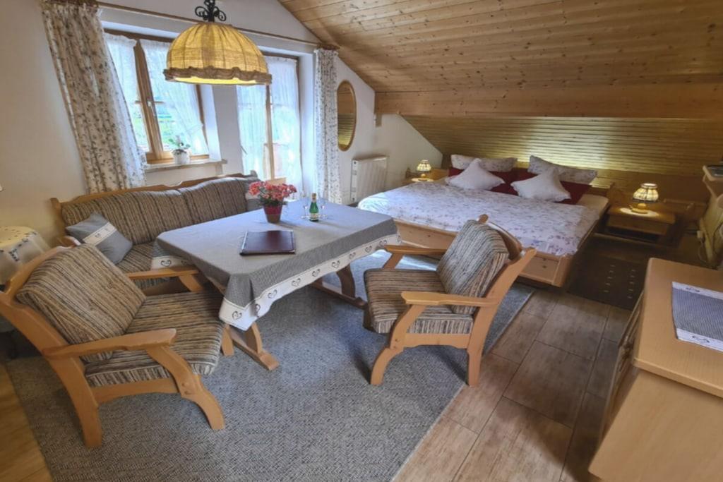 Ferielejligheden Schwalbennest har en separat indgang i trappeopgangen. Lejligheden er komfortabelt møbleret i alpestil med møbler i massivt træ. En kombineret stue og soveværelse med et komfortabelt siddeområde og satellit-tv, et moderne køkken og et rummeligt badeværelse med bruser og toilet lader intet tilbage at ønske. En sovealkove indbygget i det skrånende loft giver to sovepladser til børn og er integreret i stue-/soveområdet. Sengelinned, håndklæder og viskestykker er inkluderet. Denne service er inkluderet i prisen. Efter anmodning leverer vi friske rundstykker til din dør hver morgen. En dejlig græsplæne med grillplads er også tilgængelig. Desværre er hunde ikke tilladt.