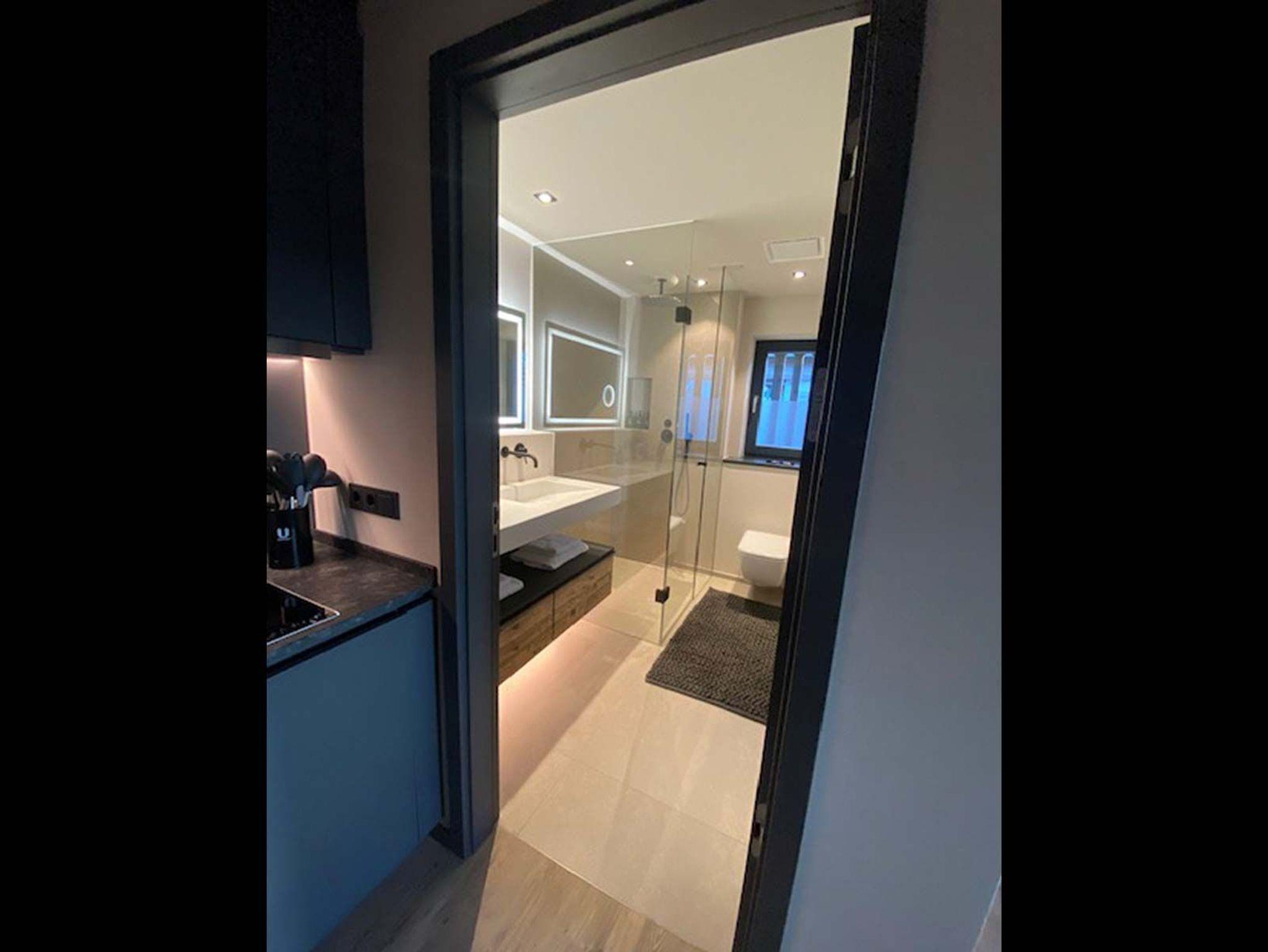 In jedem Bad findest Du eine barrierefreie Dusche mit Regenhimmel, einen Föhn und einen Handtuchtrockner. Dazu Shampoo, Conditioner, Duschgel und Handseife. Komm einfach rein. Und fang an, Dich zu erholen.