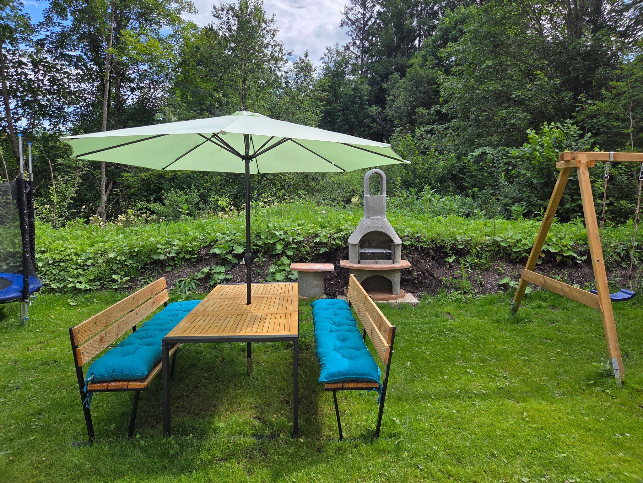 Im Außenbereich steht ein Garten mit Kinderspielplatz, Grill und Sitzmöglichkeiten zur Nutzung zur Verfügung.