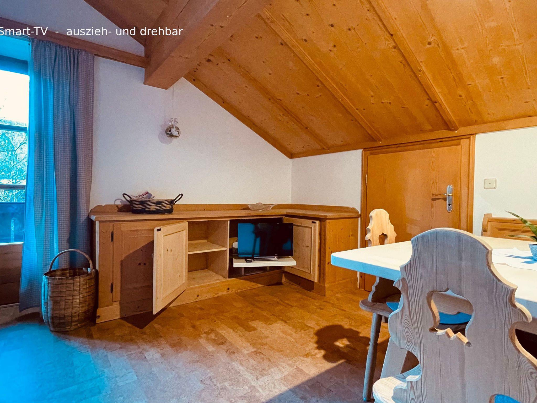 Die Wohnung lässt keine Wünsche offen und eignet sich besonders für Paare, die mal ein paar Tage abschalten und die Zweisamkeit genießen wollen. Sie ist ausgestattet mit einer vollständig eingerichteten Küche incl. Esstisch. Das Wohn-/Schlafzimmer lädt zum Verweilen ein, Internet-TV und W-LAN sind vorhanden. Der Schlafbereich ist mit einem romantischen Bett sowie einem begehbaren Schrank eingerichtet. Viel Holz, viel Licht und eine große Portion Wohlfühlatmosphäre machen diese großzügige Ferienwohnung zu einem echten Lieblingsplatzerl. Das Badezimmer mit Echtglas-Dusche und Thermostatbrause vervollständigt das luxuriöse Ambiente.