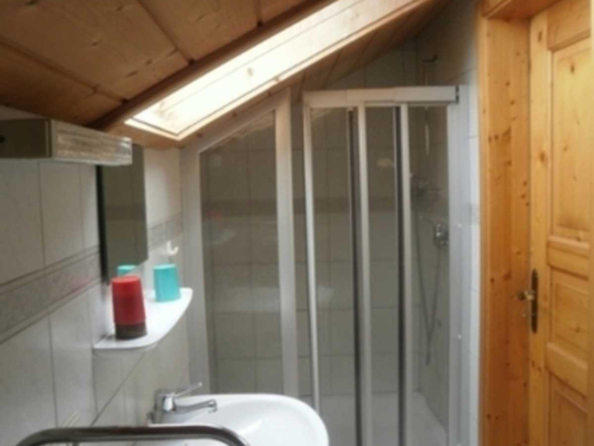Unsere Ferienwohnung verfügt über eine große Wohnküche, ein Schlafzimmer, einen neuen Parkettboden und eine Dusche. Der Balkon ist in Richtung Berge. Ein Spieleschrank ist vorhanden.