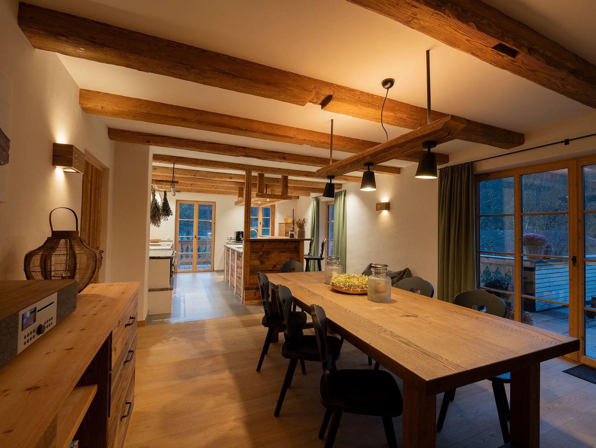 Unsere große Ferienwohnung Das Chalet erstreckt sich auf zwei Etagen für bis zu 8 Personen auf über 198 Quadratmetern.