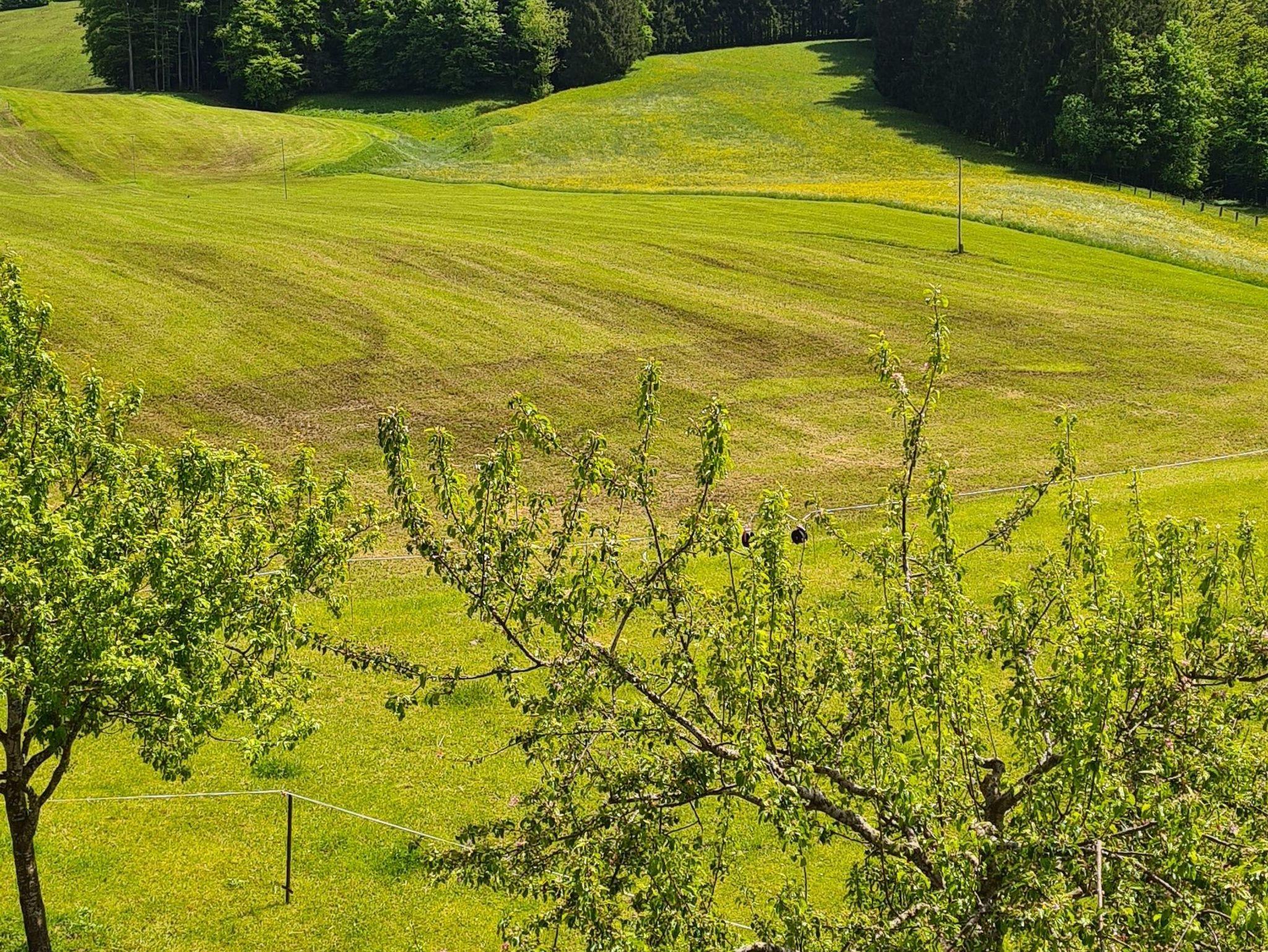 Die Wohnung befindet sich im 2. Stock in einem Nebengebäude zum Bauernhof.
