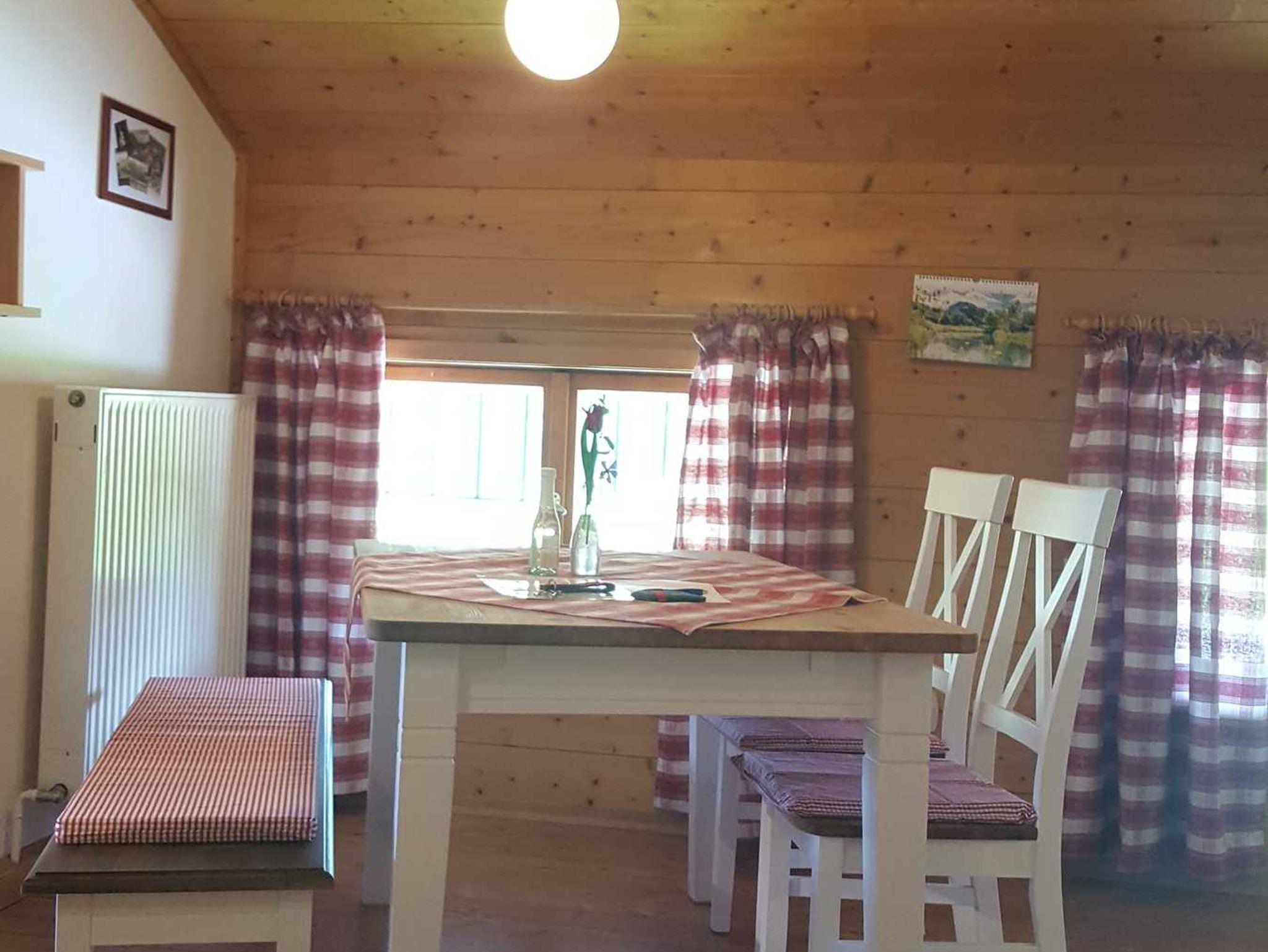 Im Wohnraum befindet Sie eine Essgruppe, eine großzügige Couchliege (1,20m breit), TV-Flachbild, CD-Player, sowie eine komplett ausgestattete Küchenzeile mit Backofen, Kühl-Gefrierschrank, Kaffeemaschine, Toaster & Wasserkocher.