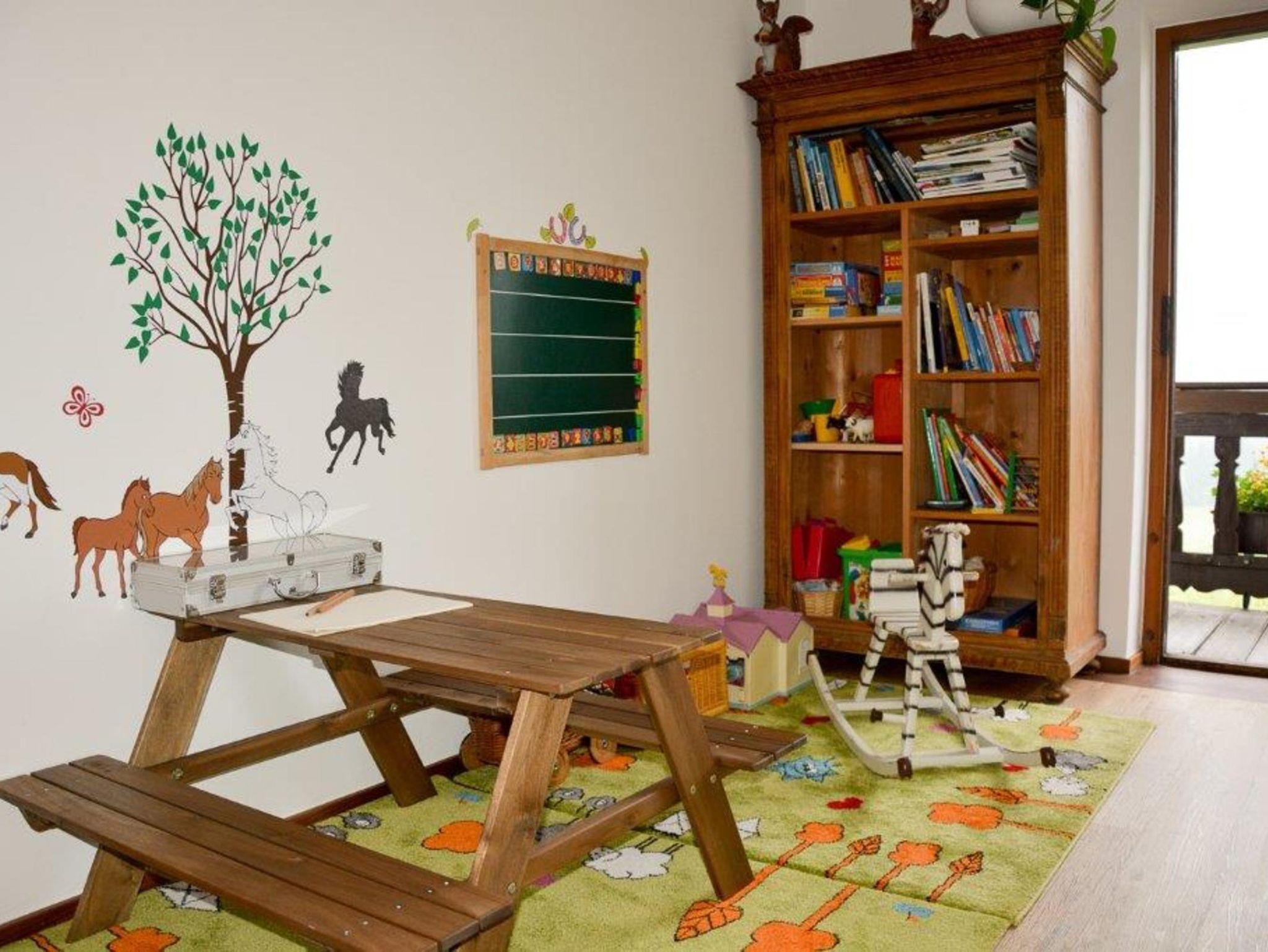 Unsere Ferienwohnung Haflinger (51 qm), im 2. OG gelegen, ist mit gemütlichen bayrisch bemalten Möbeln ausgestattet und verfügt über ein Elternschlafzimmer mit Doppelbett (Zustellbett möglich), einem Kinderschlafzimmer mit 2 Betten. Bitte beachten Sie, dass die Betten im Kinderzimmer nur über eine Länge von 1,85 m verfügen. Das Bad ist mit einer Dusche, WC, Kosmetikspiegel und Föhn ausgestattet.