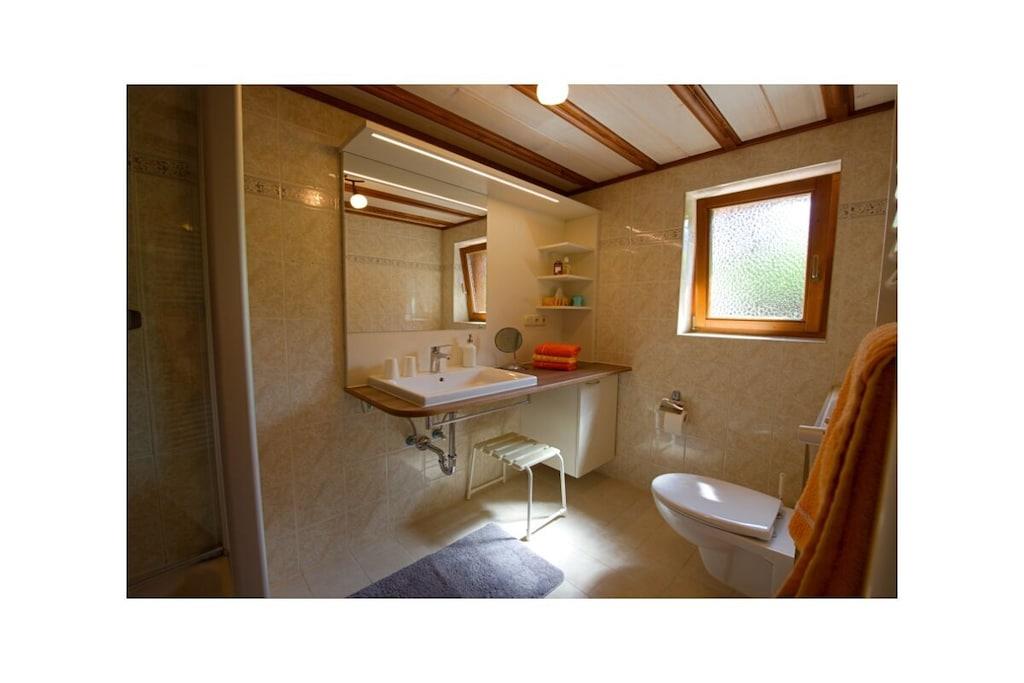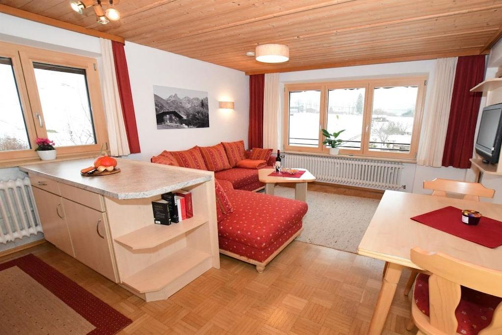 Kære gæster, Vores ferielejlighed ligger i et roligt og solrigt område. Sonnenkopf-ferielejligheden (nr. 4) er møbleret til 2 personer (med en ekstra sovesofa til 1 barn i soveværelset). Den har en stue med et integreret, fuldt udstyret køkken med opvaskemaskine, en komfortabel stor hjørnesofa, et separat stort soveværelse, et bad/toilet, en sydvendt balkon og satellit-tv med LCD-skærm. Et stort panoramavindue tilbyder uhindret udsigt over bjergene. Til børnene er der et legetårn med rutsjebane, sandkasse, en Bobby Car, en trehjulet cykel, en gokart, en pedaltraktor, en Berg-Fendt gokart og et bordtennisbord. Om vinteren er der en langrendsløjpe lige ved siden af huset, og børnene kan også nyde kælkebanen lige ved siden af huset. En række kælke er gratis tilgængelige.