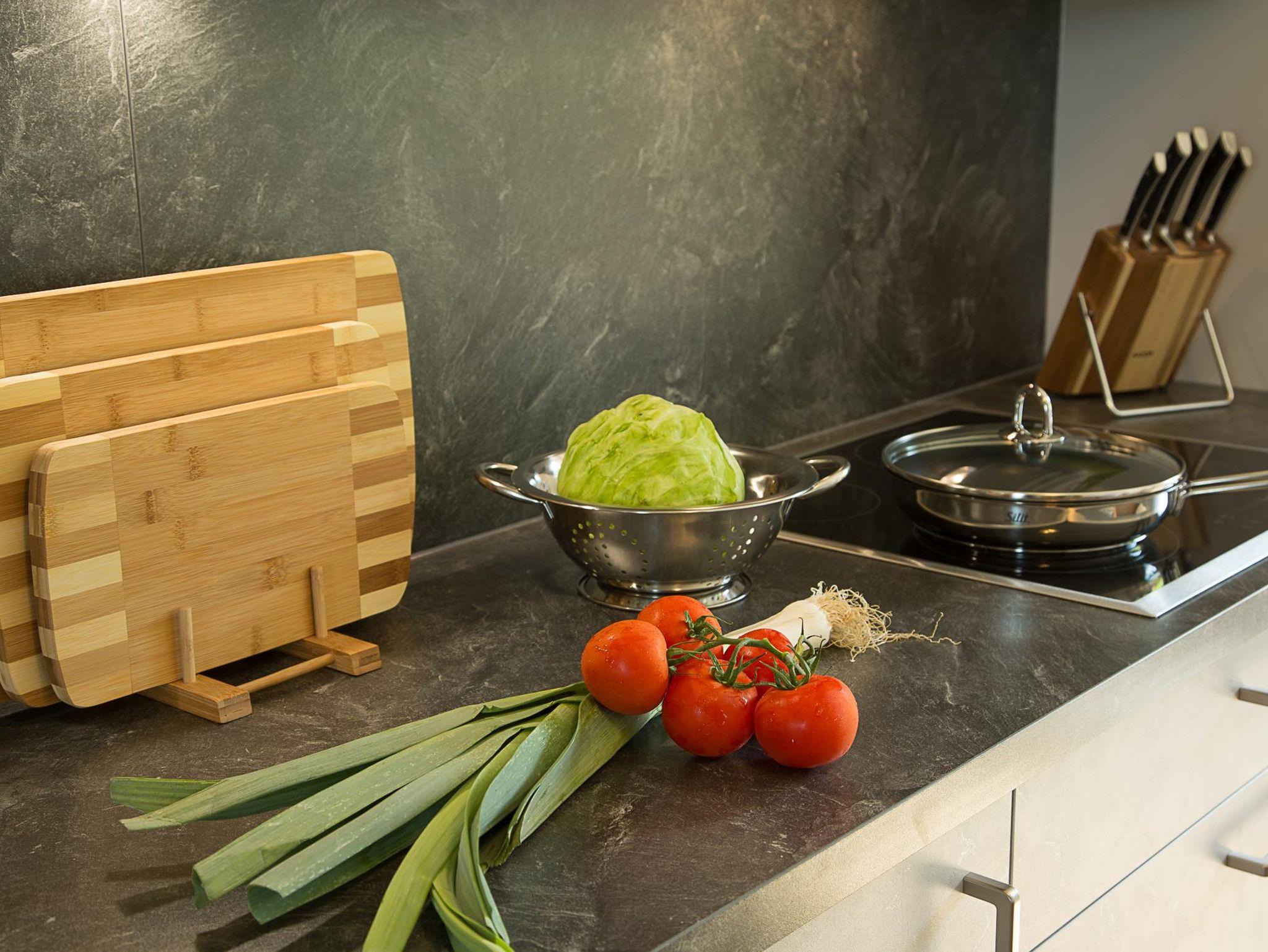 Wohn-Essbereich mit Flachbildfernsehr, Sofachouch, WLAN, Balkon, Balkonmöbel. Komplett eingerichtete Küche mit Cerankochfeld, Backofen. Spülmaschine usw.Schlafzimmer mit 2m langen Betten, verstellbaren Lattenrosten, Bandscheiben Matratzen, offenen Fußteil, Bettwäsche.Zweites Schlafzimmer mit 190mx200cm langen Bett. Bad mit Dusche/WC, Toilettenartikel, Hand und Duschtücher vorhanden.