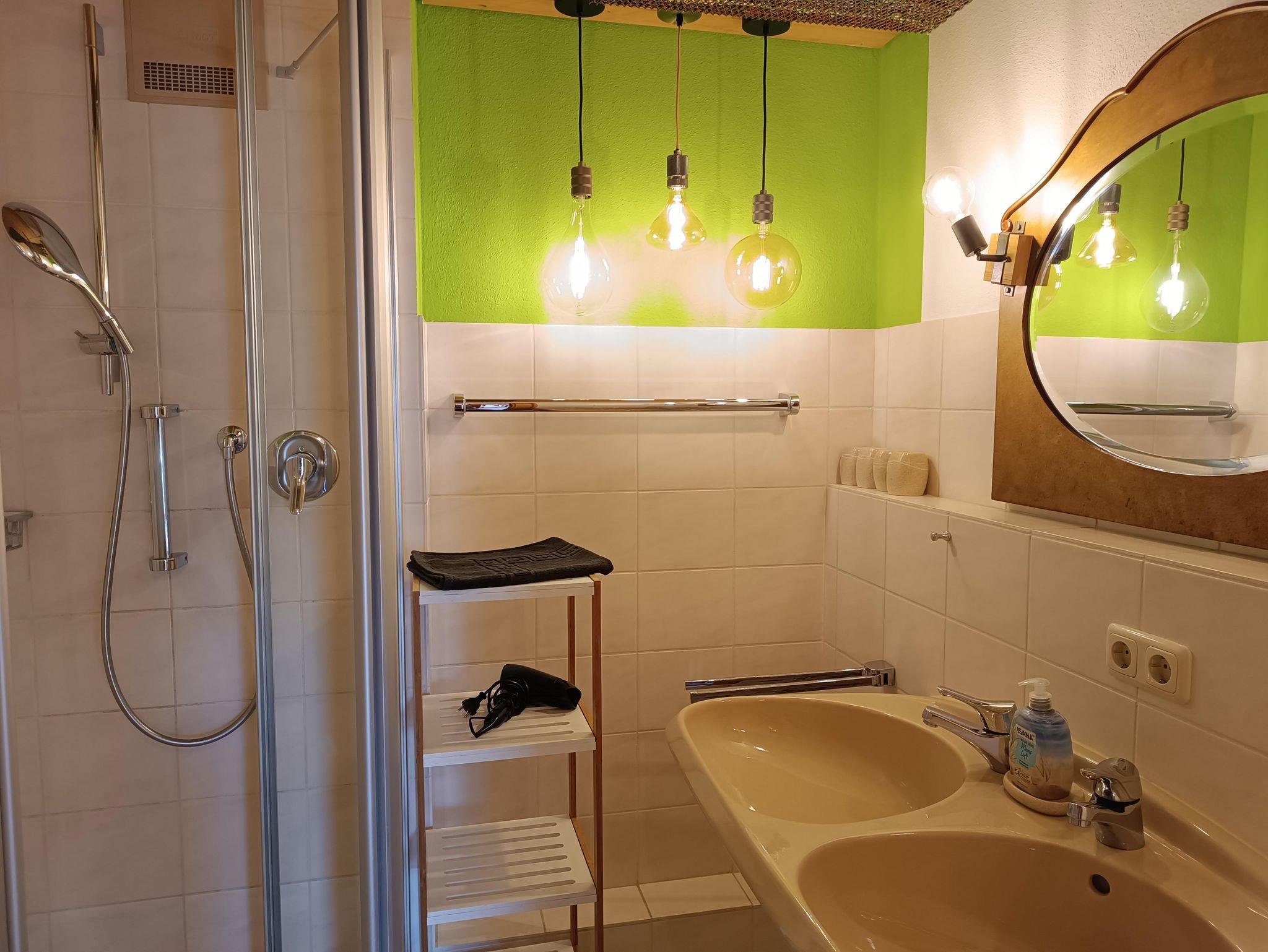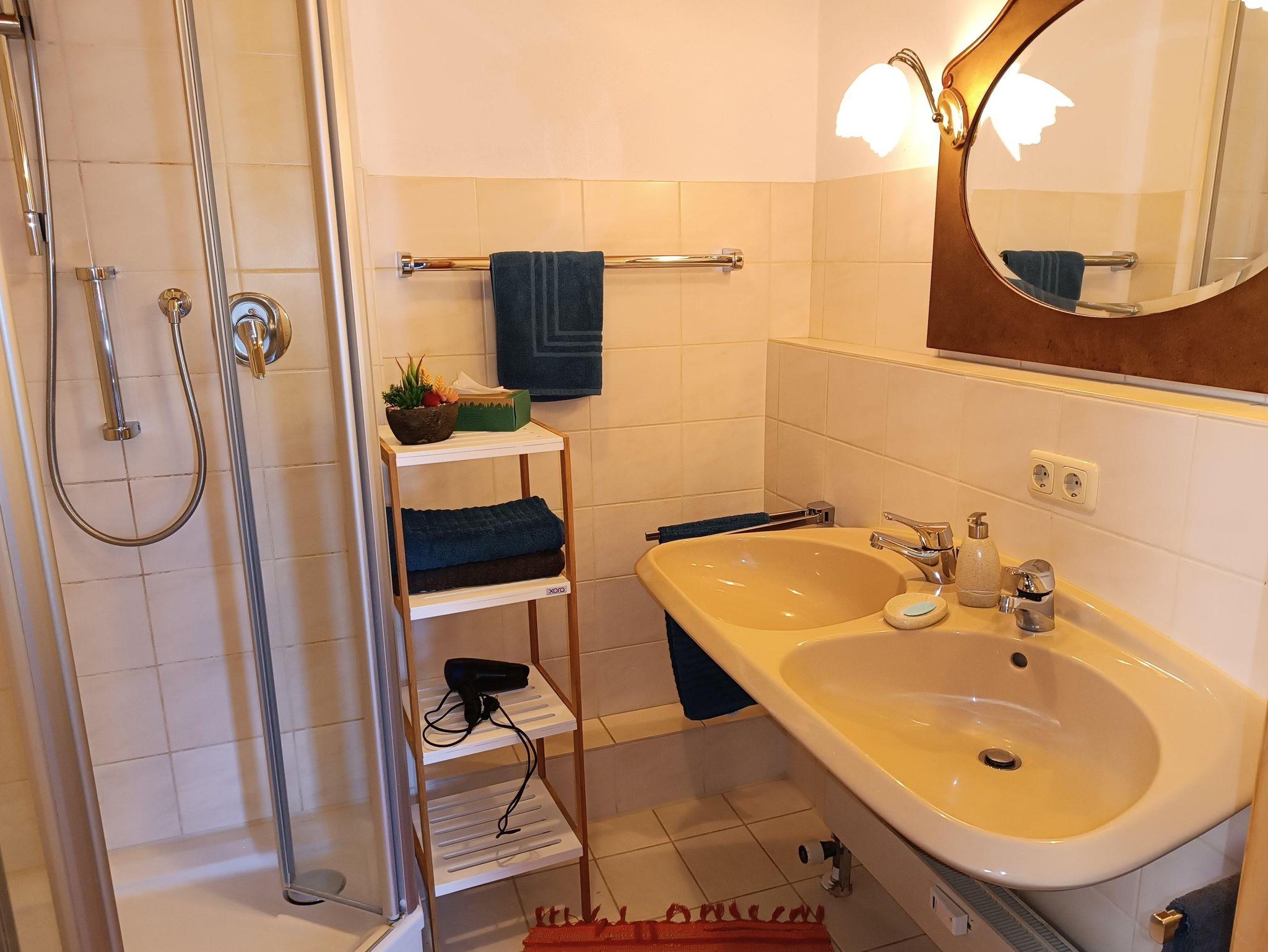 Gepflegte 2-Raum-Ferienwohnung im Dachgeschoss, 50 qm für 2-4, Personen, voll ausgestattete Küche, Bad mit Dusche und Doppelwaschbecken, sep. WC, Schwedenofen, kostenloser PKW-Stellplatz am Haus, Waschmaschine im Keller, WLAN