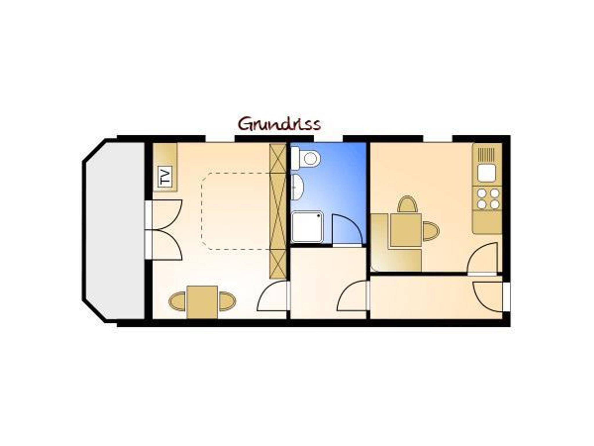 • Wohn- Schlafraum mit einem normalen Doppelbett und einer 2-Sitzer-Couch, Sat-TV