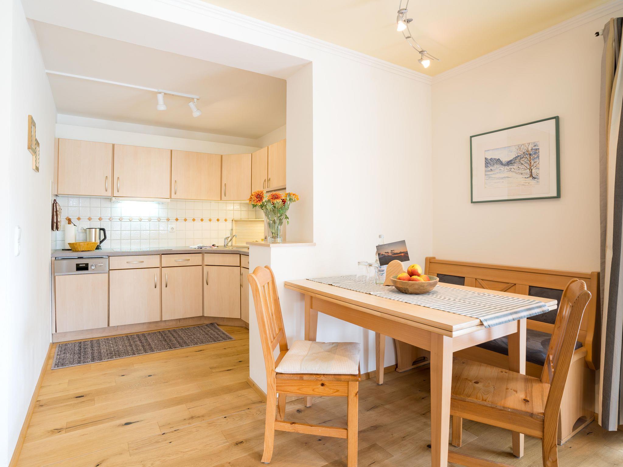Das Appartement 01, 60 qm, im modernen Landhausstil ausgestattet, liegt im EG mit Südterrasse und freiem Blick auf die Oberallgäuer Bergwelt! Wohnzimmer mit Parkettboden, Sitzecke, Wlan, Flachbild-TV, gemütliche Essecke und komplett ausgestattete Küche mit allem Komfort. Schlafzimmer mit Doppelbett, Bad mit DU/WC. Das Appartement kann mit 4 Personen belegt werden.