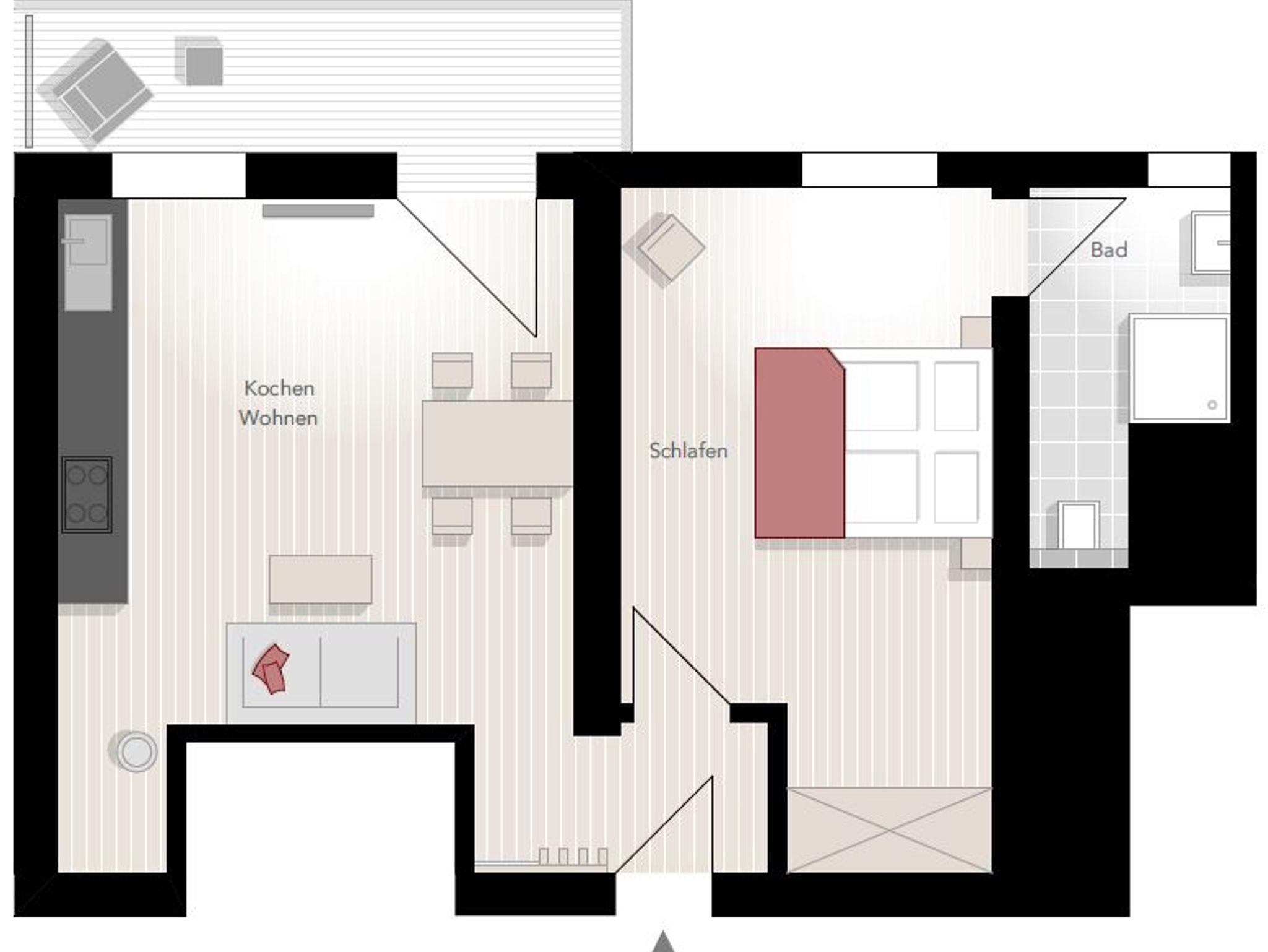 2-Raum Komfort Wohnung mit Holzböden und Balkon für 1-2 Personen.