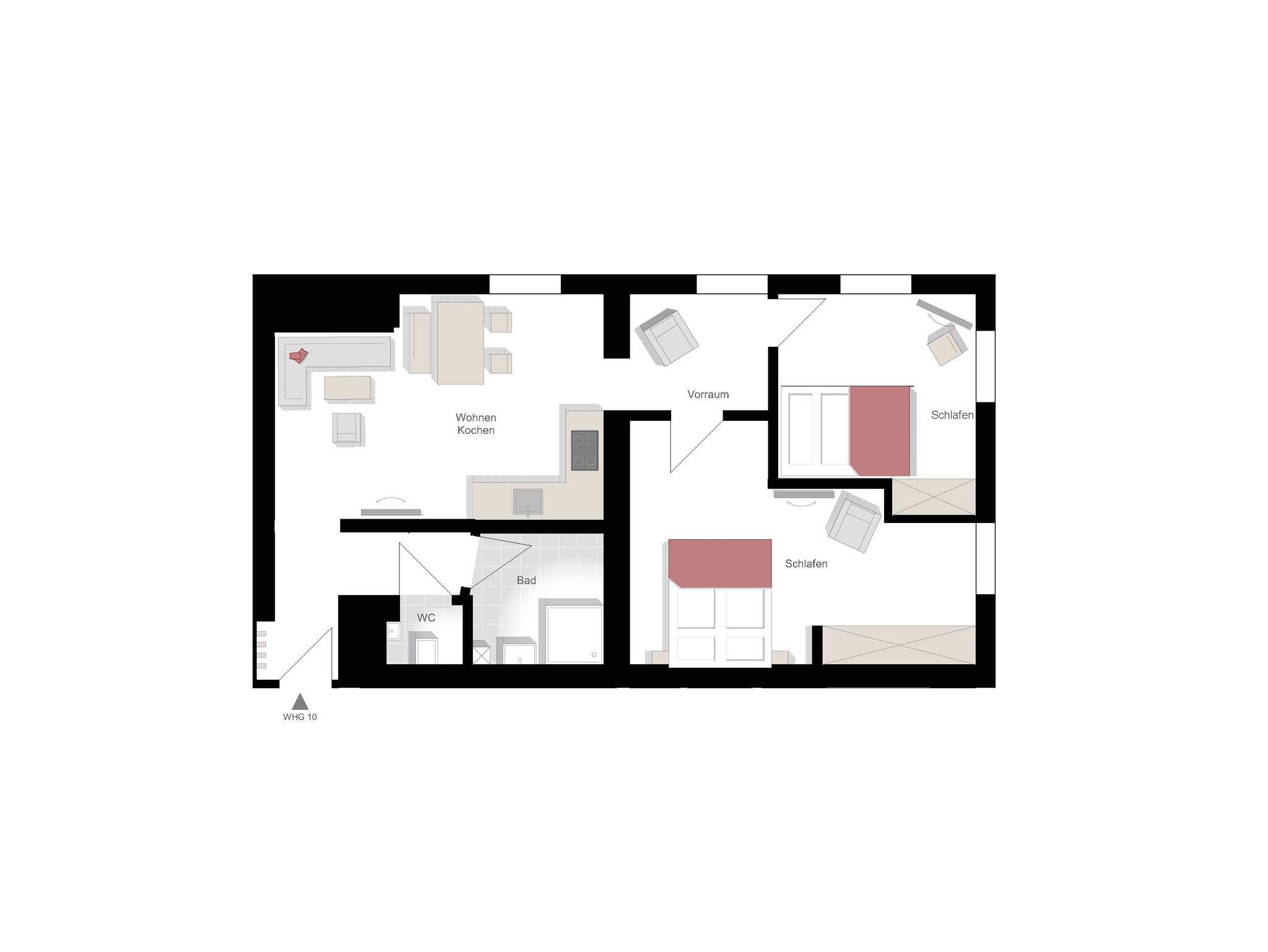 59qm mit Otsausrichtung. Für 1-3 Personen.