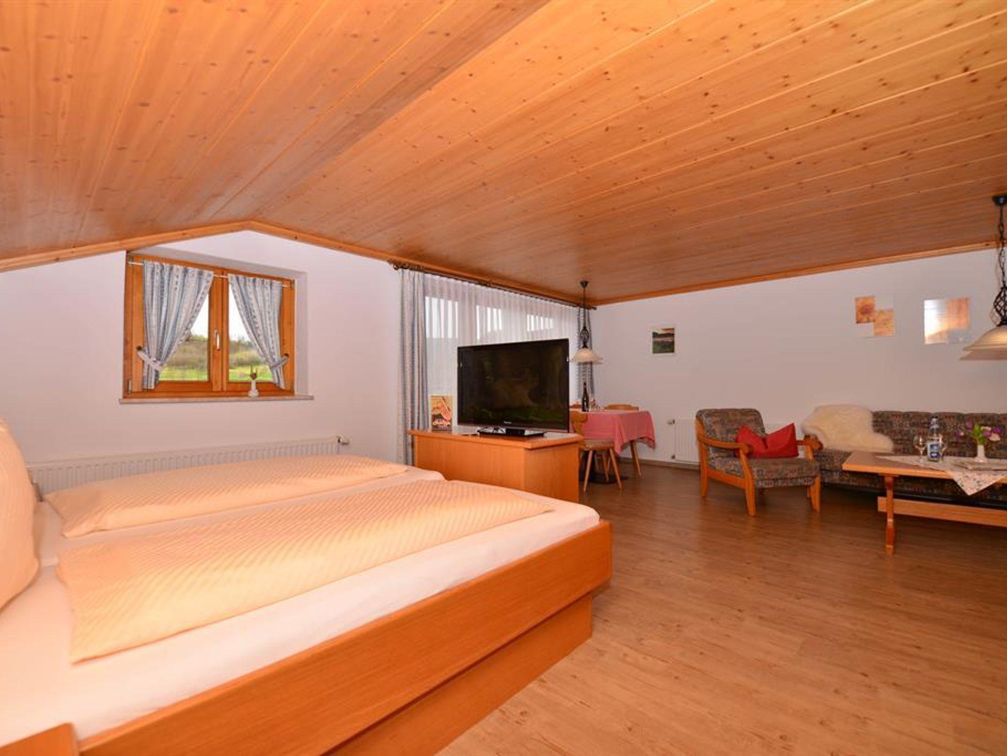 Gerämige,neuwertig eingerichtete Feriewnwohnung im zweiten Stock mit Blick nach Süden auf die faszinierende Schönheit der Allgäuer Berge. Sie verfügt über drei Räume,davon ein Wohn-Schlafraum,eine Küche und ein Badezimmer mit Dusch/WC. Ausstattung: Balkon,Wasserkocher,Kaffeemaschine,Flachbildschirm,Telefon,kostenlosem W-Lan und Zimmersafe.