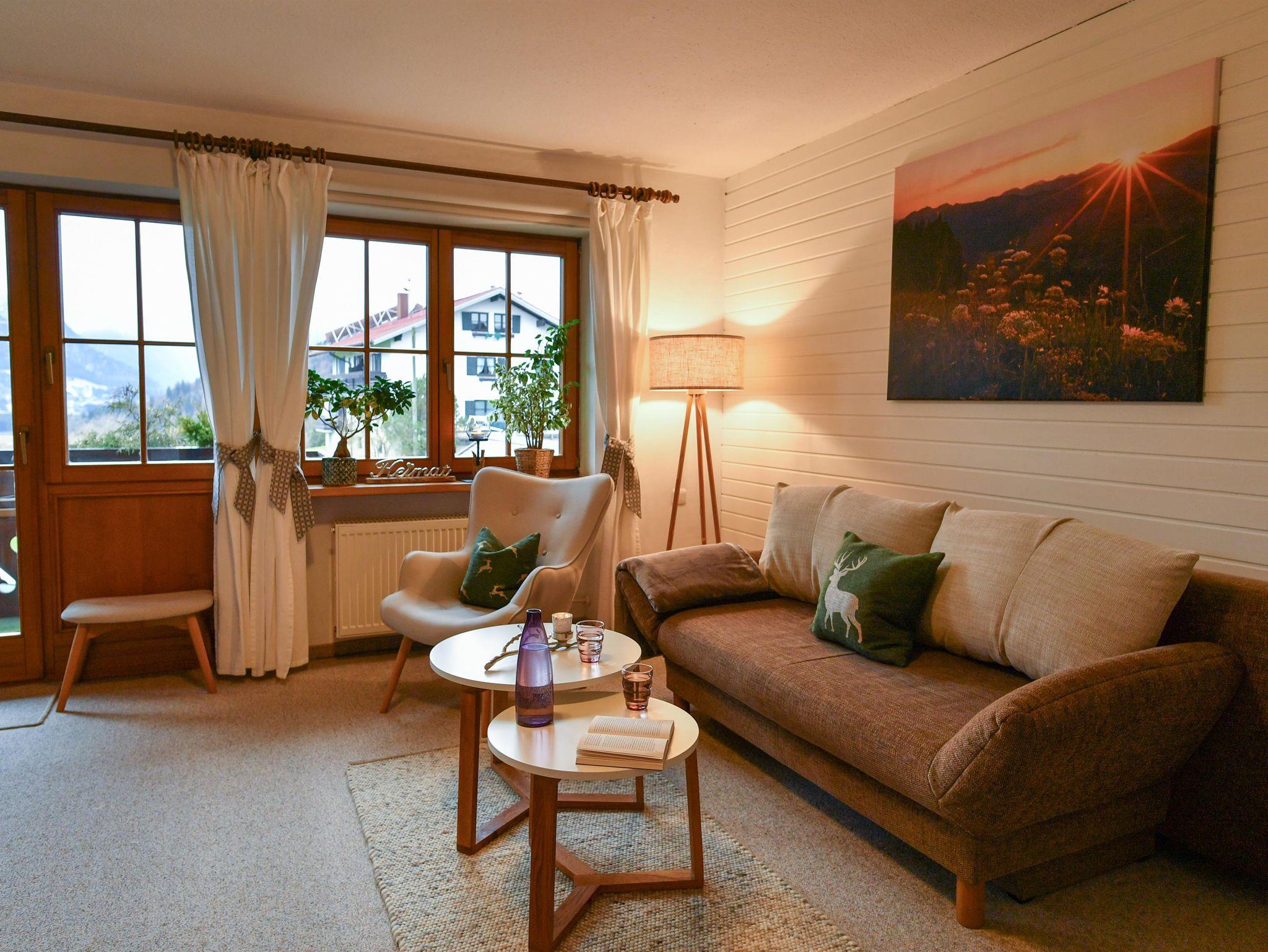 Sehr schöne größzügige Zweizimmerwohnung mit Süd-Balkon traumhafte Bergsicht auf die Allgäuer Alpen, Sat-TV, W-LAN kostenlos im Haus vorhanden, Kochnische gut ausgestattet mit Essecke, Wohnzimmer mit Ausziehcouch, Dusche/WC seperat.