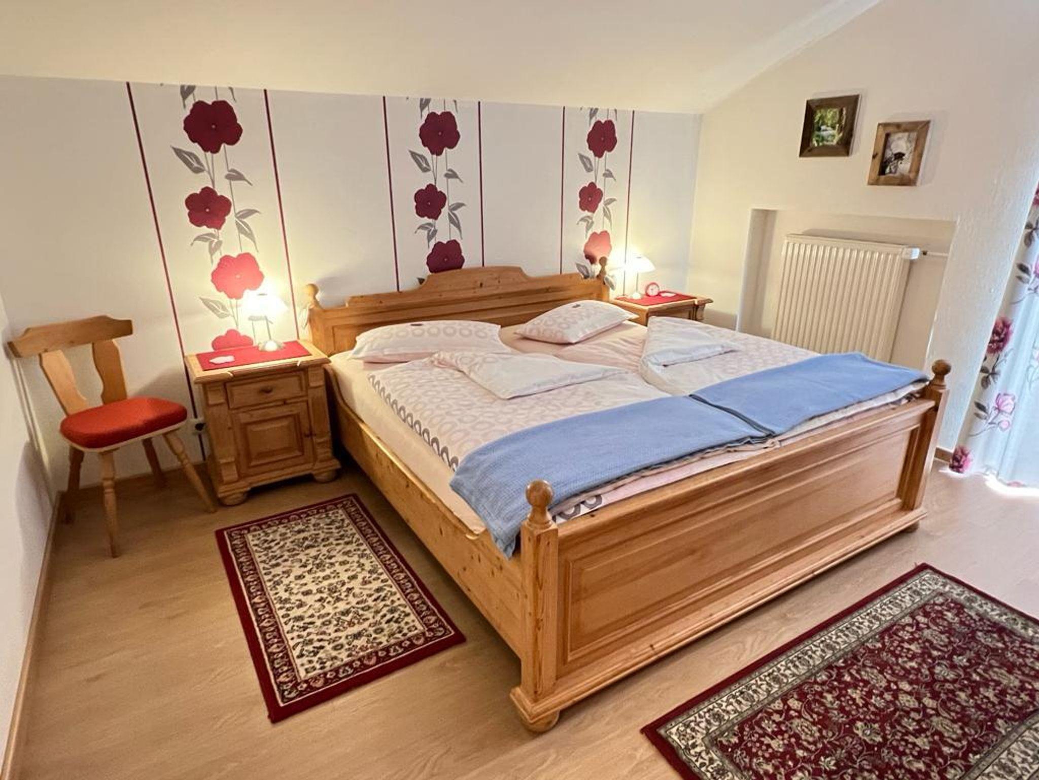 Diese südlich ausgerichtete, in rosé-rotem Ambiente ländlich ausgestattete Obergeschosswohnung bietet Ihnen über den geräumigen Südbalkon einen freien Blick auf die Oberstdorfer Bergkette. Sie hat ein Tageslichtbad und eine gemütliche Essecke sowie eine komplett eingerichtete separate Kochnische. Ein schöner Urlaubstag endet dann mit erholsamem Schlaf in unseren kuscheligen Betten.