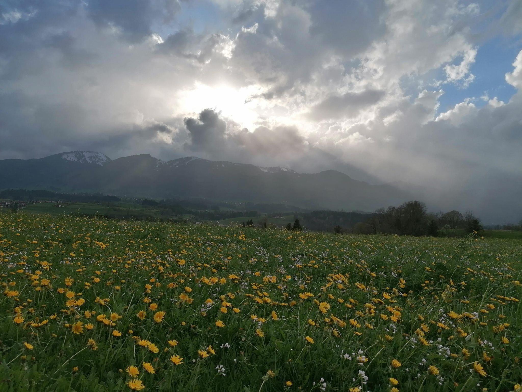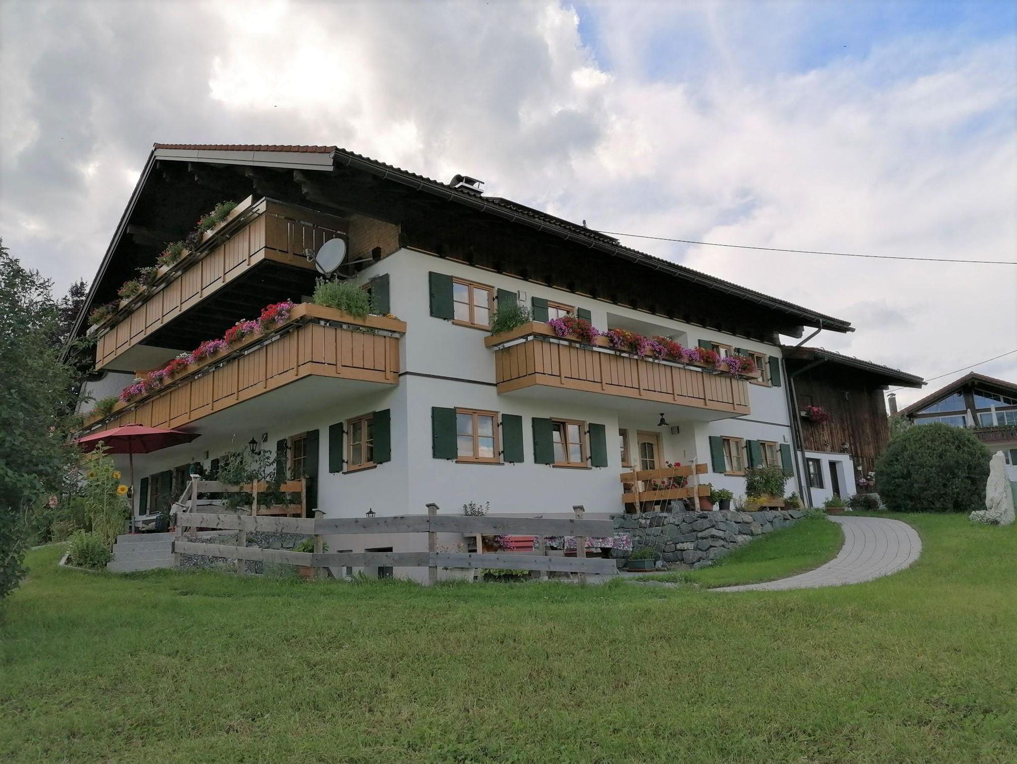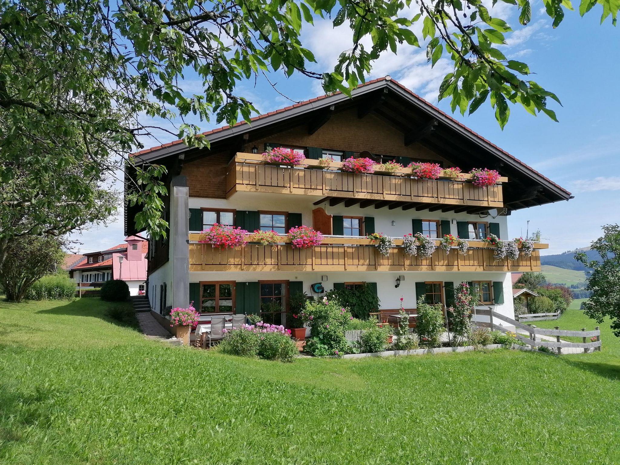 Unser Haus liegt auf fast 900m in freier, unverbauter und ruhiger Lage mit herrlicher Aussicht auf die Allgäuer Berge.