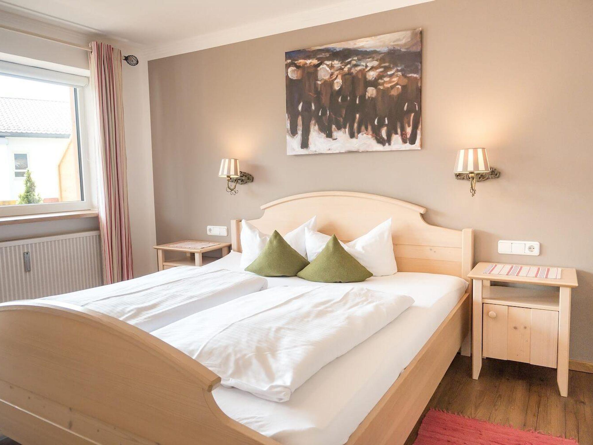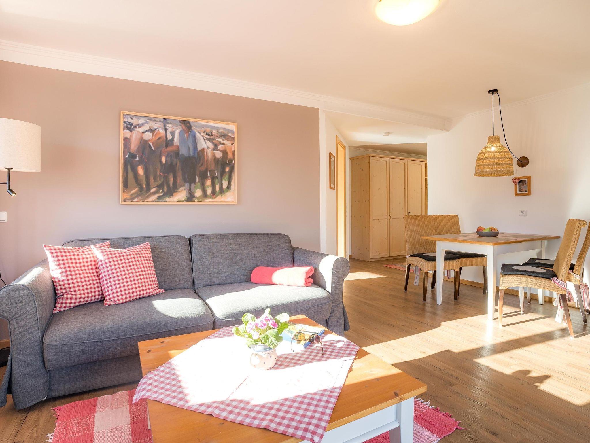 Das Appartement 03 im 1.OG, 53 qm, mit großem Süd- & Westbalkon und freiem Blick in die Oberallgäuer Bergwelt, ist im modernen Landhausstil ausgestattet, Designboden, Wohnzimmer mit Sitzecke, Flachbild-TV, gemütliche Essecke und komplett ausgestattete Küche mit allem Komfort. Schlafzimmer mit Doppelbett, Bad mit DU/WC. WLAN. Das Appartement kann mit 4 Personen belegt werden.