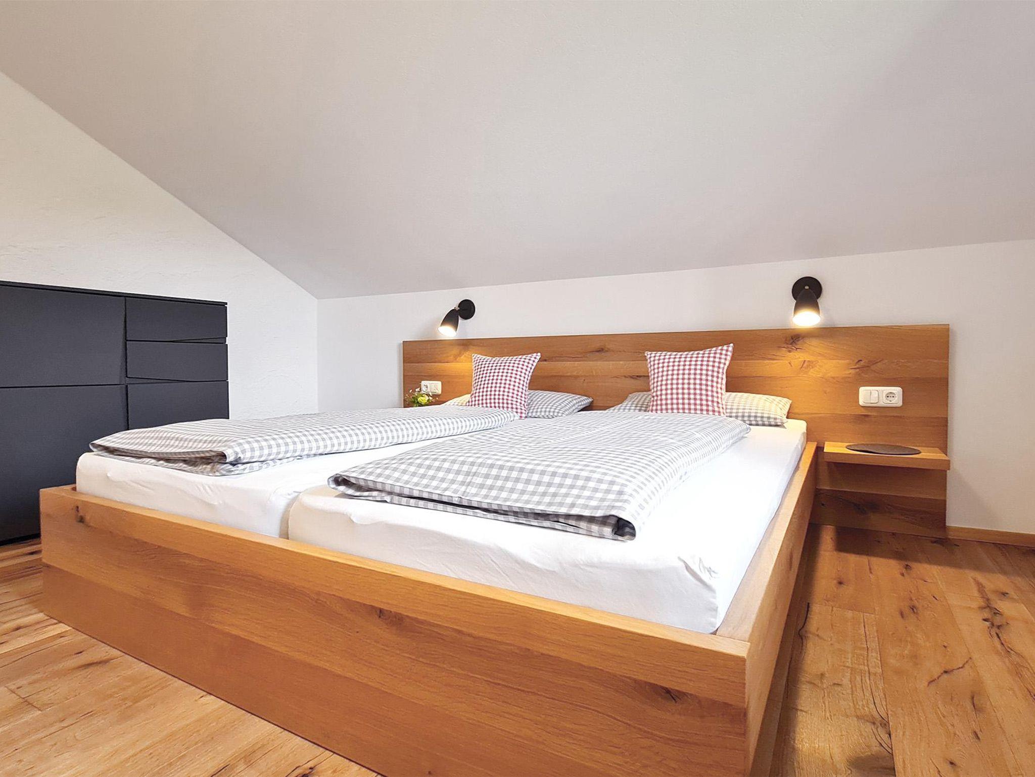 Unsere Amsel im Dachgeschoss (2. OG) bietet Platz und Komfort für 4 Personen. 2 geräumige Schlafzimmer mit Doppelbett 1,80 x 2,00m, Bettende unten offen, schönes Tageslichtbad mit Dusche/ WC, ein extra WC mit Waschbecken, sowie ein schöner Wohn-Ess-Bereich mit Küchenzeile (Senseo-Kaffeemaschine, Kochfeld, Backofen und Spülmaschine), sämtliche Ausstattung vorhanden. Holzparkett, sowie Eichenholzmöbel im Wohn- und Schlafbereich sorgen für ein schönes Raumklima. Die Räume haben Verdunklungsvorhänge. Wunderschöner Ausblick nach Süden (Richtung Oberstdorf)mit tollem Balkon unterm Giebel. Aufbettung für eine 5. Person nach Verfügbarkeit auf Anfrage möglich.
