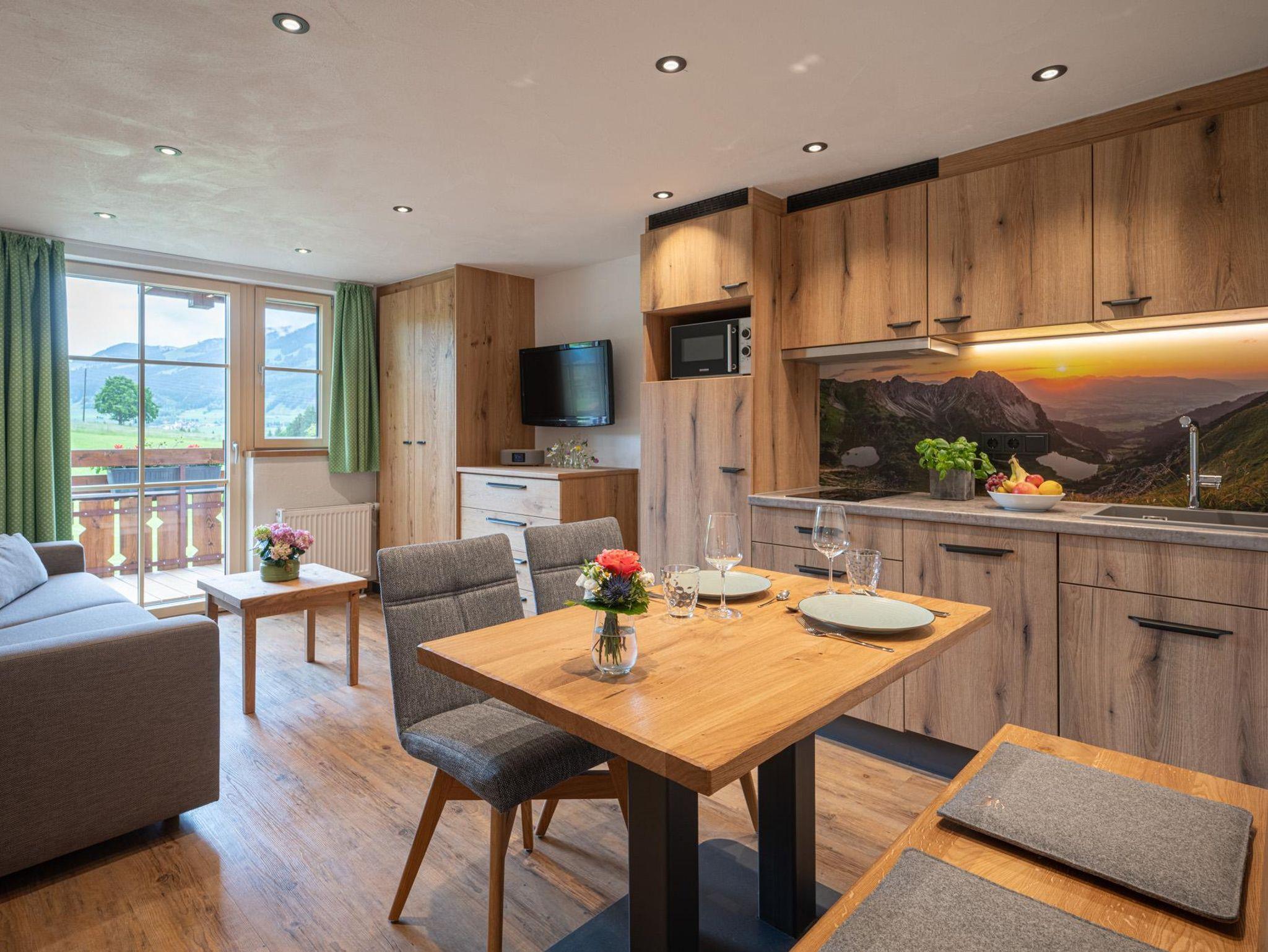 Das überschaubare, kuschelige 2 Personen- Appartement ist nicht nur preiswert sondern auch sonst bei unseren Gästen sehr beliebt. In Kombination mit der Wohnung Rubihorn eignet sich diese Wohnung besonders gut für Urlauber, die getrennt schlafen aber sonst gerne zusammen sind – Eltern, Kind (er) und Großeltern oder Freunde und Bekannte.