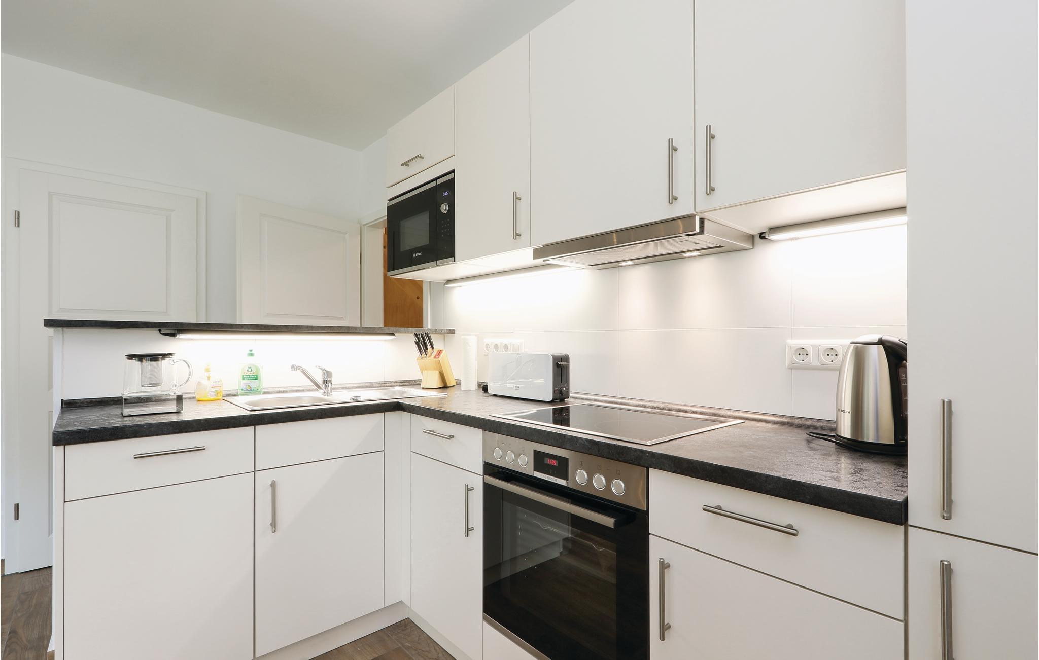 På de kølige dage er det oplagt at hoppe en tur i den varme sauna i badeværelset i stueplan eller tænde op i kaminen. I det fuldt udstyrede køkken er der alle moderne bekvemmeligheder.