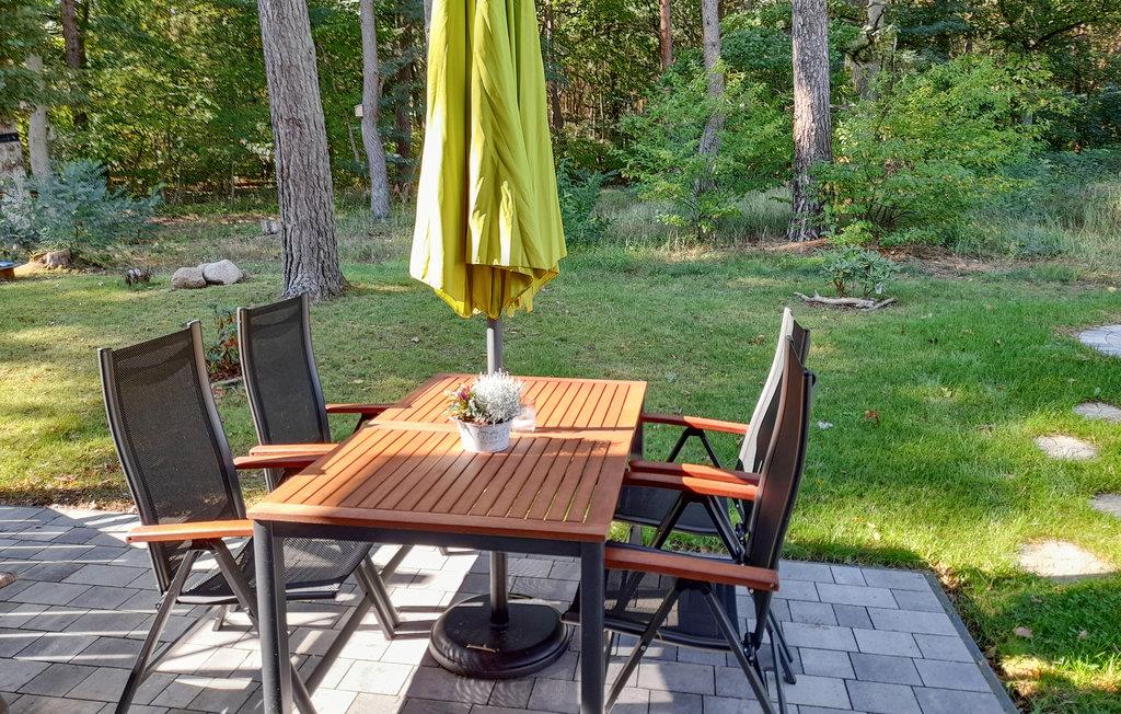 Denne omhyggeligt indrettede halvdel af et dobbelt feriehus hedder "Kiek in' Wald" og strækker sig over to etager. Fra den kombinerede stue- og spisestue er der udgang til terrasse, med flere siddehjørner, bord og stole, hvor I kan nyde Usedoms mange solskinstimer.