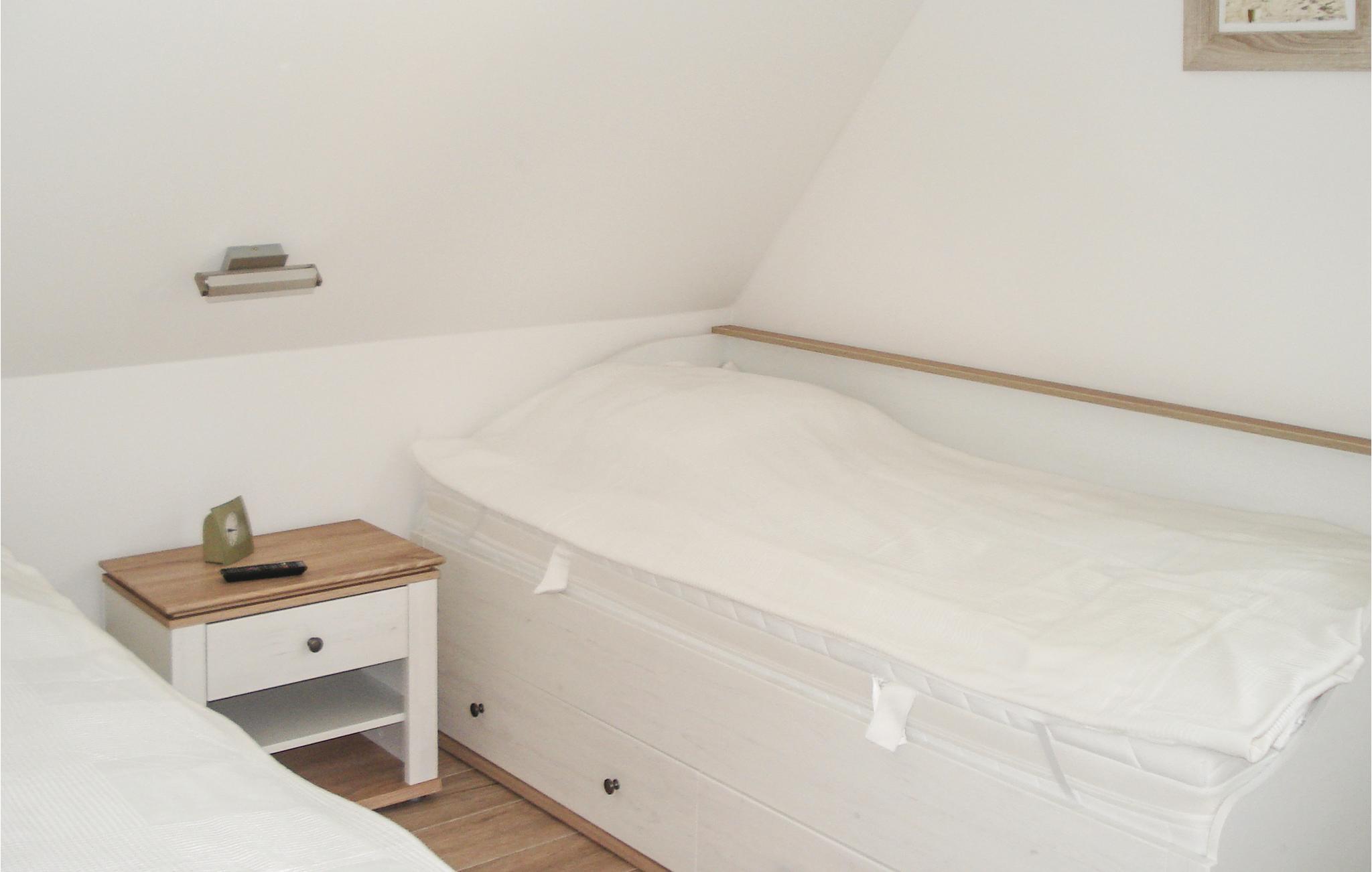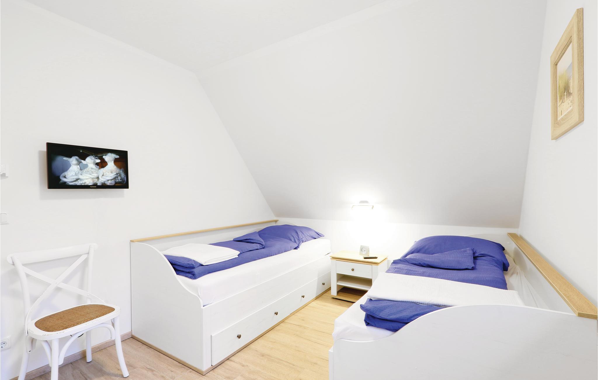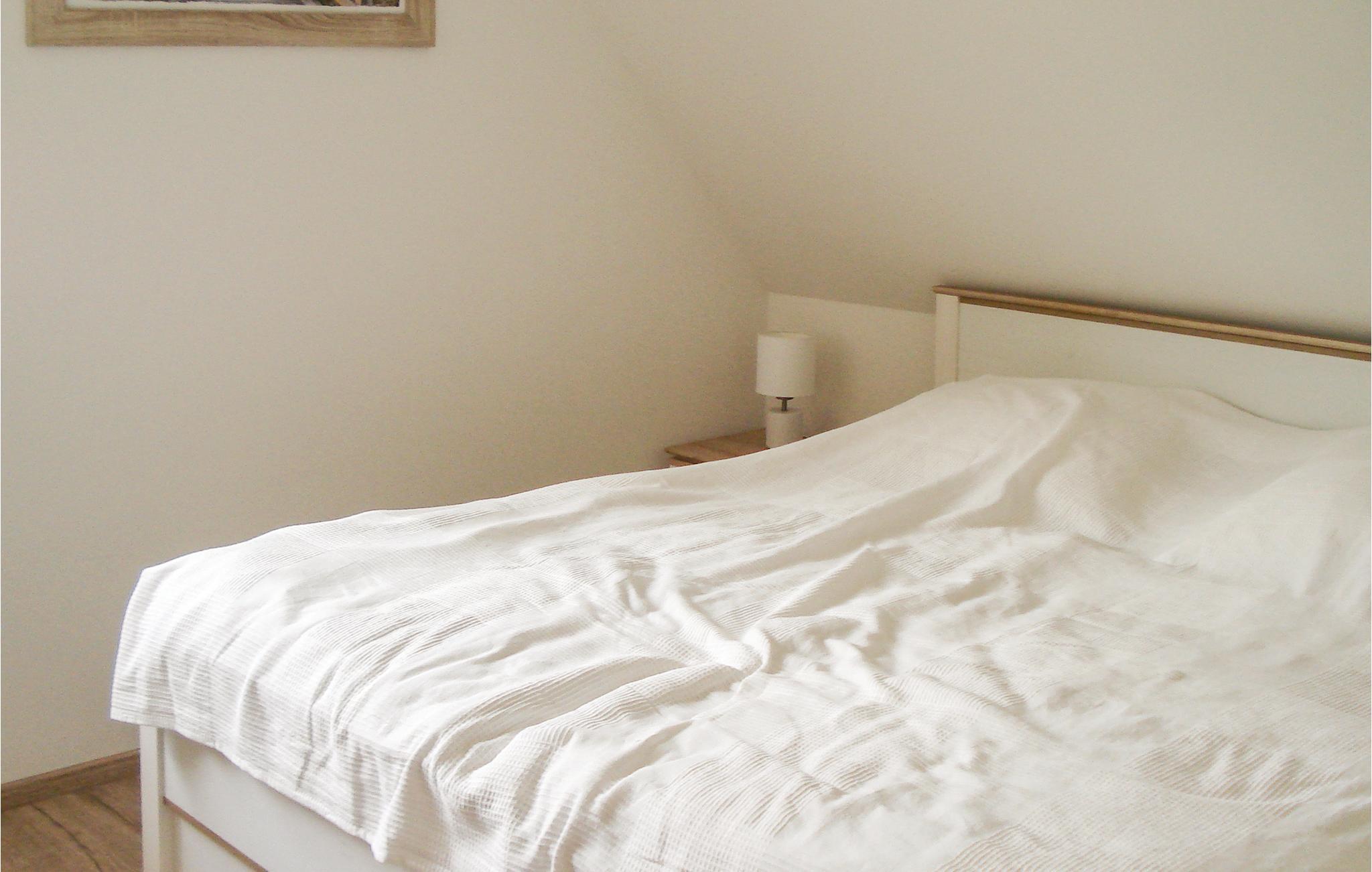 I det første soveværelse er der en hyggelig dobbeltseng, i det andet to enkeltsenge. Der er to yderligere sovepladser på sovesofaen i stuen.